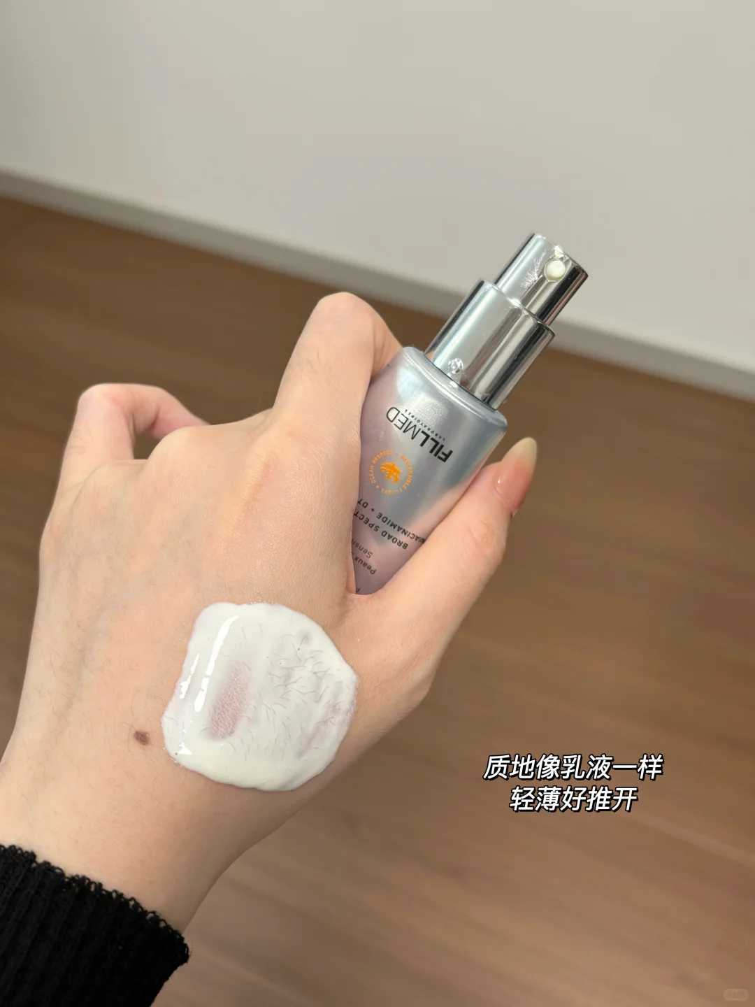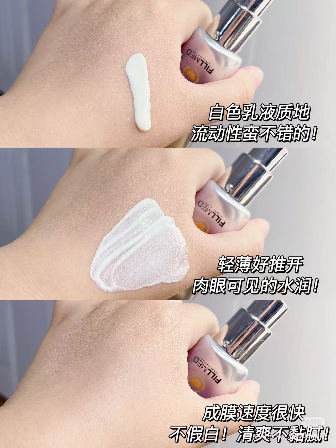 它质地是流动性超强的奶感乳液 抹开瞬间化水 轻薄到爆炸 而且成膜后皮肤有种水润透光感 像自带日系柔光镜头 毛孔都变细腻了!!!! 最让我服的是它添加了绿某瓶才会用的贵妇修护成分 不仅能、老化 还能稳住光电后脆弱的肌肤屏障!!!!