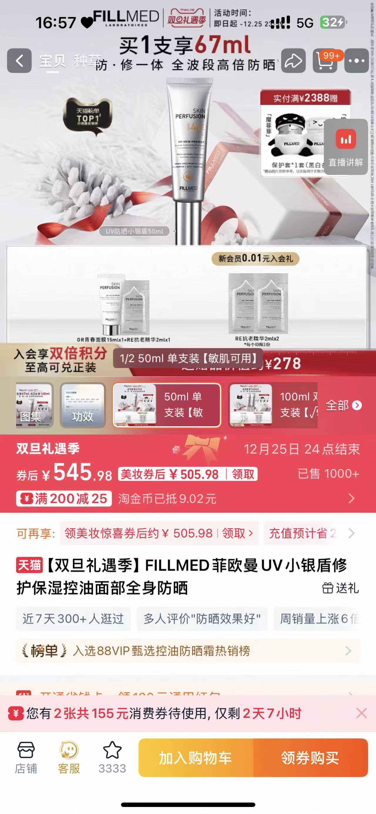 旅行小样!【菲欧曼轻透倍护防晒乳15ml】SPF46 PA+++的防护力全波段狙击紫外线,干敏皮上脸毫无压力,关键是光子后能直接上脸,红敏退的贼快,质地润而不油秒成膜 0109