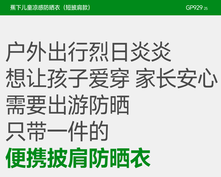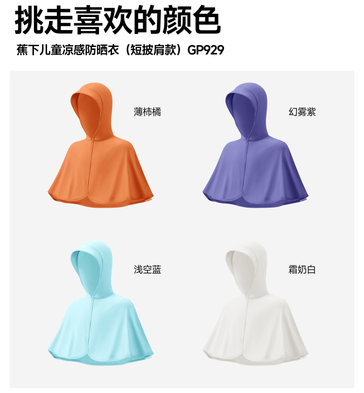 防晒衣!【蕉下儿童披肩防晒衣】25SS-蕉下儿童凉感防晒衣GP929(短披肩款) 0320