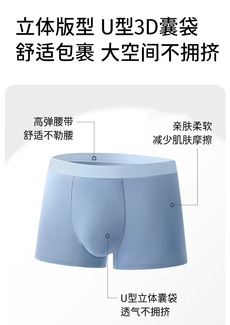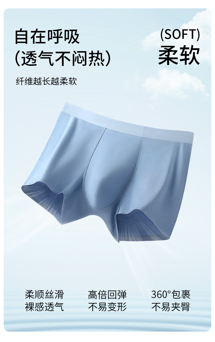 正气琅琅 男士内裤 3条装(VIP)3条装【莫代尔 高弹无痕】高弹舒适无痕男士平角内裤