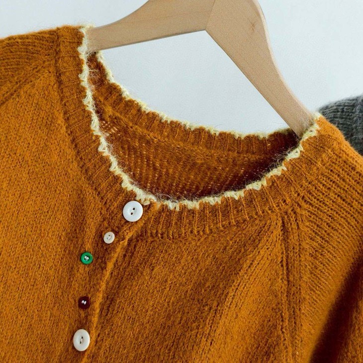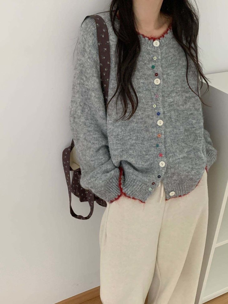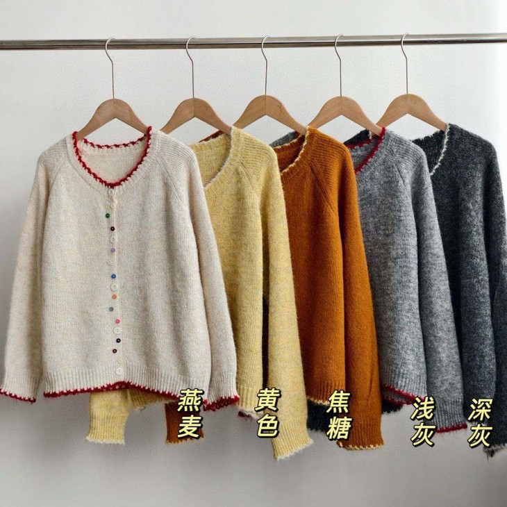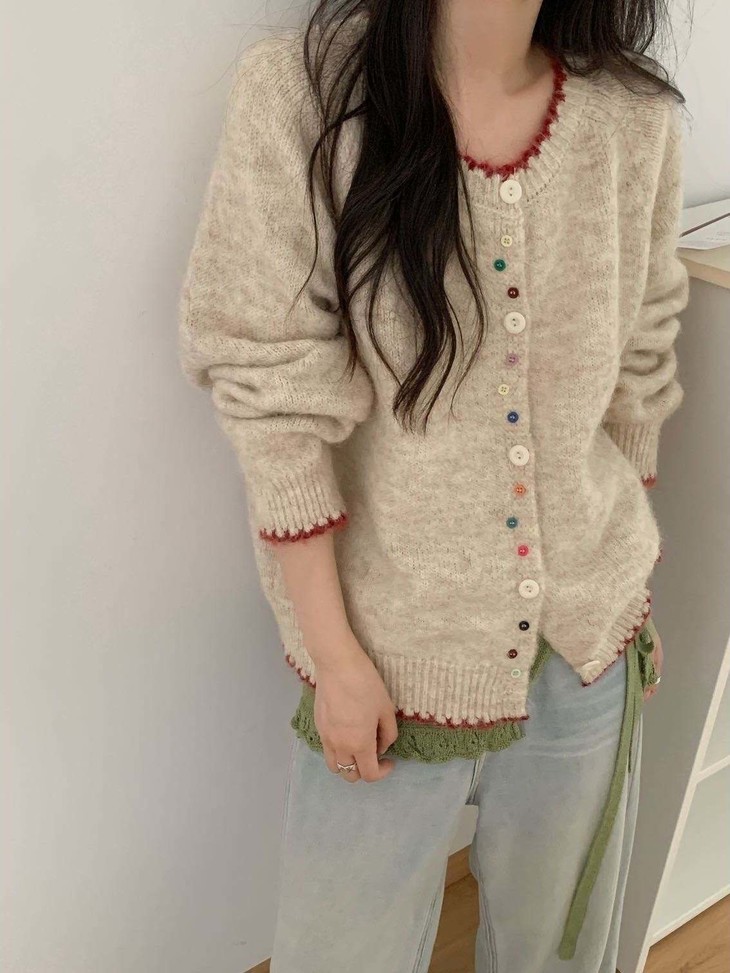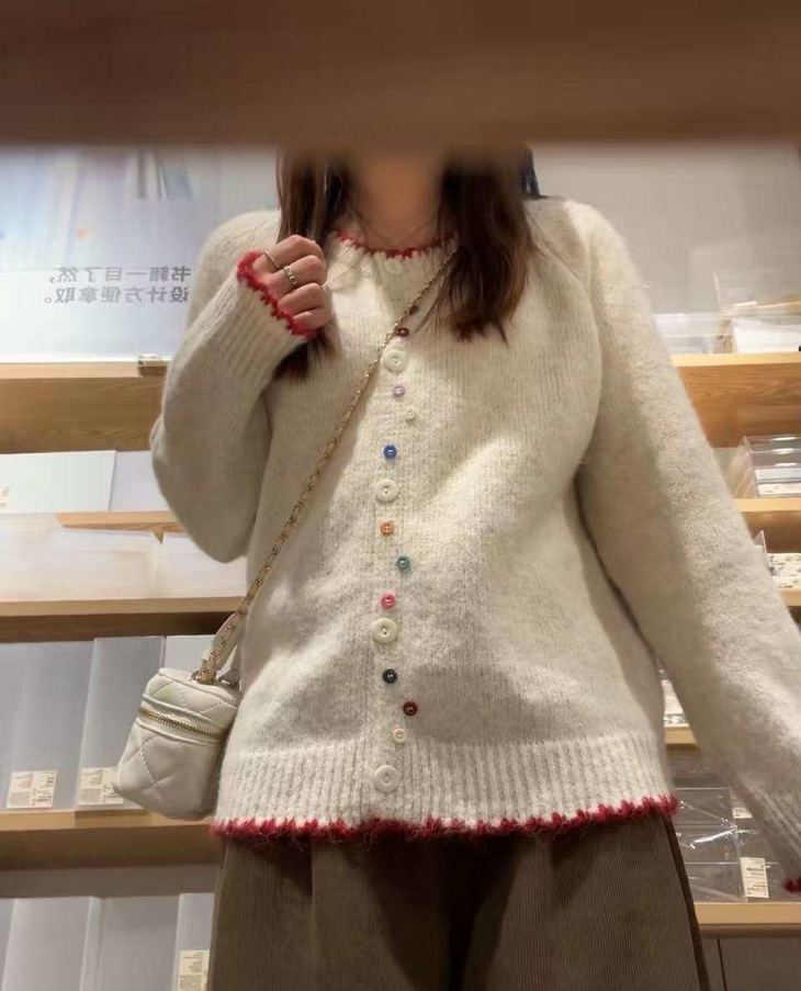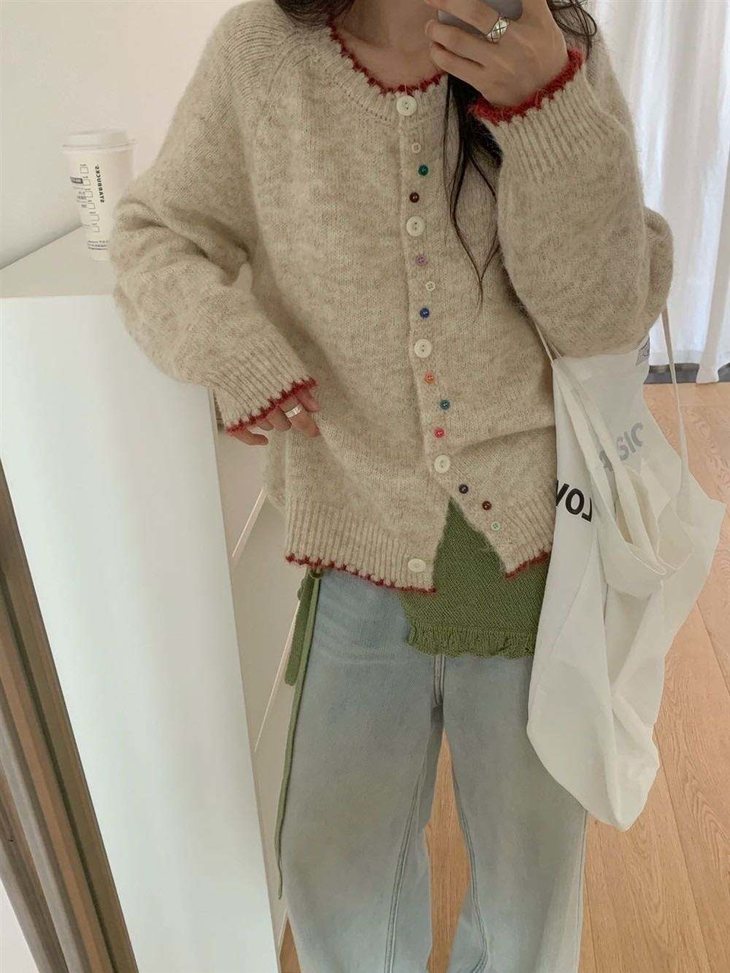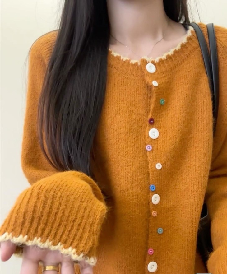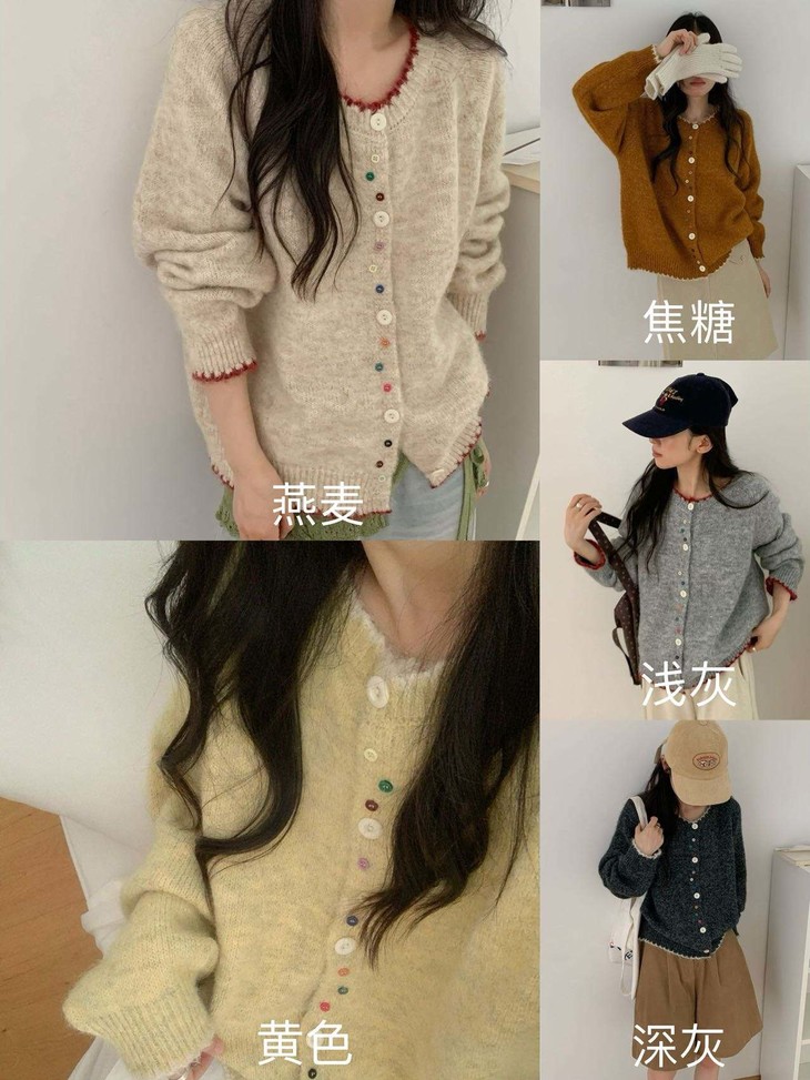 🔥谁懂啊!!😍【岚可可 韩系复古波浪纹圆领彩色纽扣开衫】 💖一到秋冬就对这种软乎乎的毛衣毫无抵抗力!