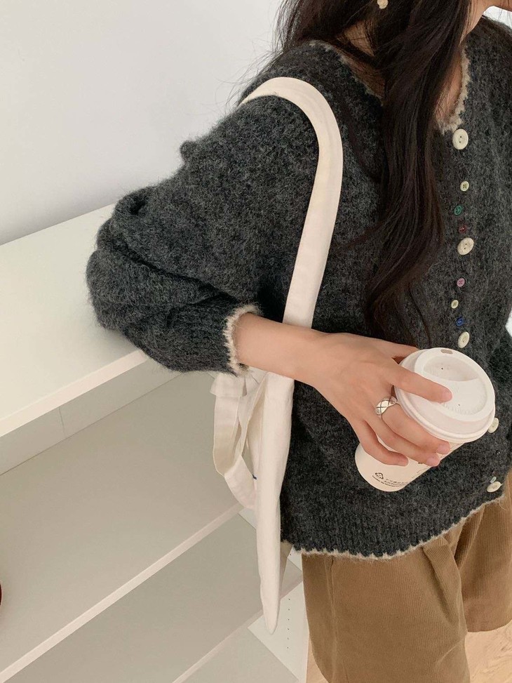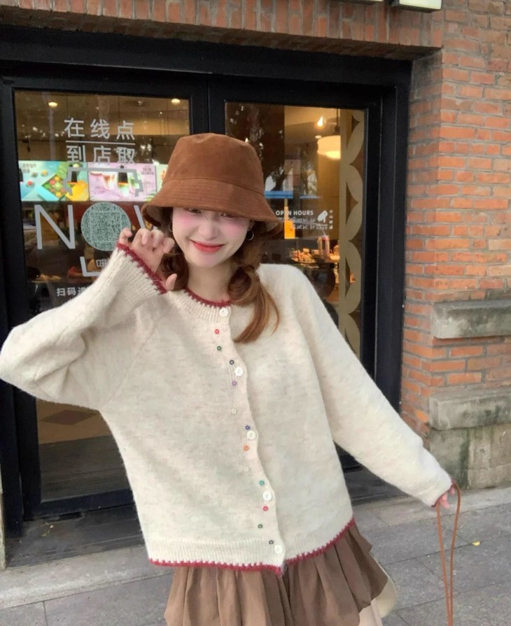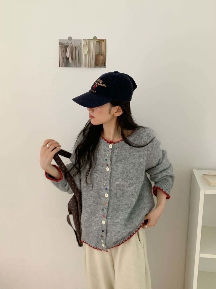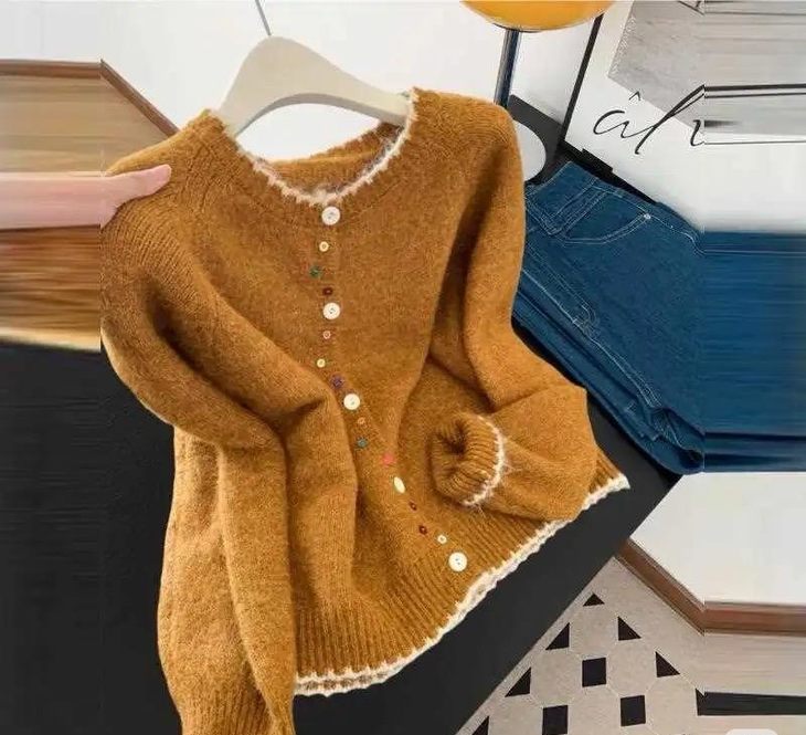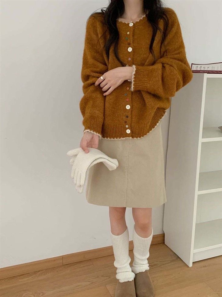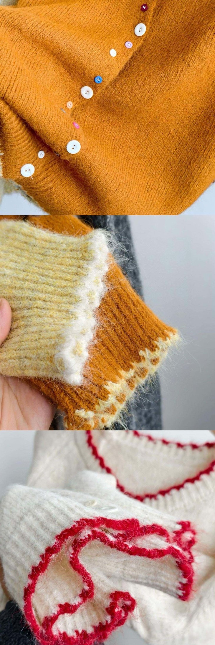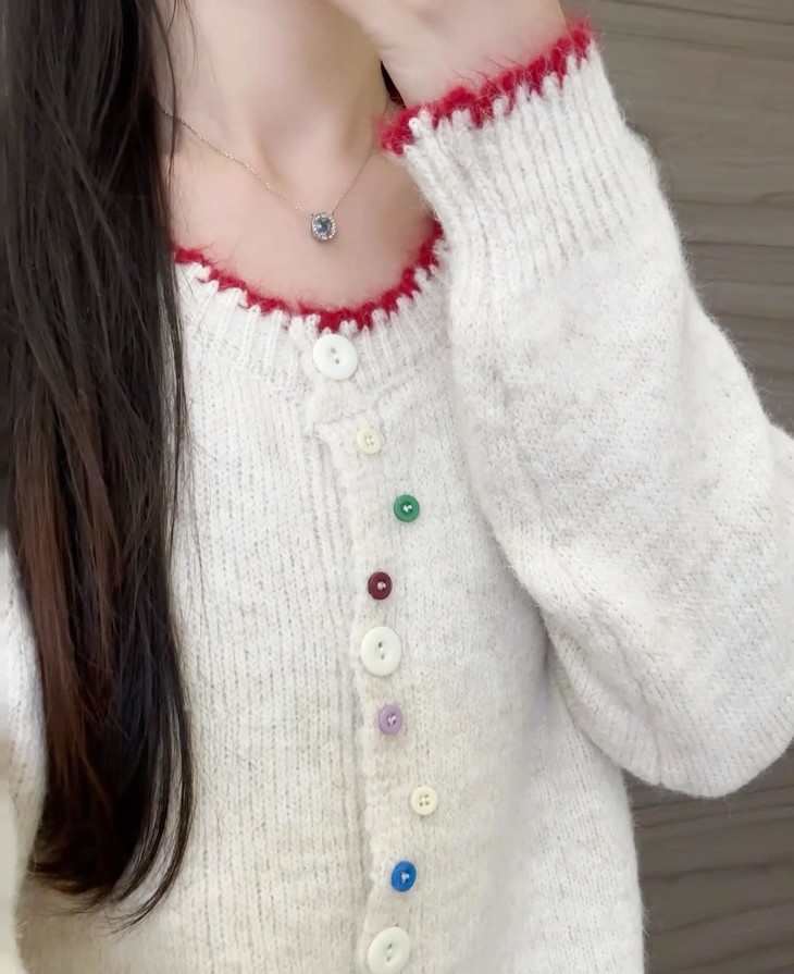 🔥谁懂啊!!😍【岚可可 韩系复古波浪纹圆领彩色纽扣开衫】 💖一到秋冬就对这种软乎乎的毛衣毫无抵抗力!