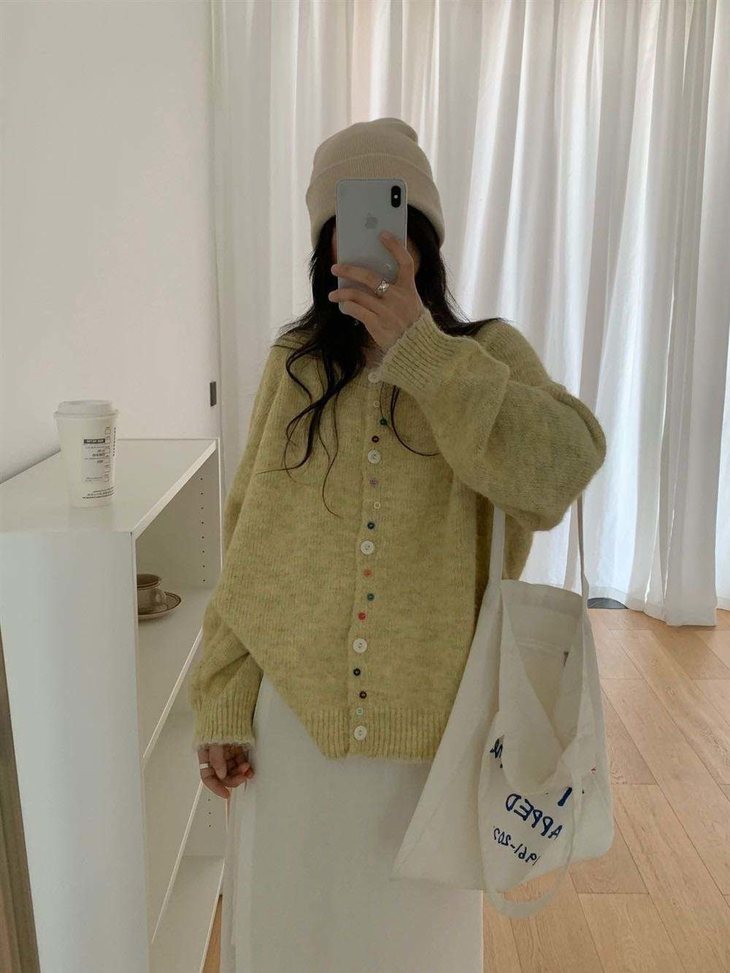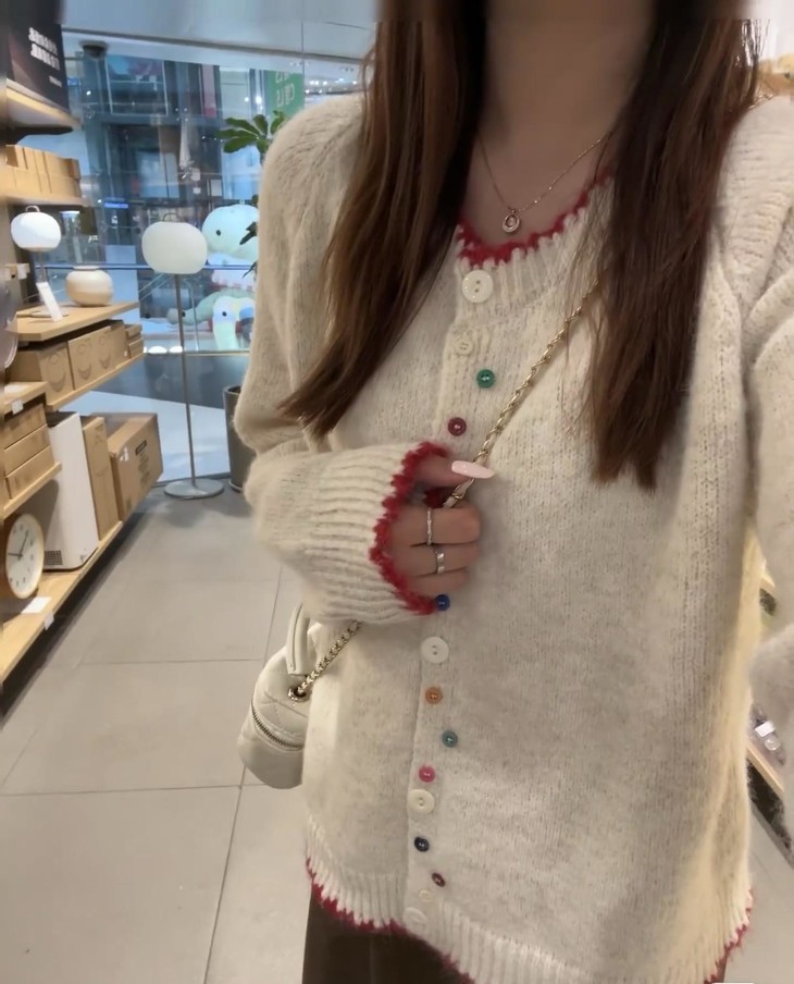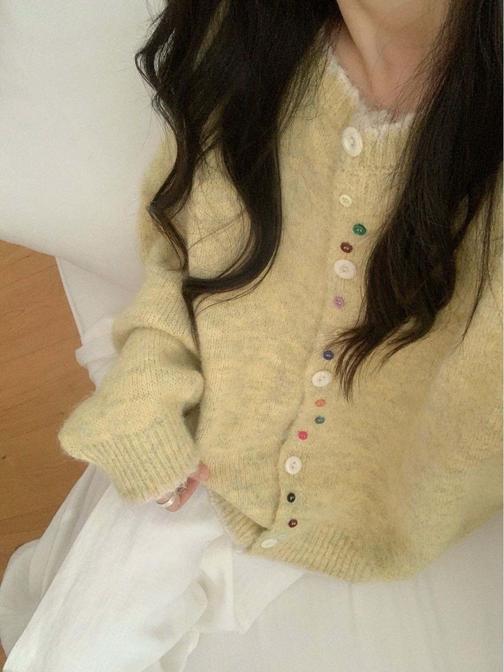 彩虹纽扣阵,每颗扣子都是不同颜色的小彩蛋 把可爱焊在衣服上 微宽松+落肩袖,藏肉还能叠穿内搭 配牛仔裤就是秋日氛围感美女~ 现在穿刚好的厚度,软、暖、甜全占了 秋冬第一件开衫锁死它!