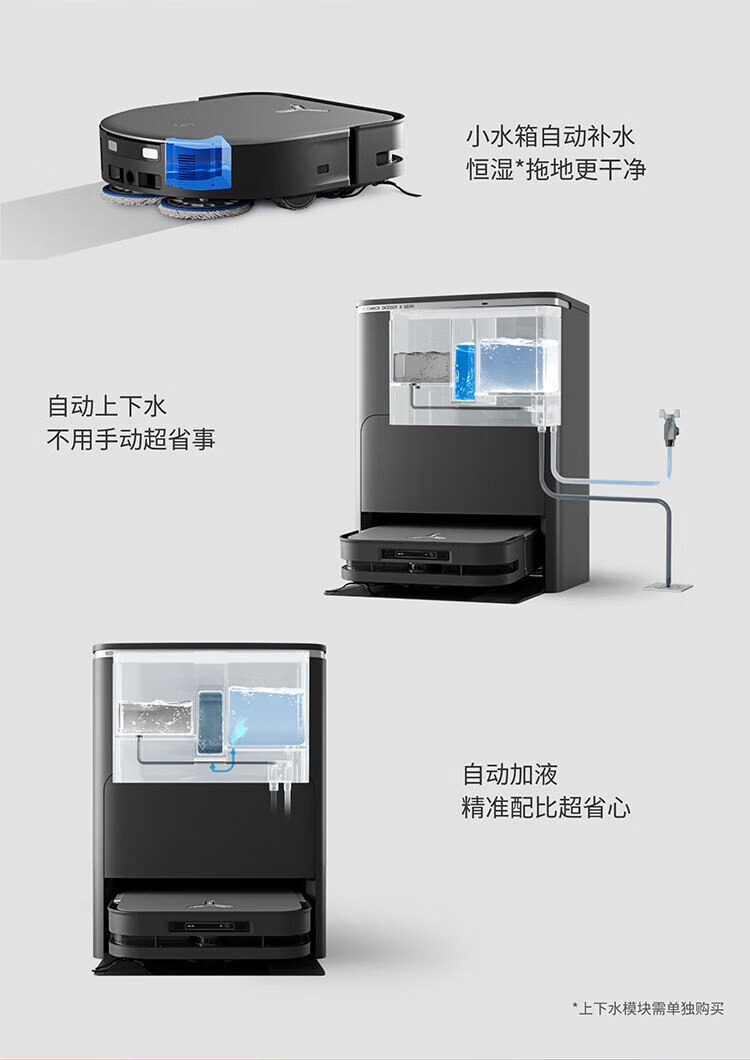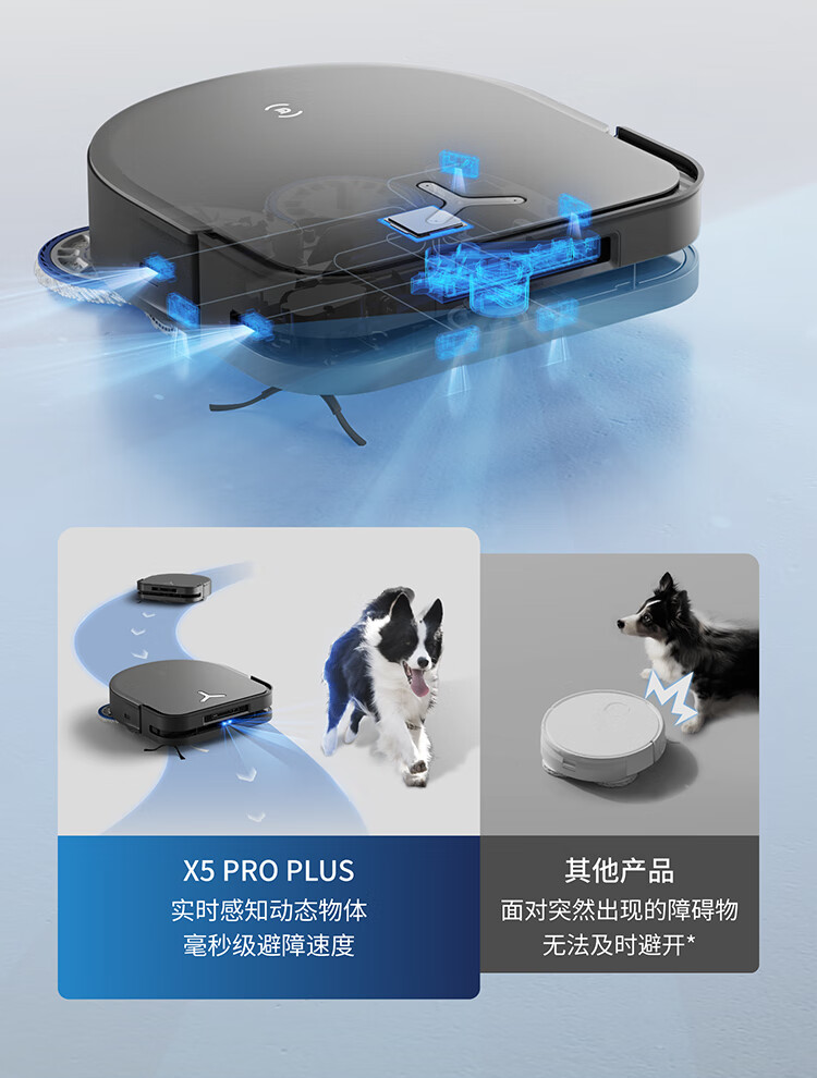 科沃斯扫地机器人X5 PRO PLUS自动上下水扫拖洗烘一体全自动清洗集尘吸擦地毛发零缠绕灵动恒贴边水箱/自动上下水版