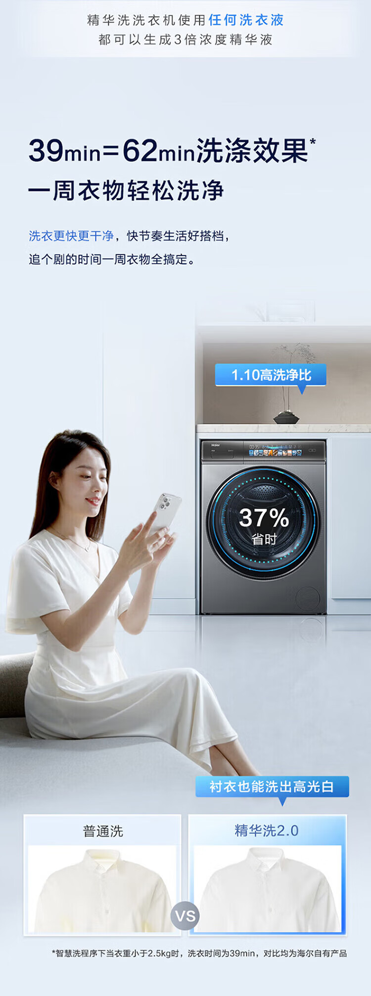 【云熙98精华洗2.0】海尔滚筒洗衣机全自动10公斤超薄平嵌大筒径直驱变频双智能投放晶彩触控洗衣机 至尊旗舰98+精华洗2.0+FPA直驱+洗烘一体G10098HBD14LSU1