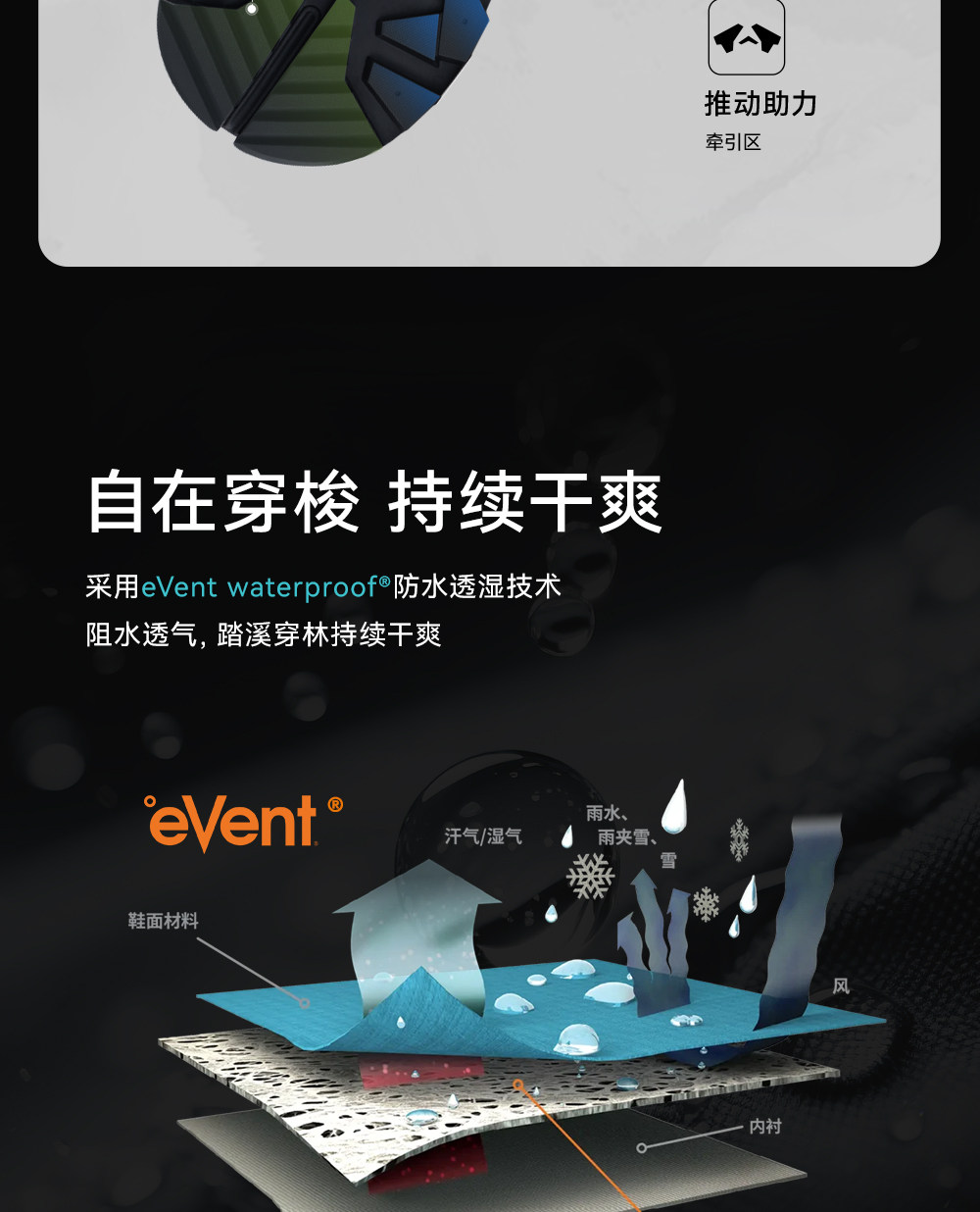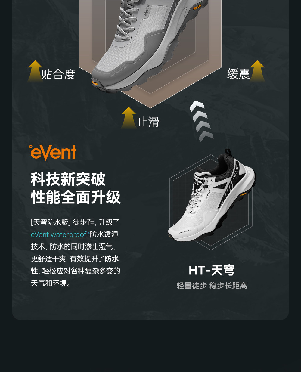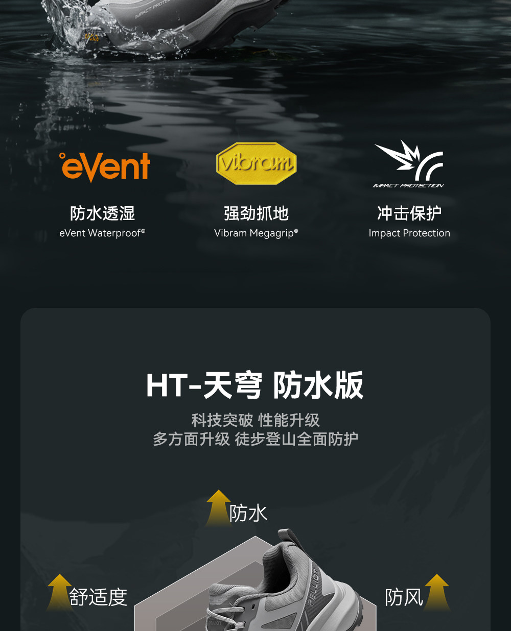 【HT-天穹防水版】伯希和户外徒步鞋男eVent暴雨级防水防滑登山鞋