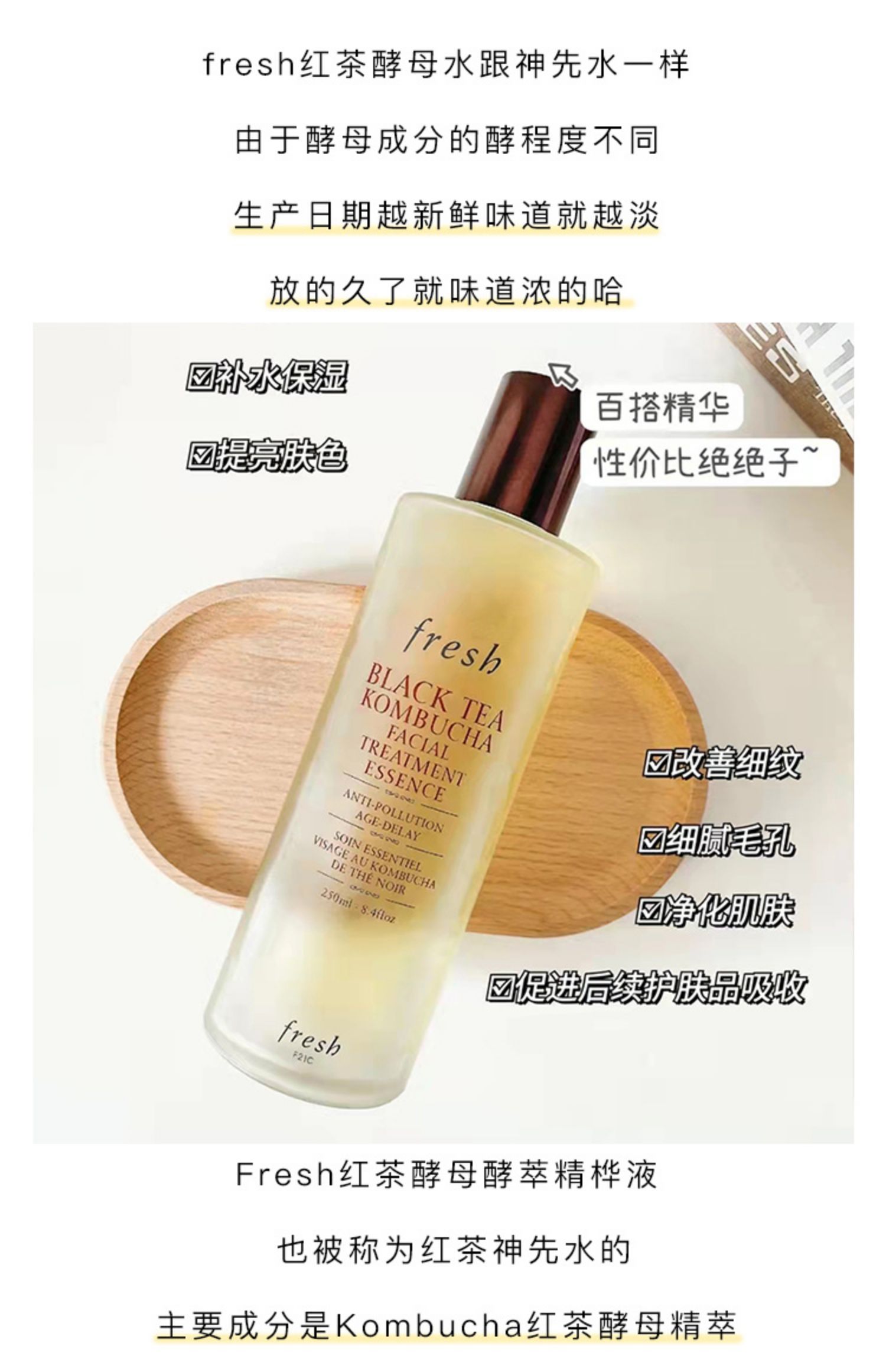 馥蕾诗Fresh红茶酵母精华水 150ml黑茶爽肤水 抗氧化