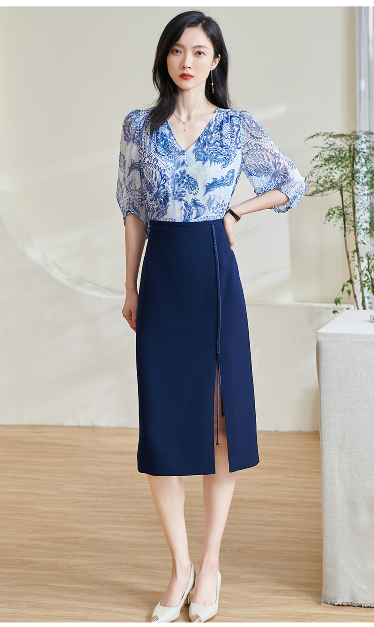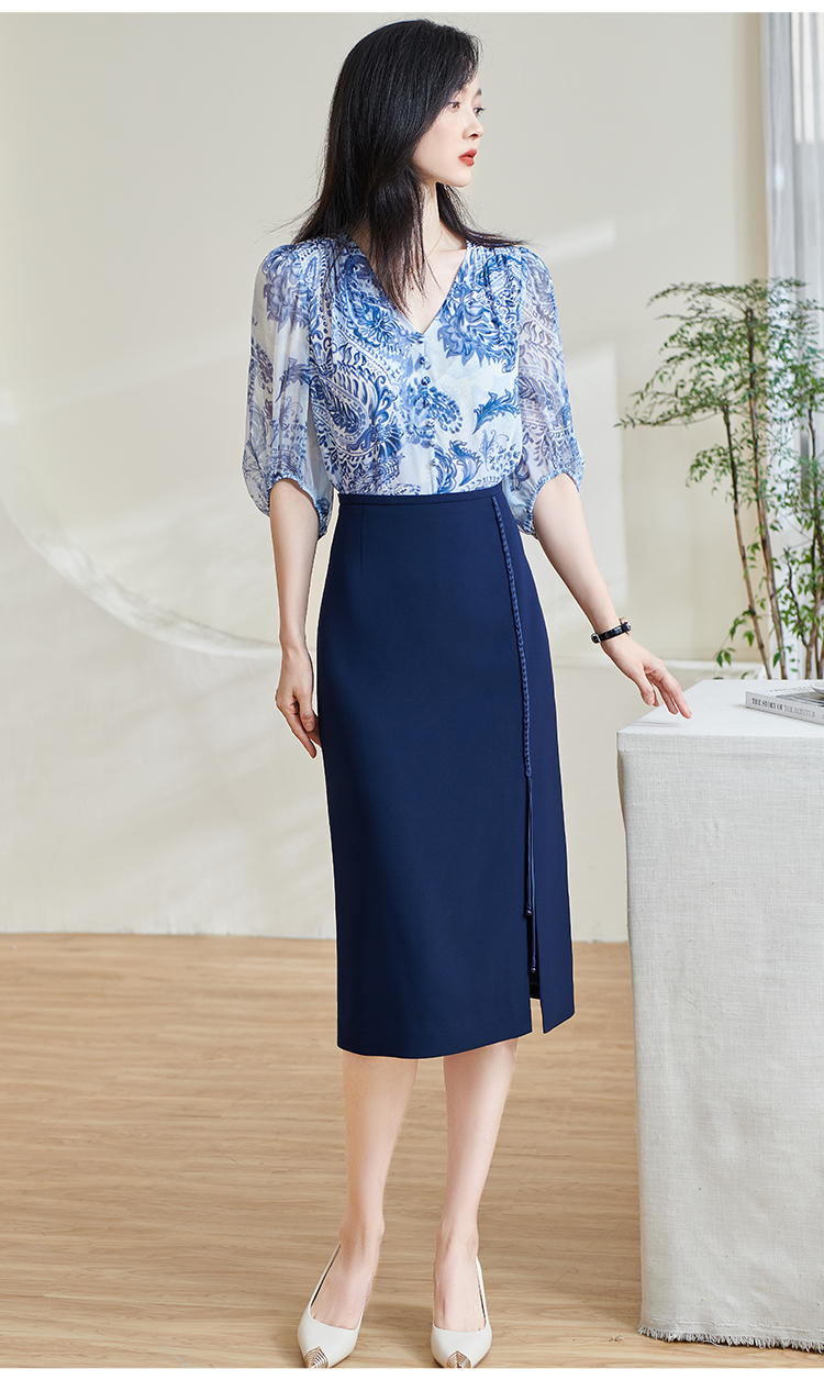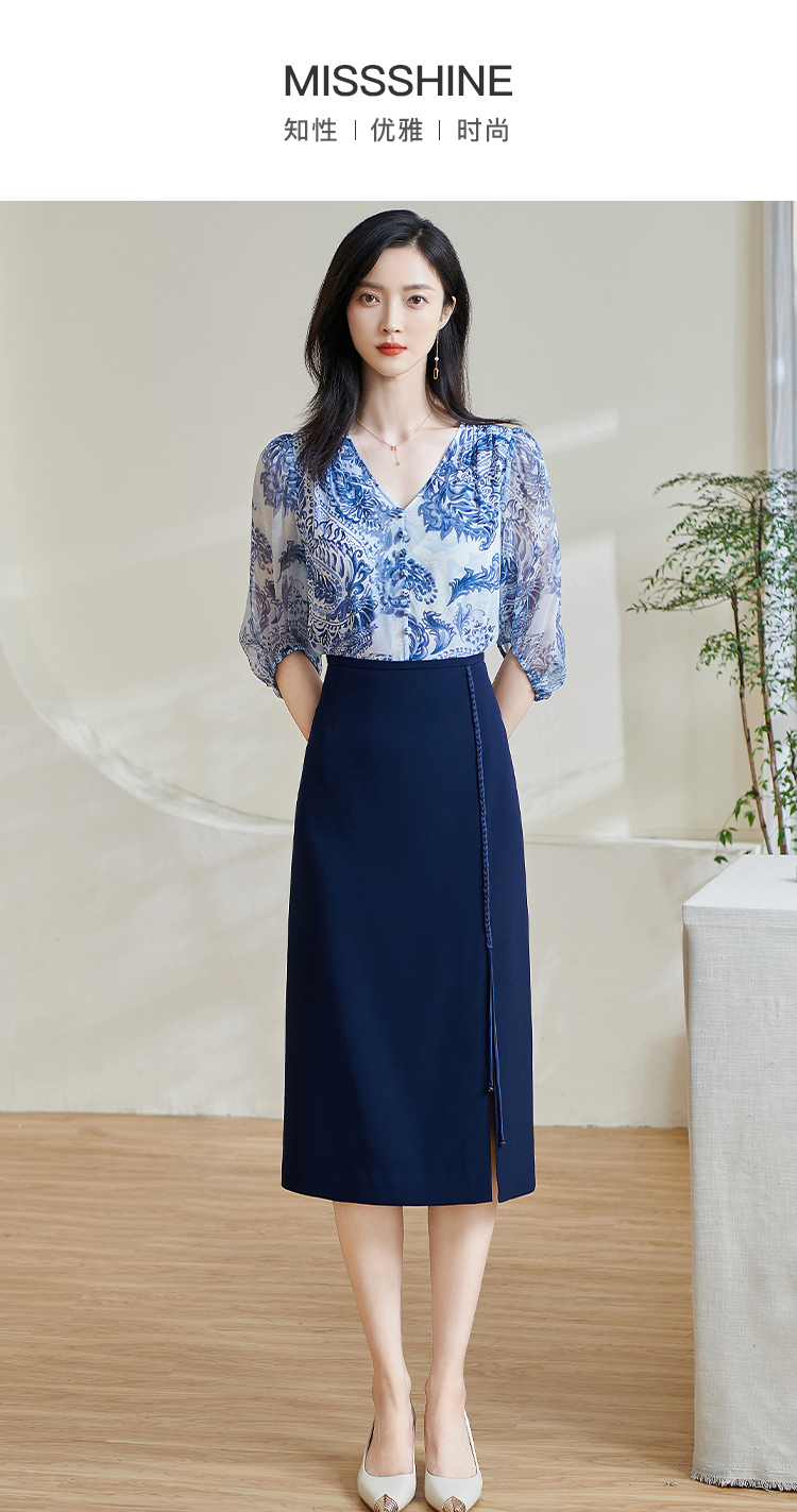 剩S/XL/XXL 米思阳2025秋夏季新款气质国风高腰直筒开叉一步裙半身裙0834