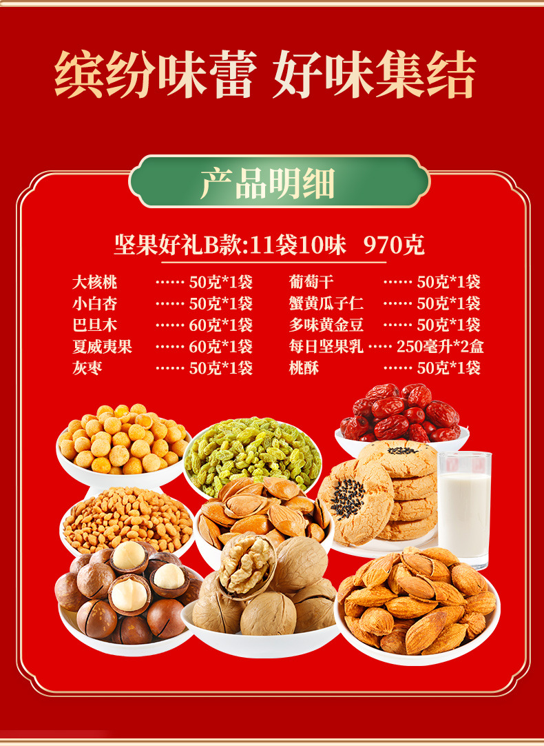 【大气有颜值❗福鲤糕点坚果礼盒】款大集结「拒绝选择困难症」送礼大气更有面,混合坚果组合炒货干果,开心果夏威夷果,坚果礼盒装年货送礼佳品L