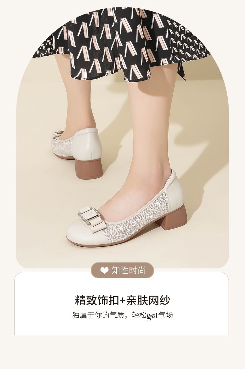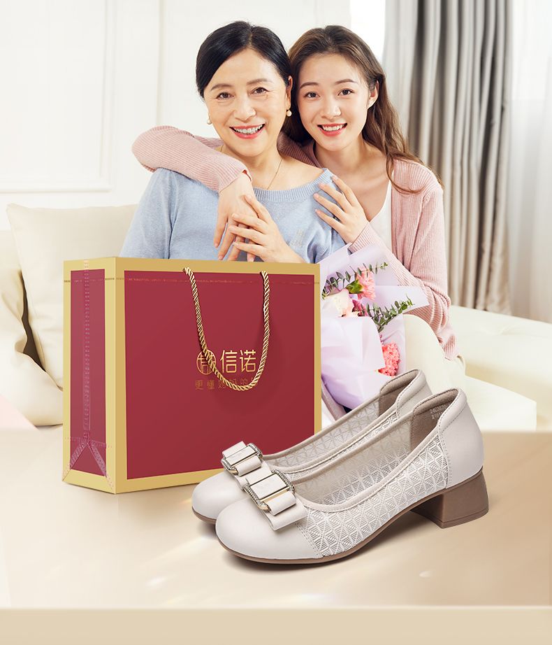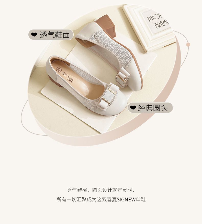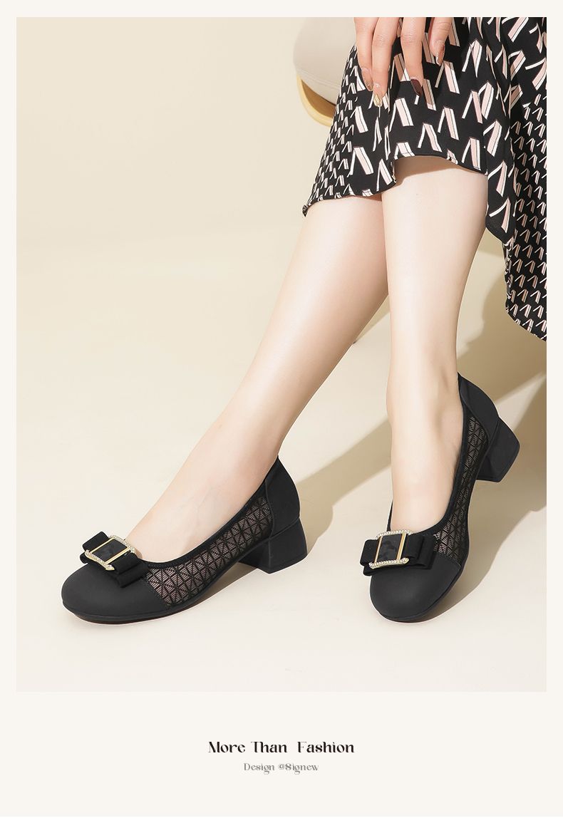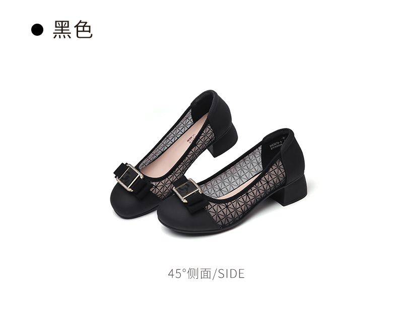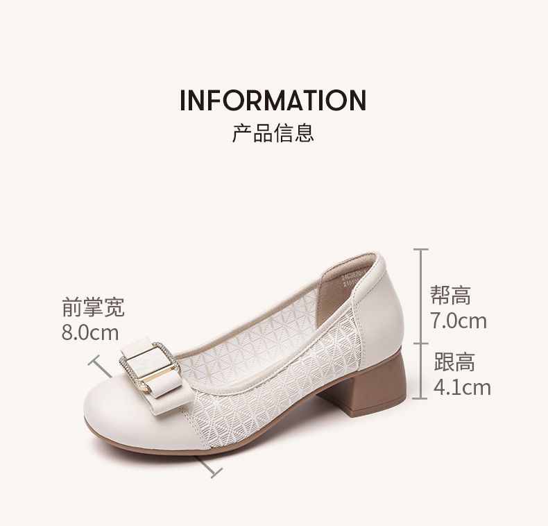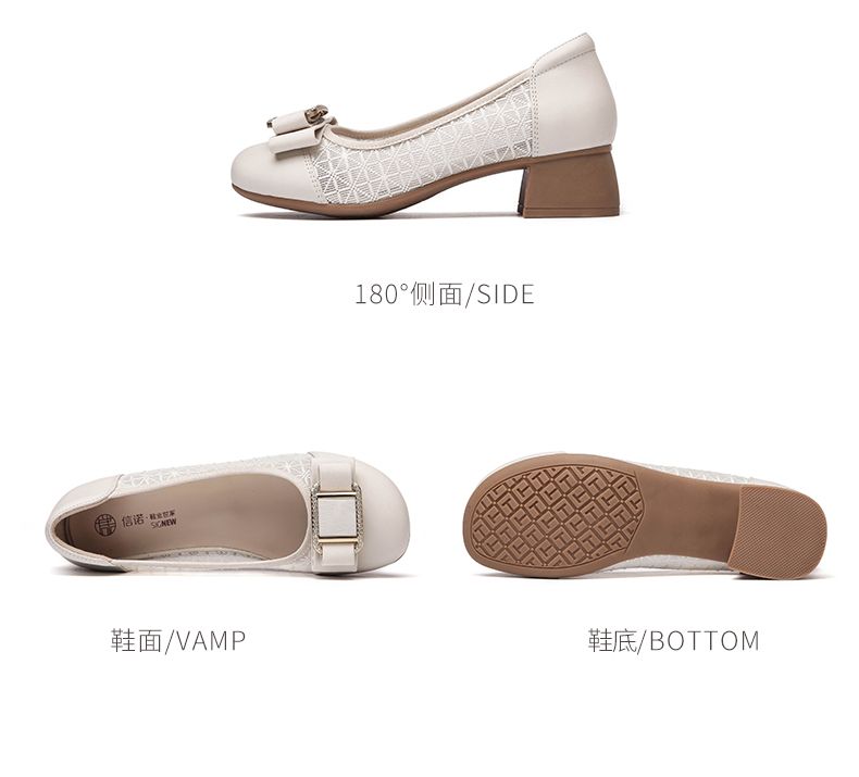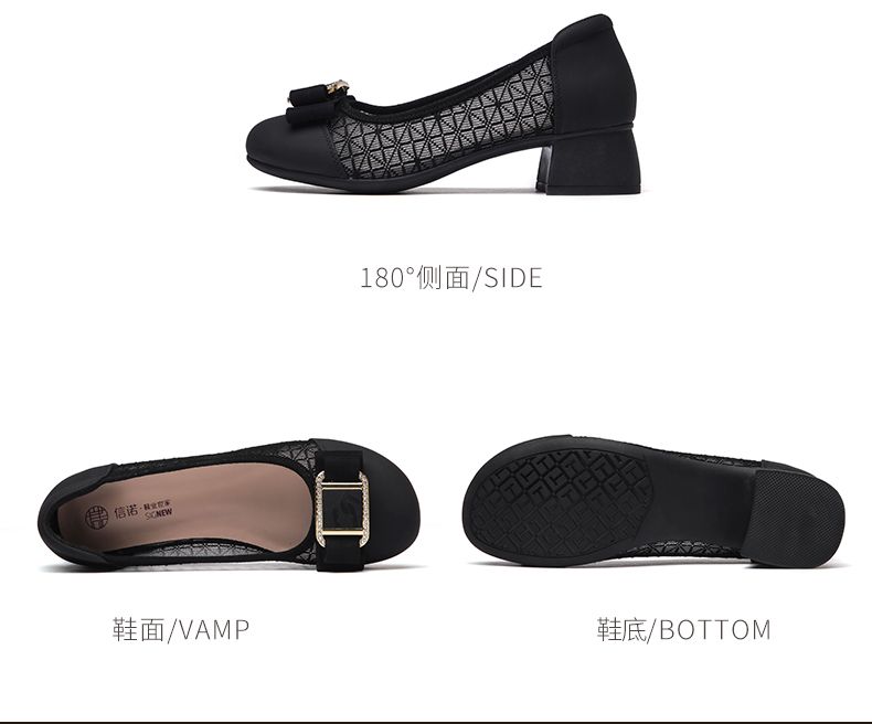 信诺 脚宽舒适女鞋 2024新款网纱凉鞋中跟粗跟妈妈鞋洋气软底皮鞋24C3870-1