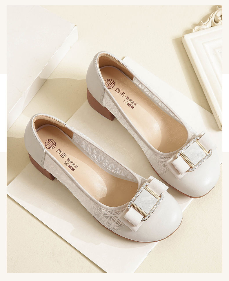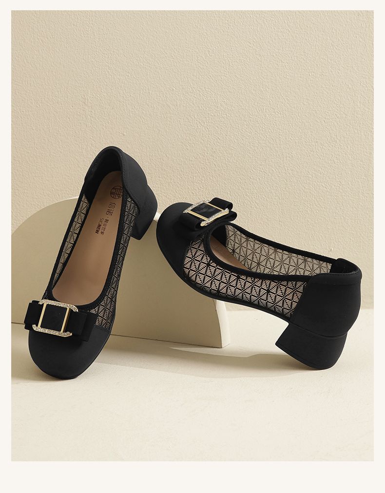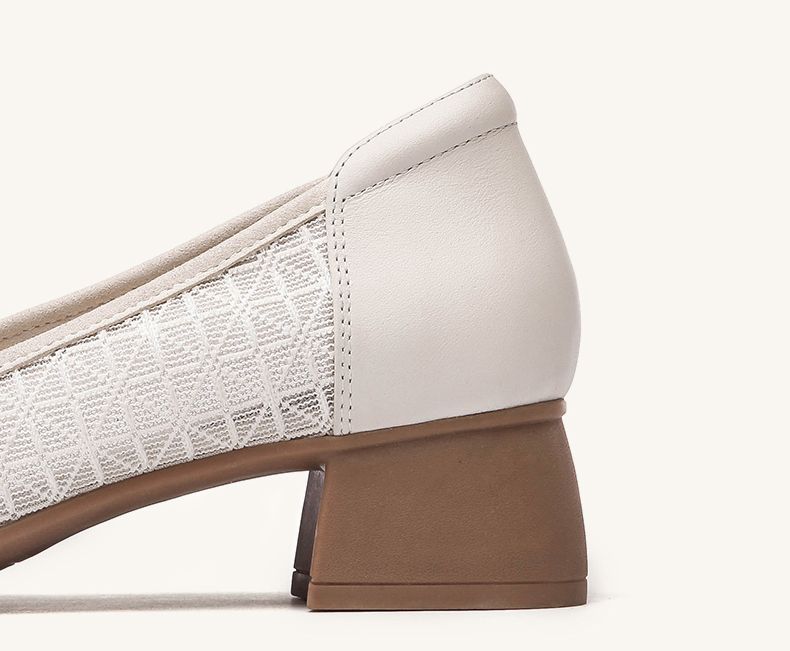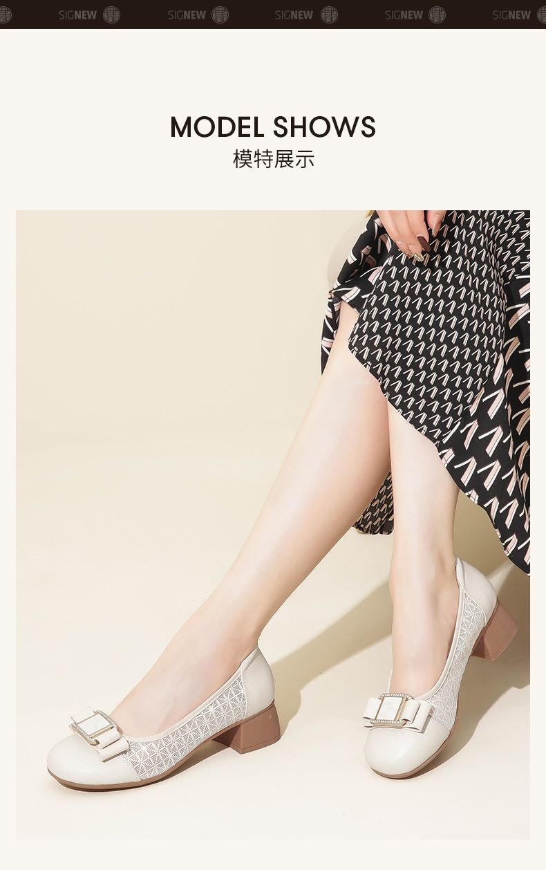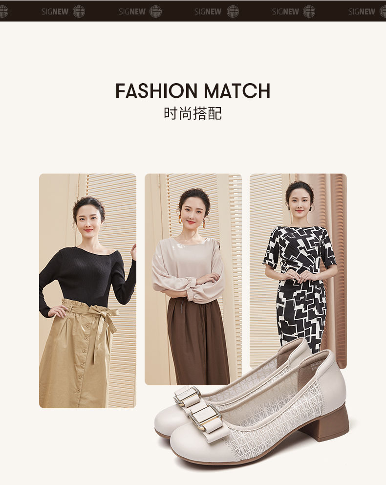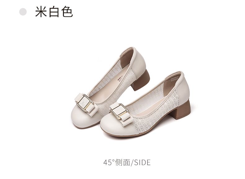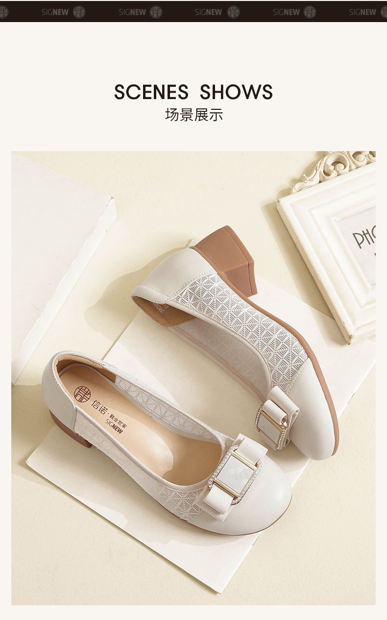 信诺 脚宽舒适女鞋 2024新款网纱凉鞋中跟粗跟妈妈鞋洋气软底皮鞋24C3870-1