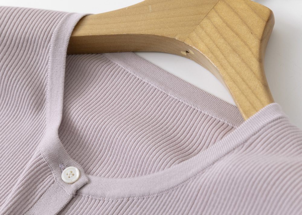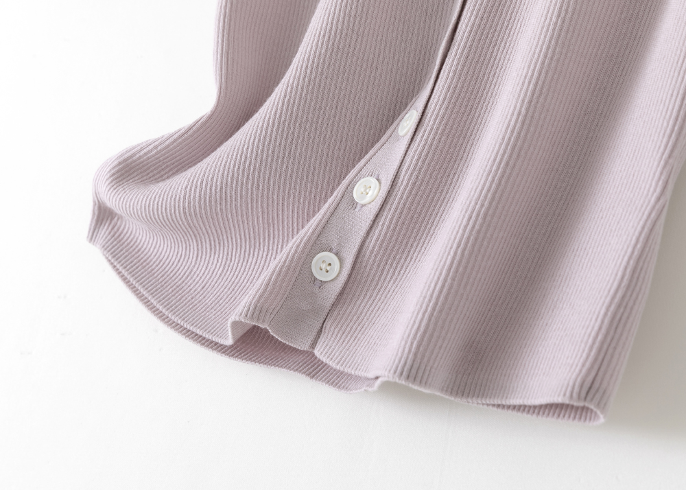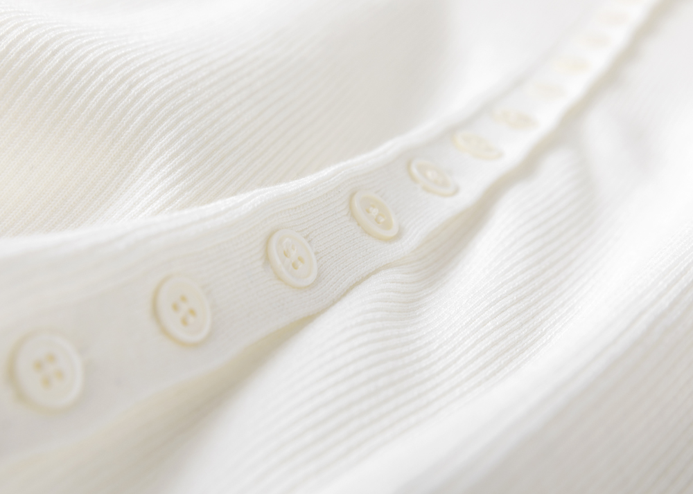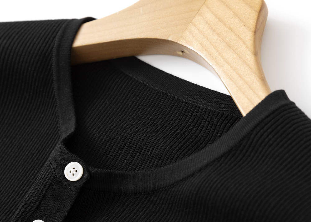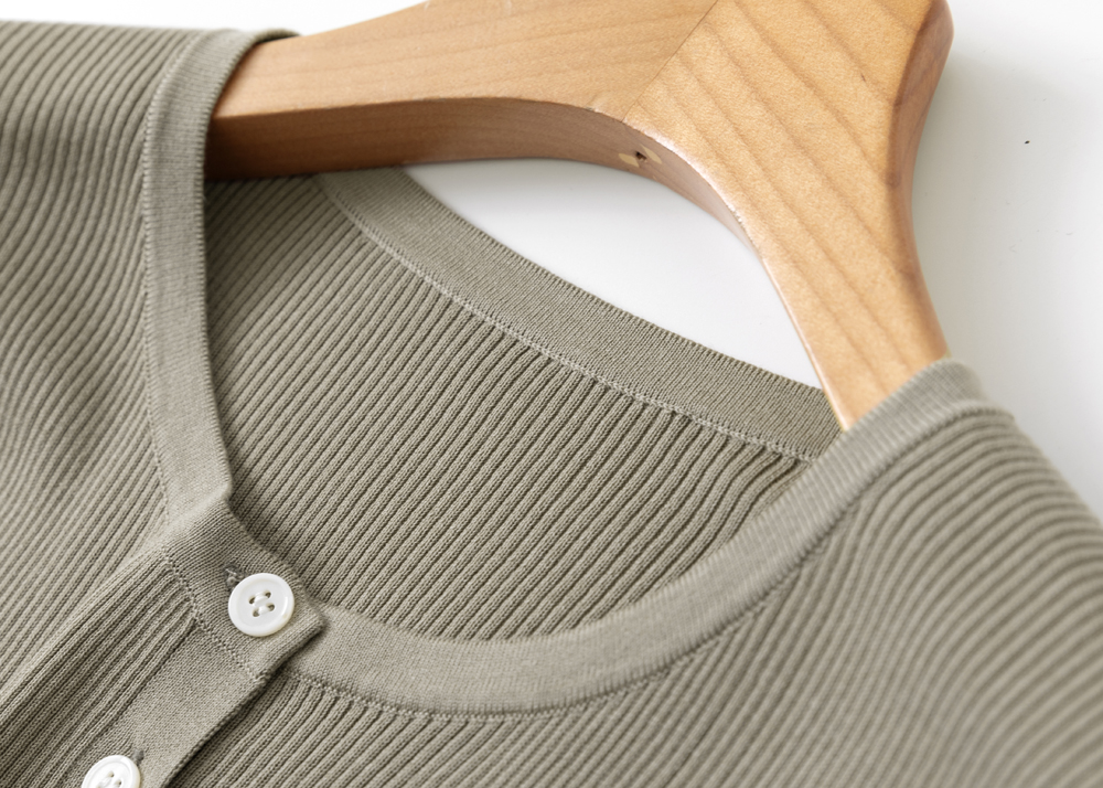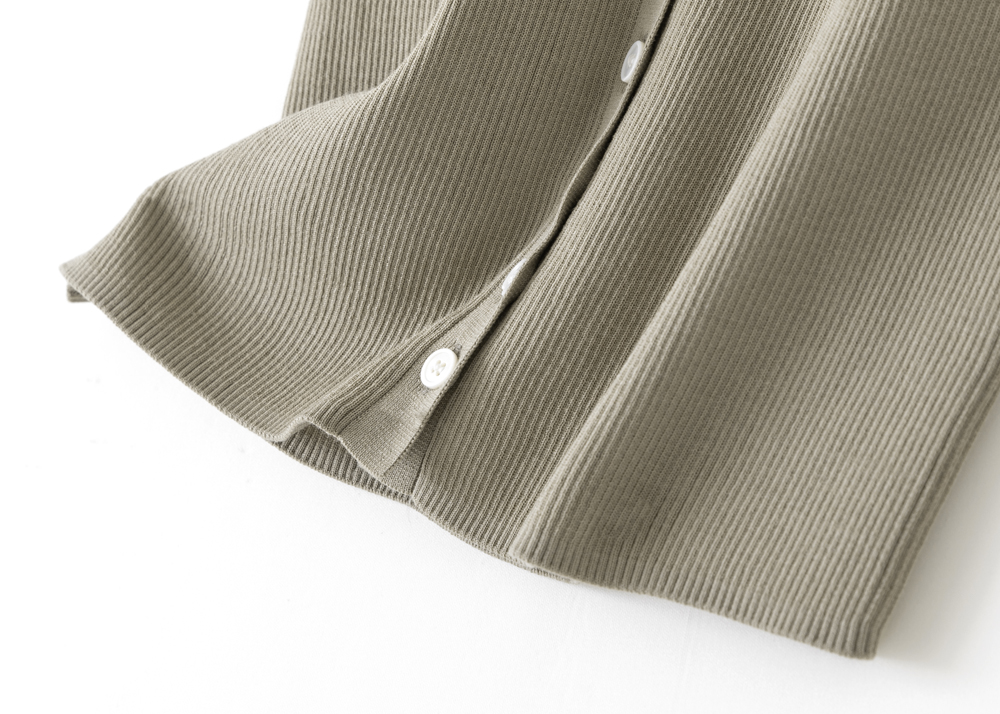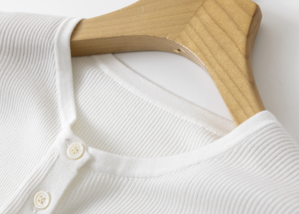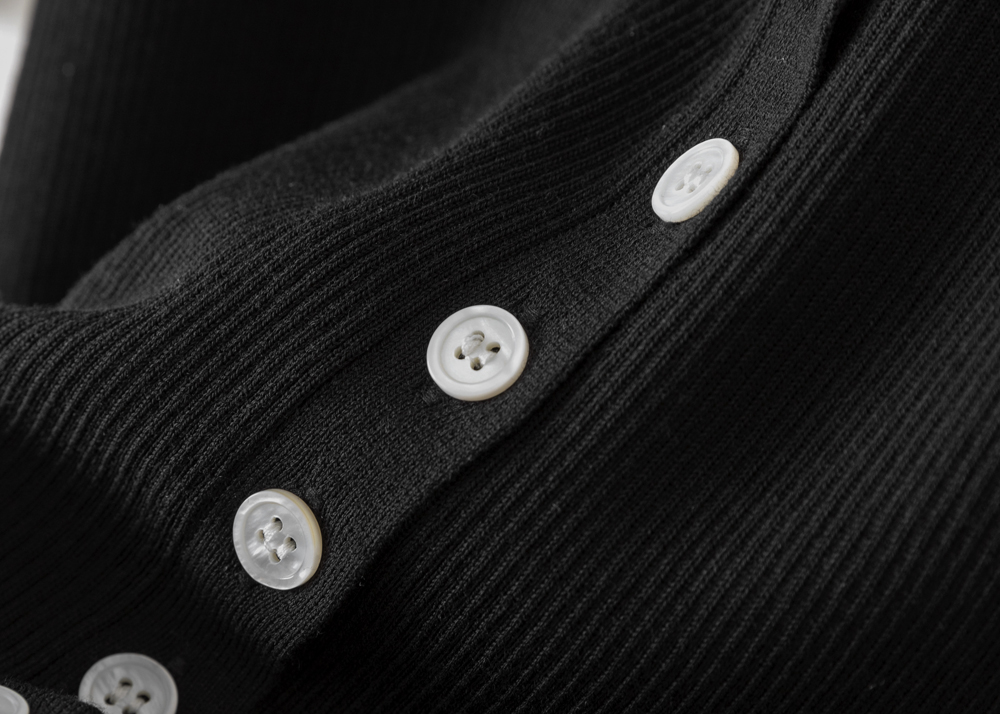 生产工艺上采用进口德国斯托尔正16针织造,1*1工艺织造,针法细腻,不易变形,整个织片时间较长,一台机器一天24小时也就只能做出来十几件衣服,昂贵的工价足以保证整件背心平整性非常好,细腻柔软,还具有筋骨感和挺括的版型。