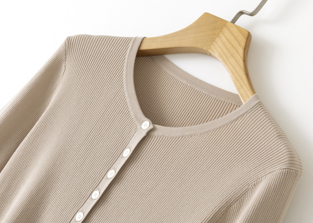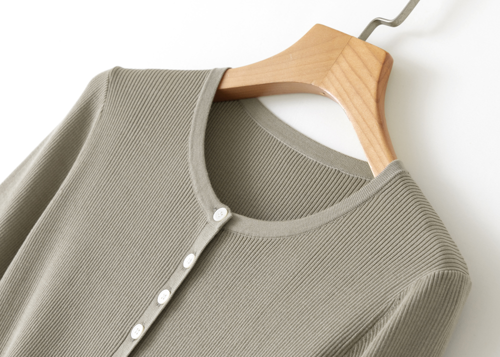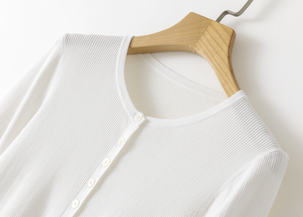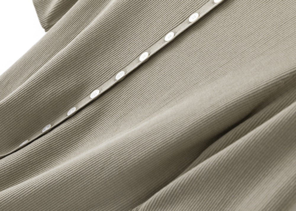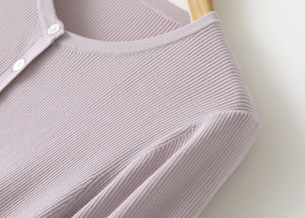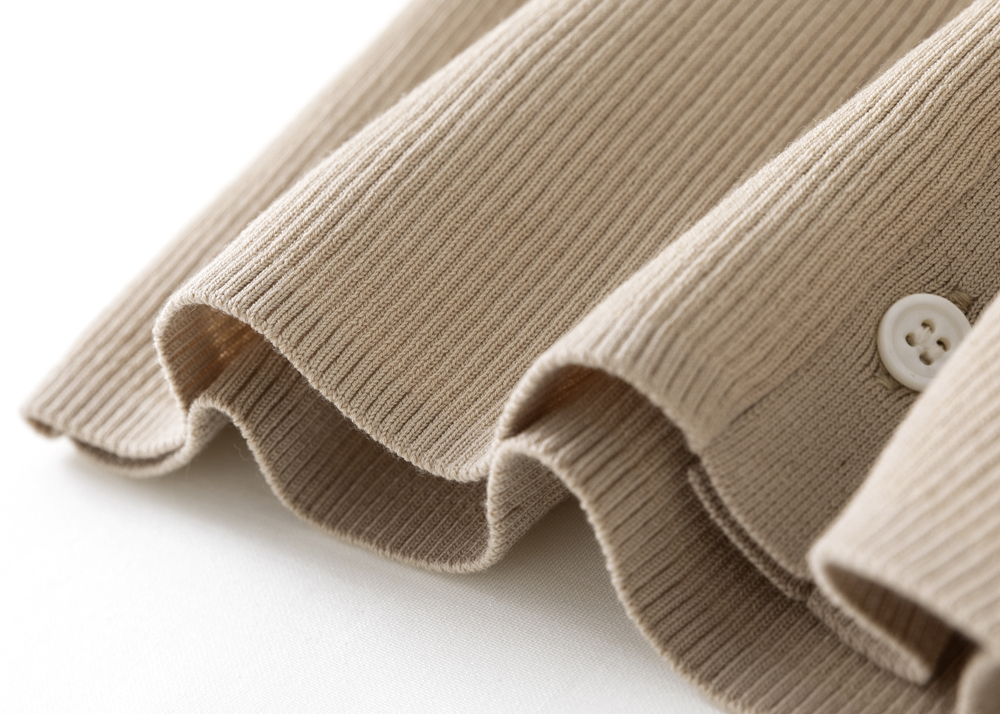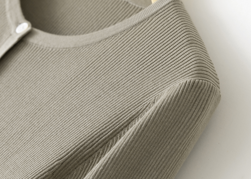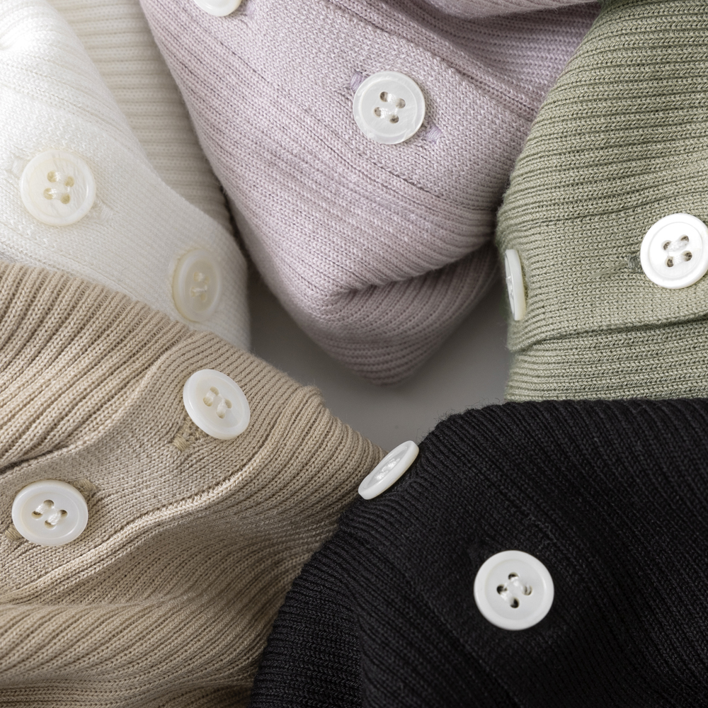 生产工艺上采用进口德国斯托尔正16针织造,1*1工艺织造,针法细腻,不易变形,整个织片时间较长,一台机器一天24小时也就只能做出来十几件衣服,昂贵的工价足以保证整件背心平整性非常好,细腻柔软,还具有筋骨感和挺括的版型。