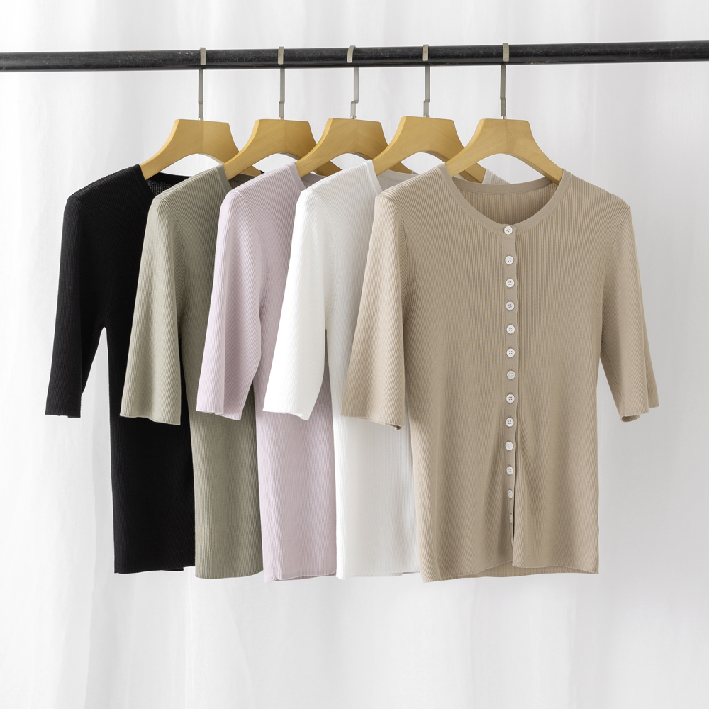 利落合身的版型,有效修饰和优化身材比例,中袖长度恰到好处的设计既能遮住手臂彰显出修长感,衬托出不一样的气质,既可以单穿,也方便叠穿混搭,舒适回弹,包容更多身形,色彩搭配上也不挑肤色,每一个颜色都能穿搭出不一样的风格,可轻松多件入进衣橱~~