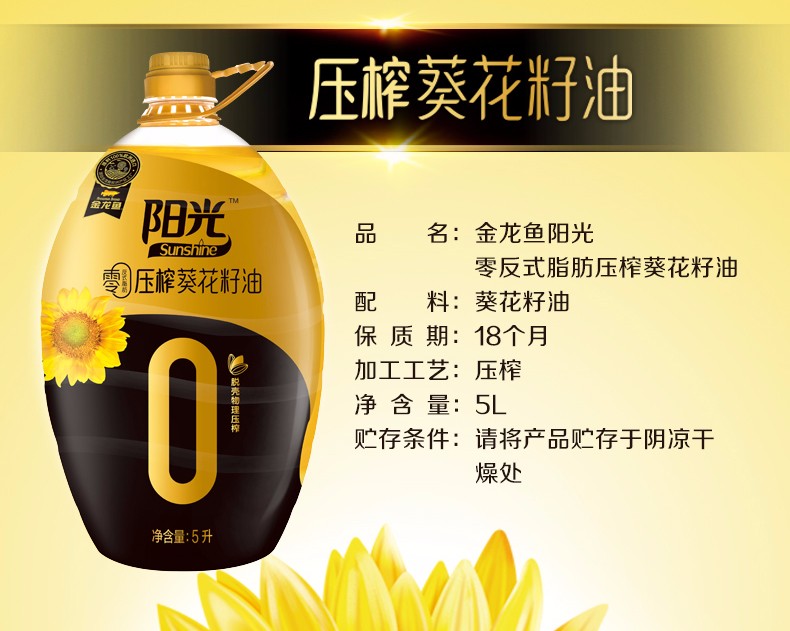 金龙鱼 食用油 阳光零反式脂肪葵花仁油5L 葵花籽油5L