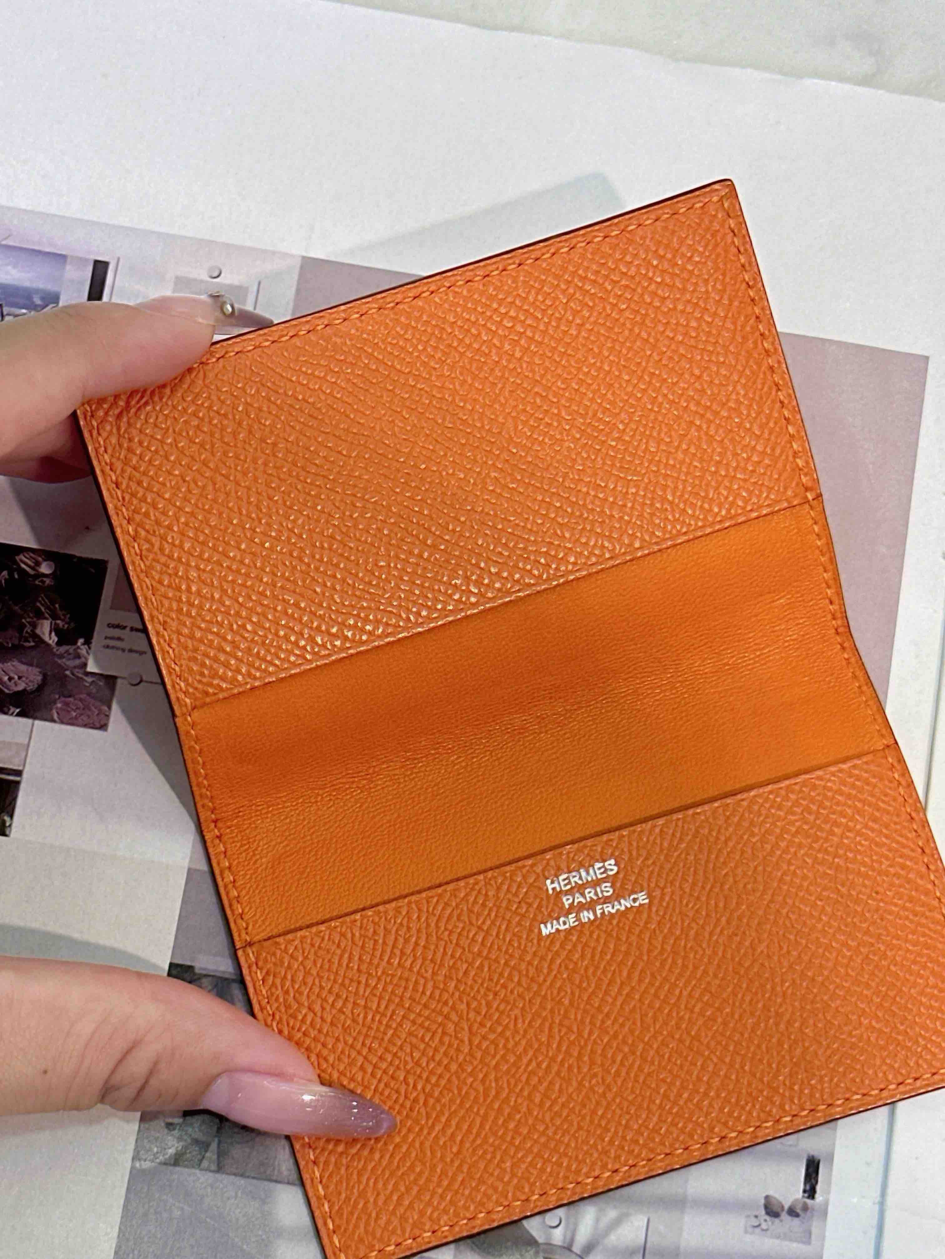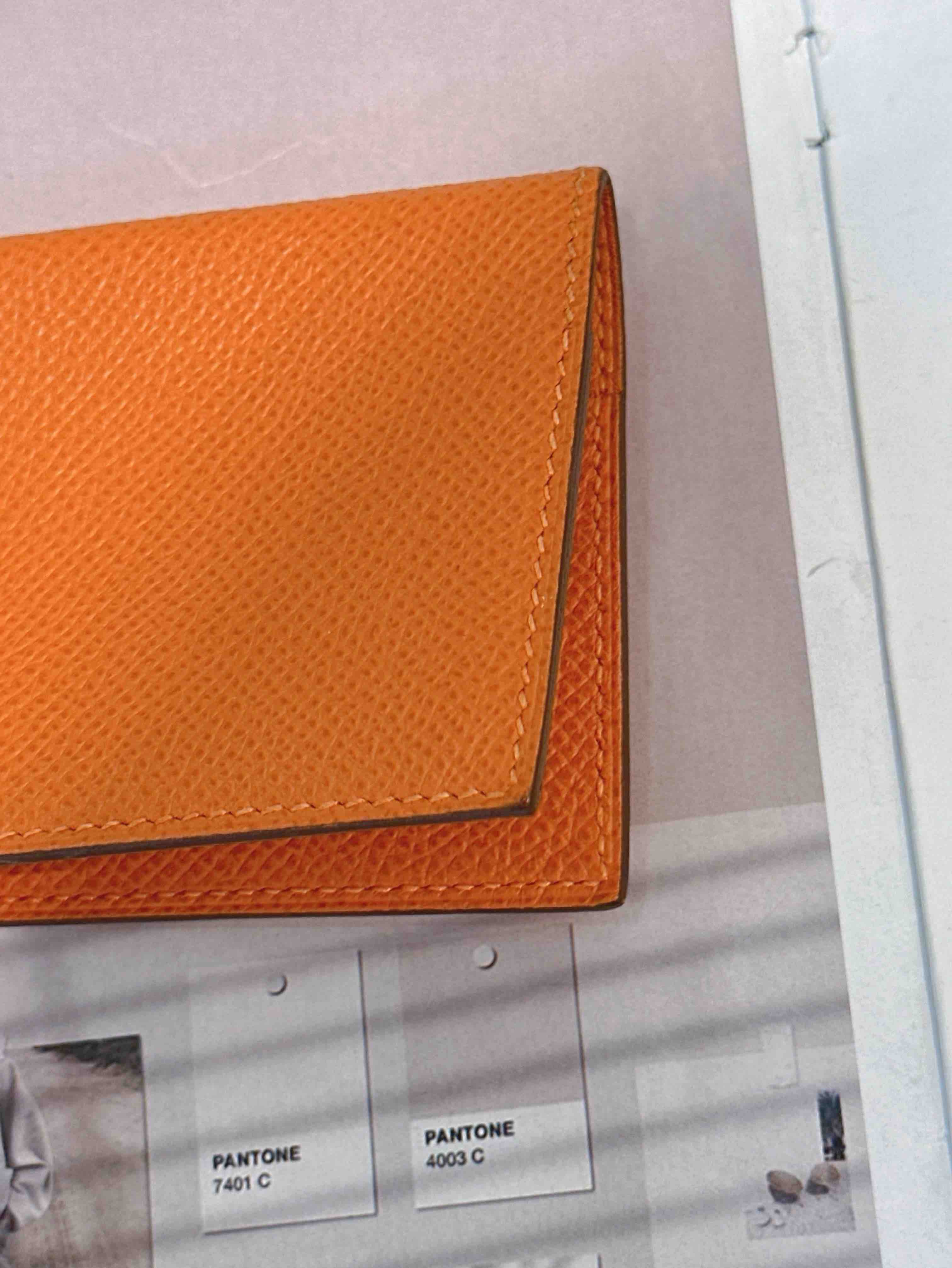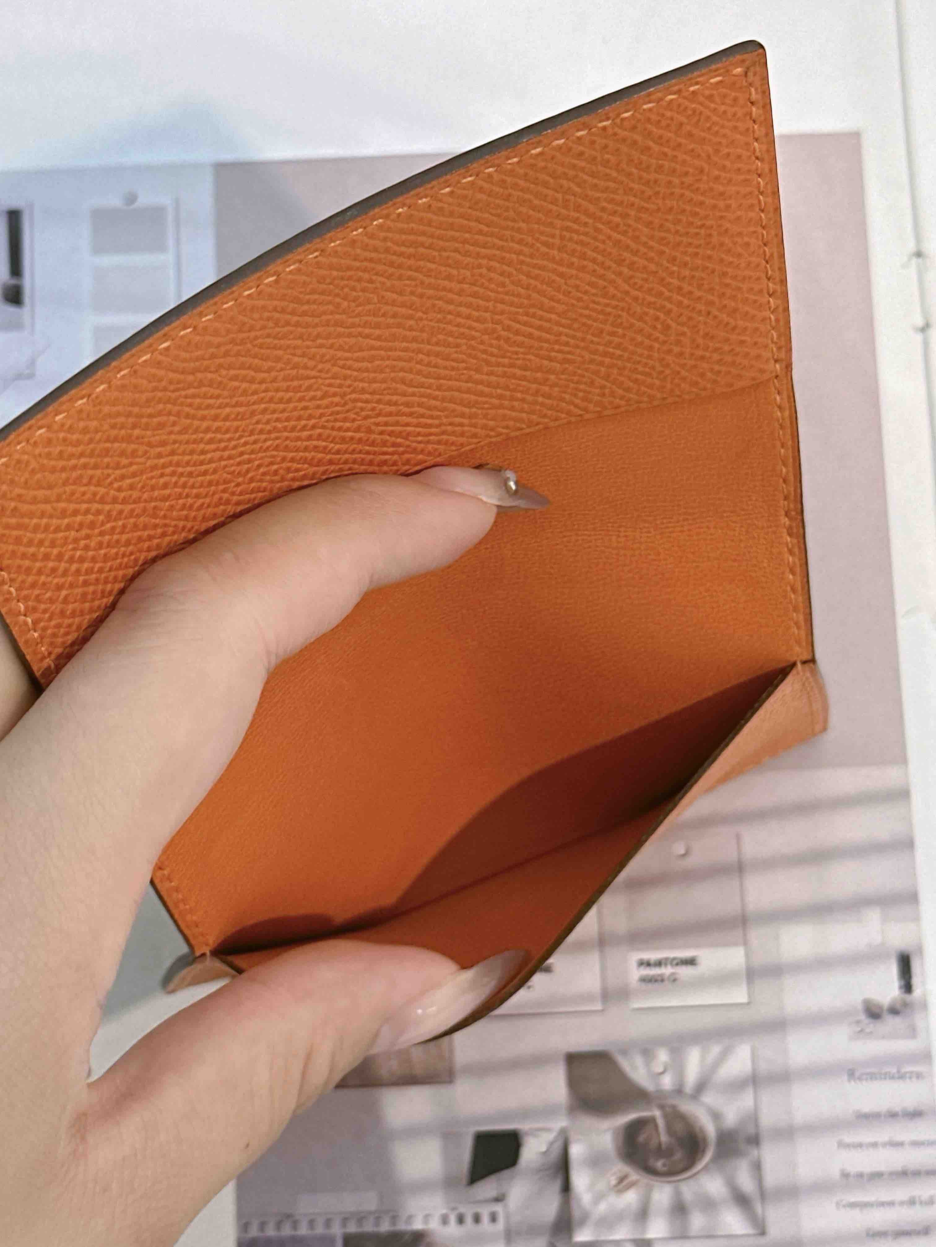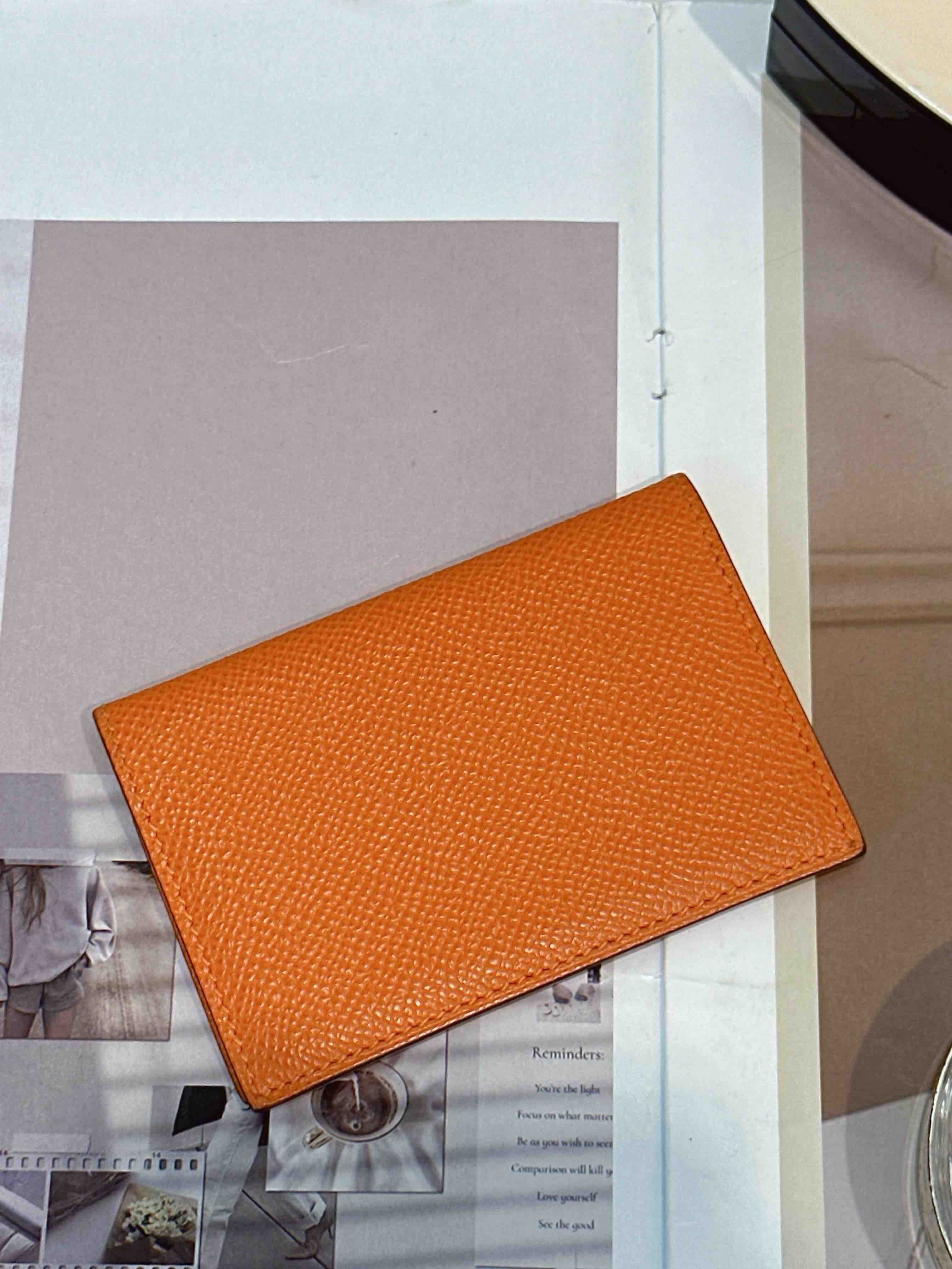【商品詳情】正品二手 爱马仕 火焰橙 e皮 卡包🍊 97新 10*7 方块Q刻。边角轻微使用摩擦感。轻量小卡包