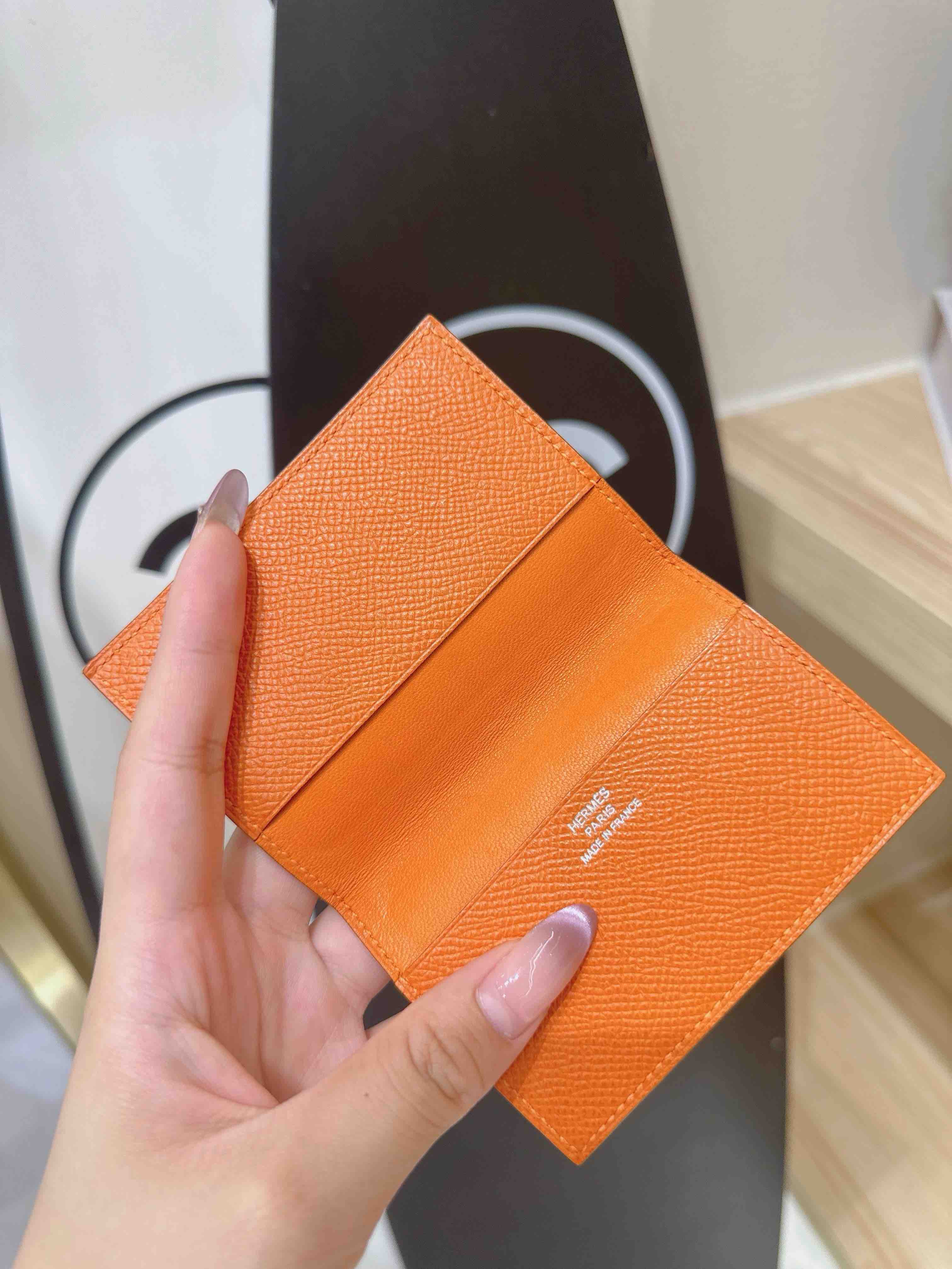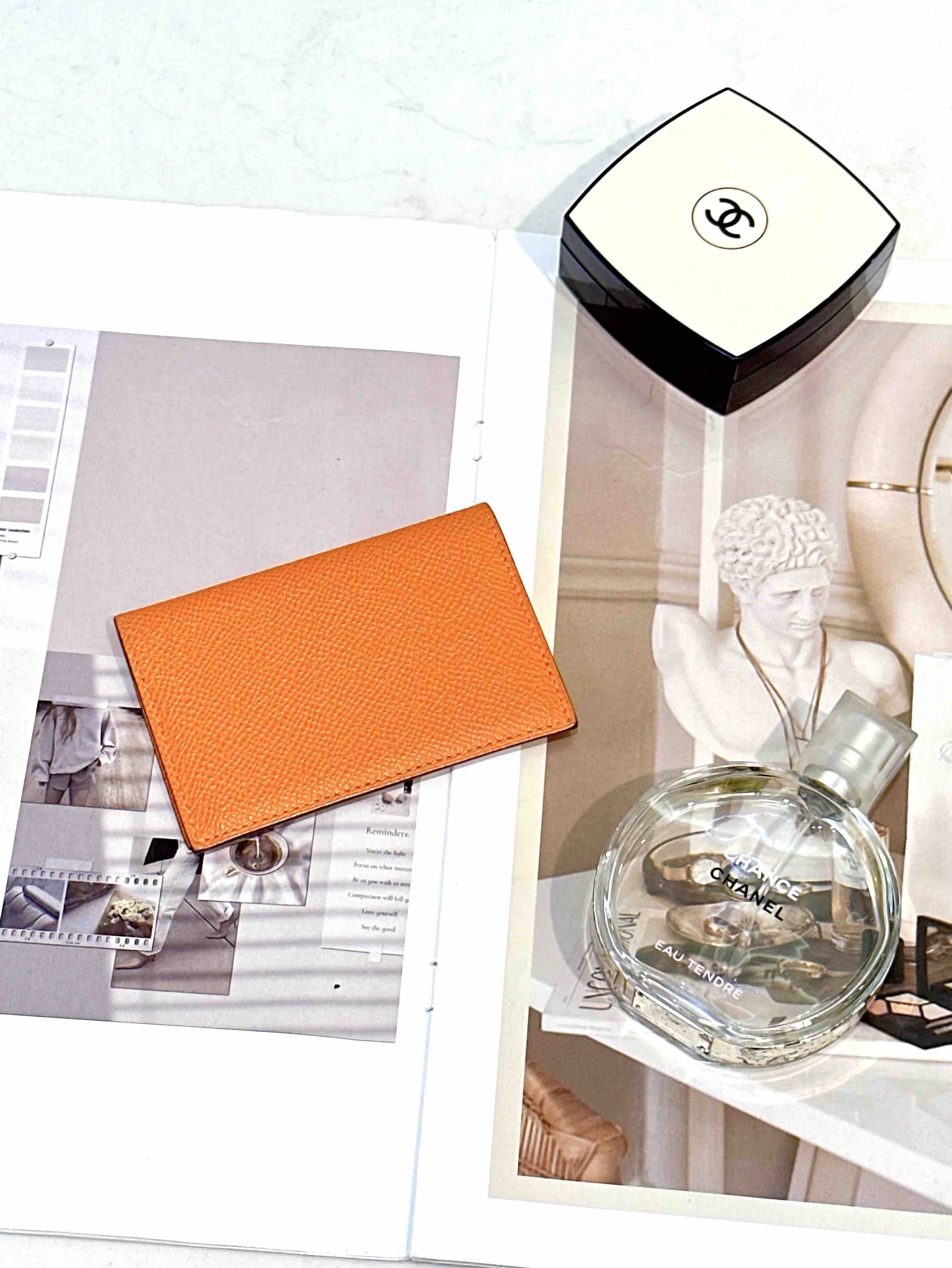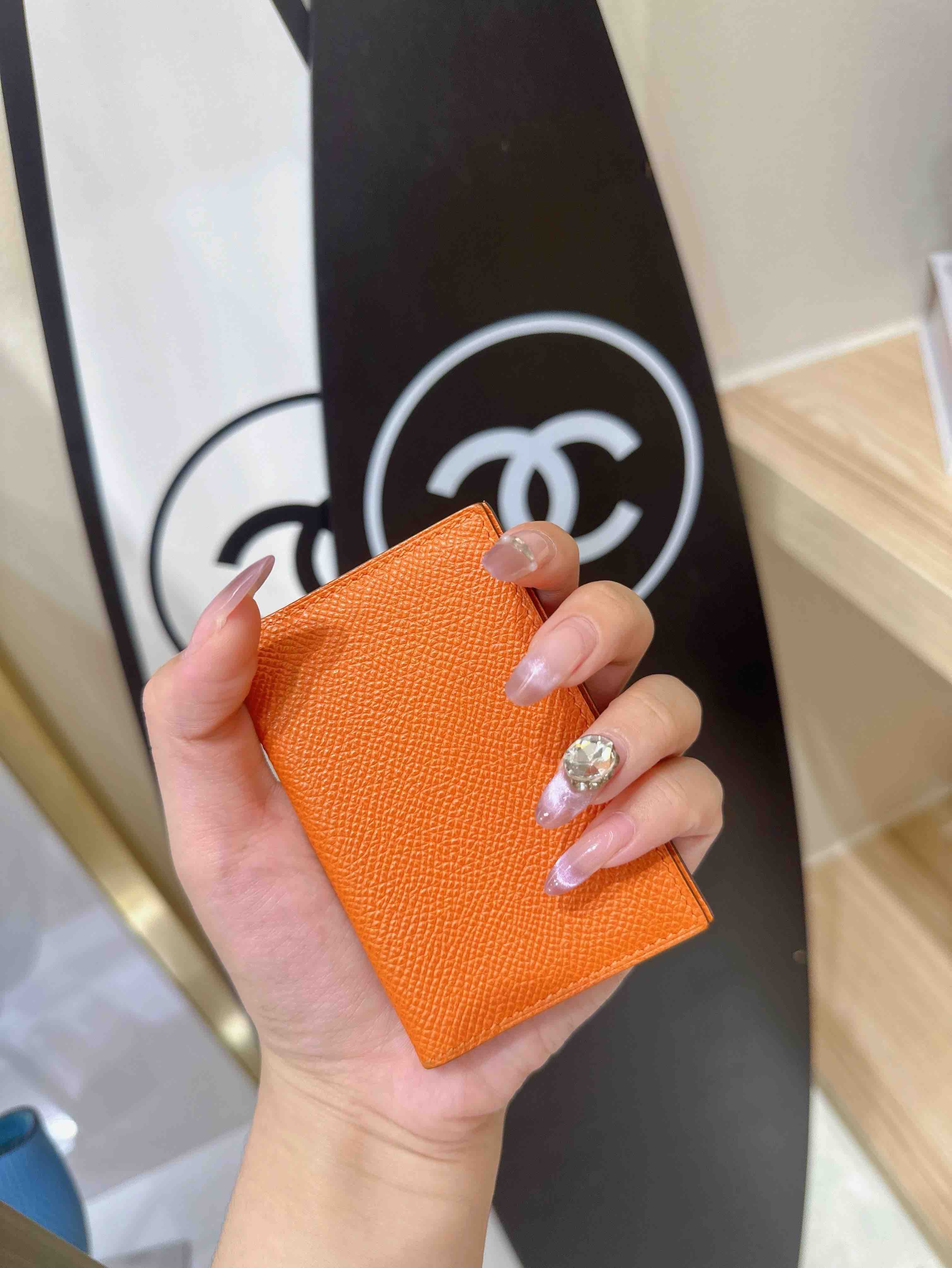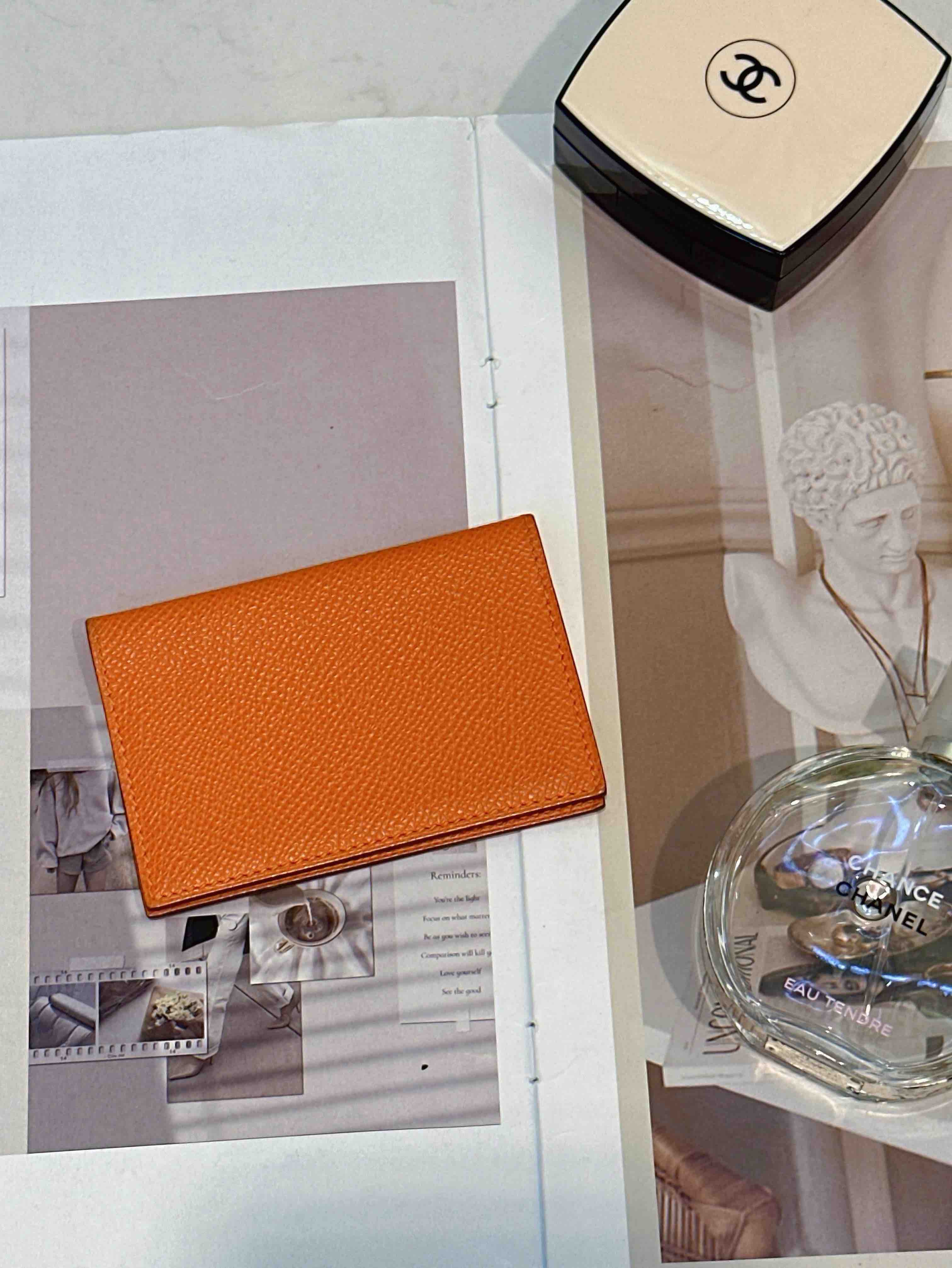 【商品詳情】正品二手 爱马仕 火焰橙 e皮 卡包🍊 97新 10*7 方块Q刻。边角轻微使用摩擦感。轻量小卡包
