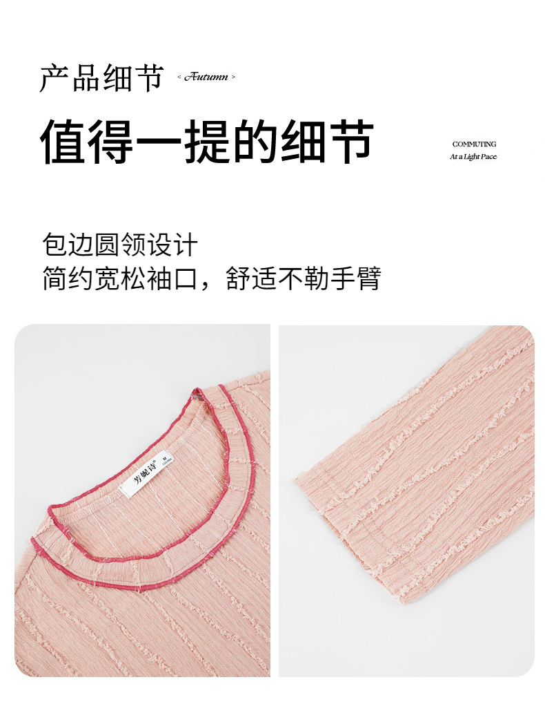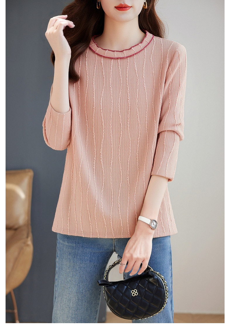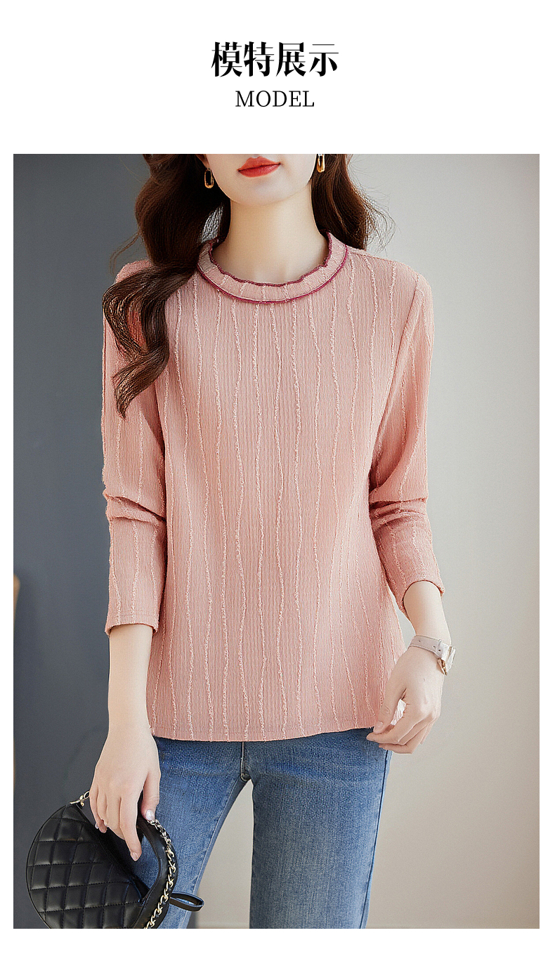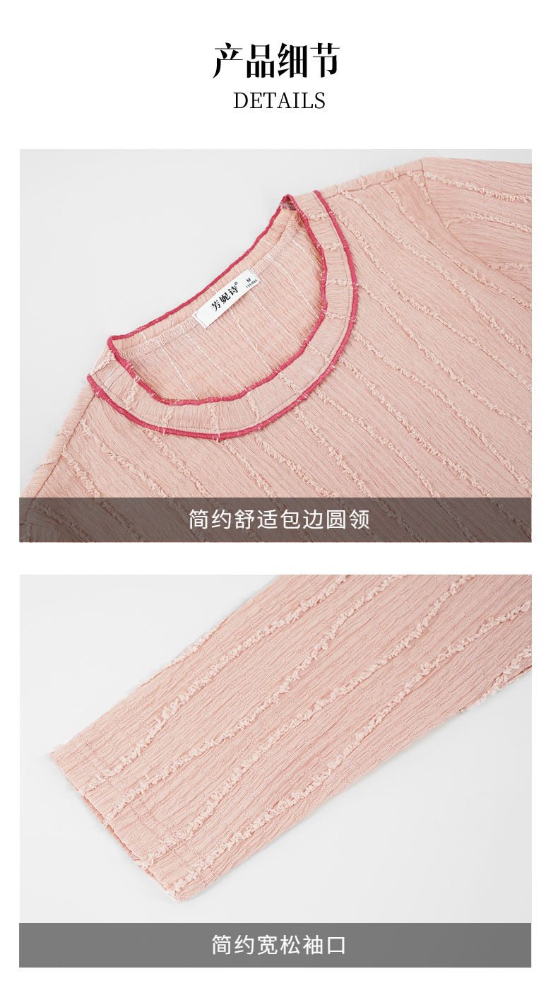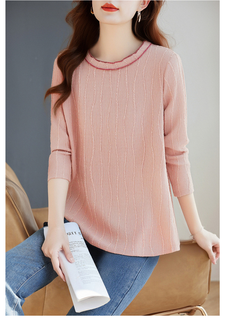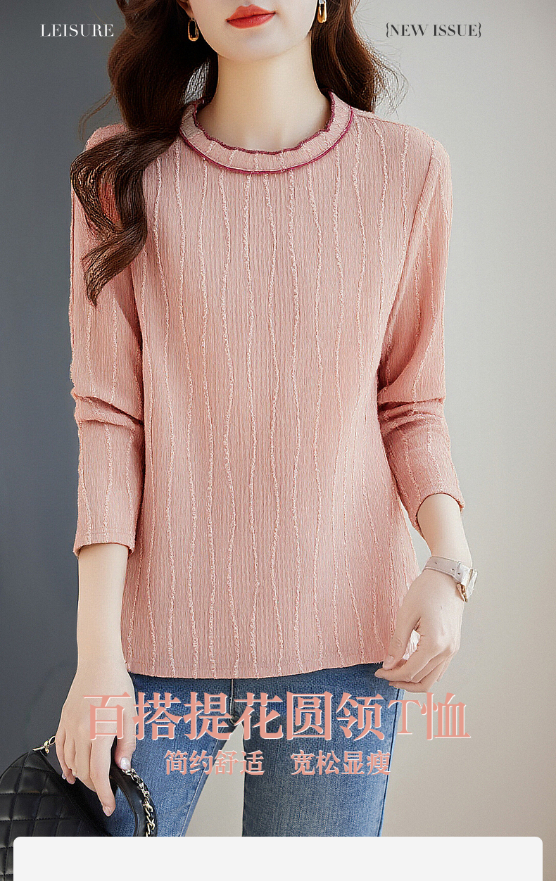 休闲圆领长袖t恤女秋季新款大码宽松显瘦遮肉粉色上衣外穿打底衫