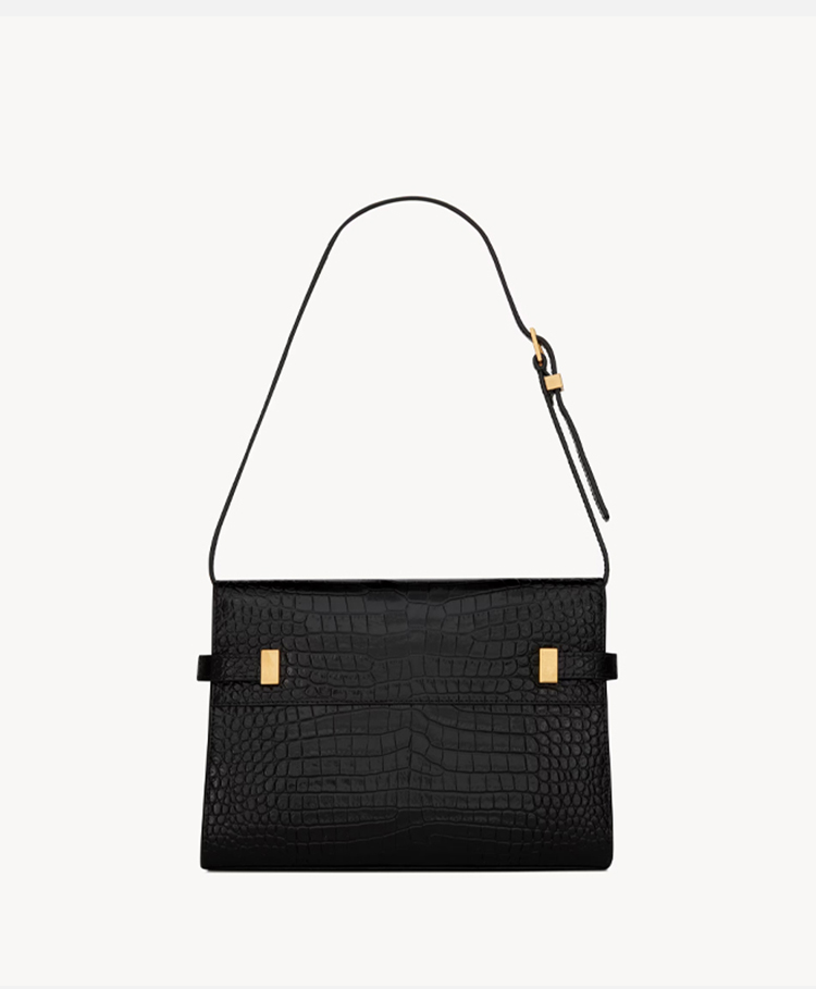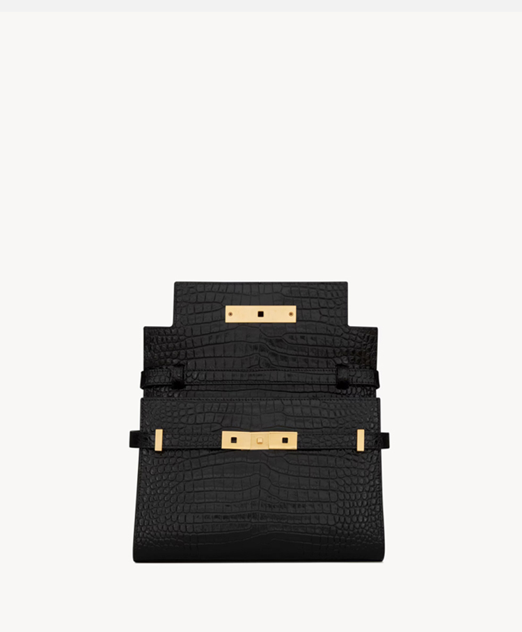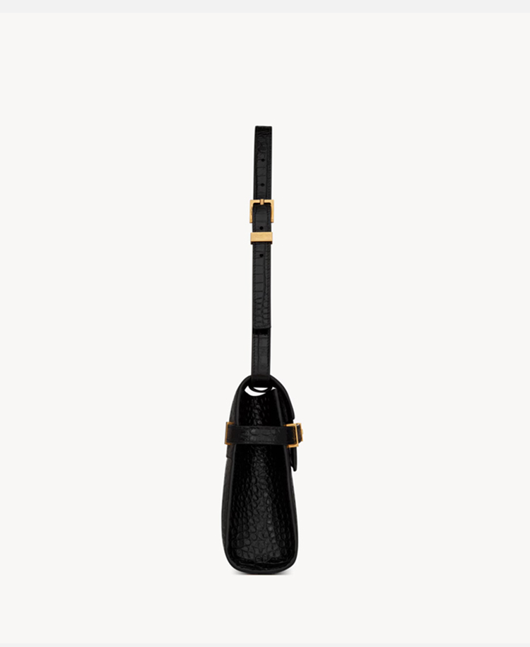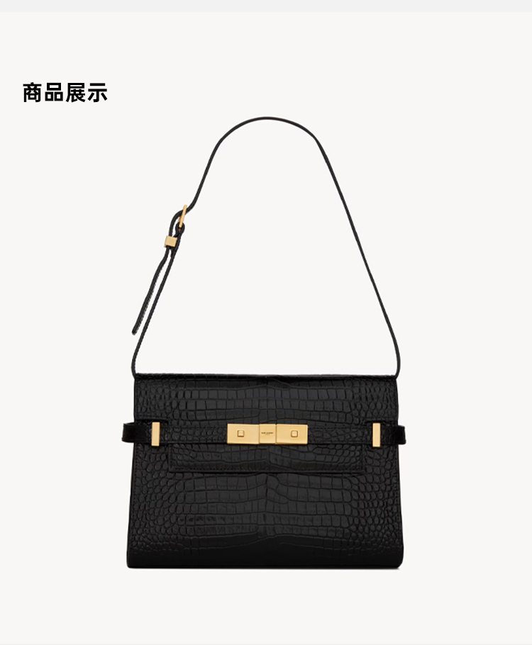 SAINT LAURENT 圣罗兰 女士亮面鳄鱼压纹皮革曼哈顿小号单肩包 黑色 675626 DND0W 1000