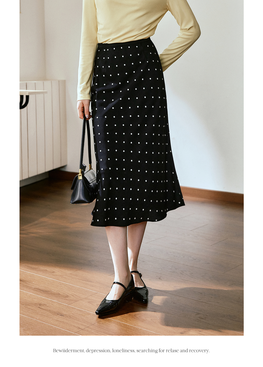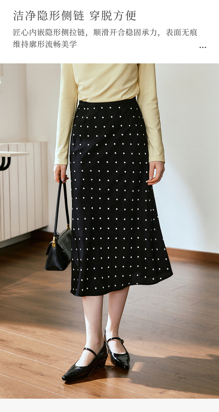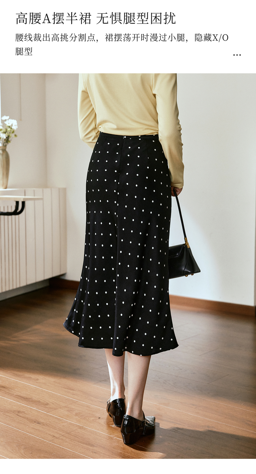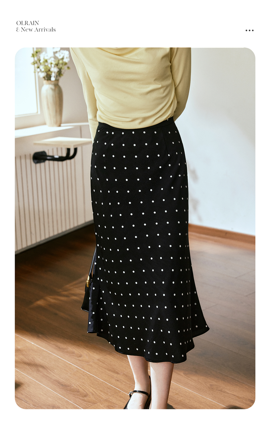 OLrain欧芮儿A字显瘦波点半身裙女秋季2025新款高腰显瘦中长裙