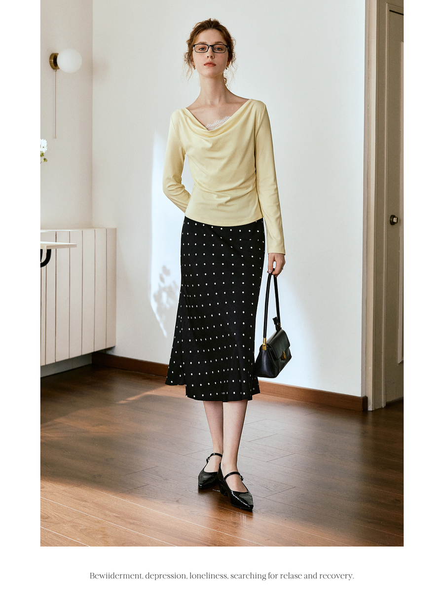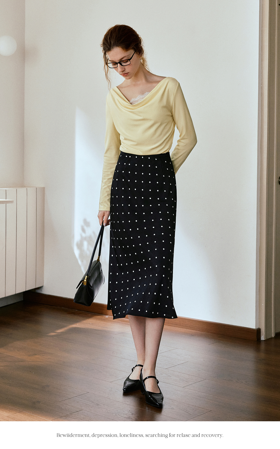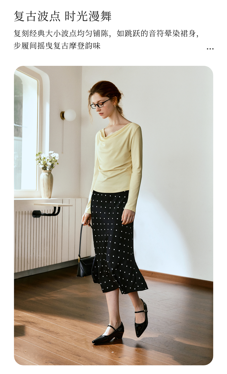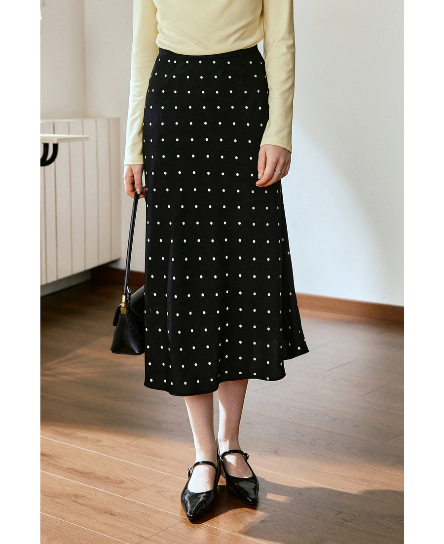 OLrain欧芮儿A字显瘦波点半身裙女秋季2025新款高腰显瘦中长裙