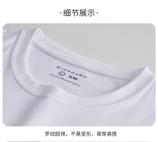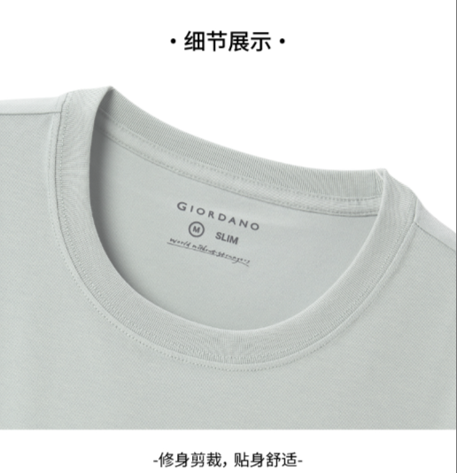 佐丹奴男装25年新款【冰冰系列】竹原凉感短袖T恤衫01025212