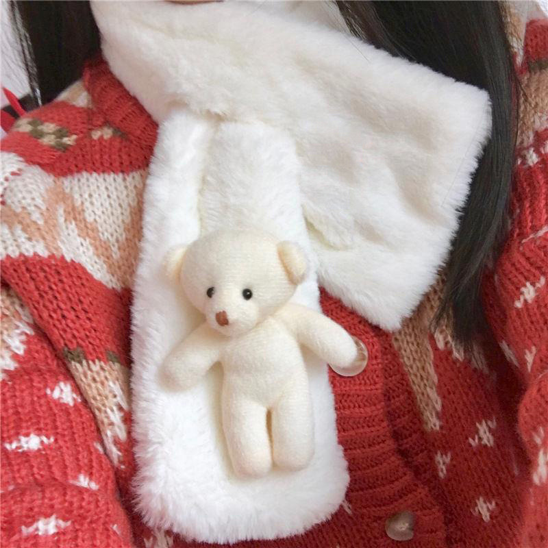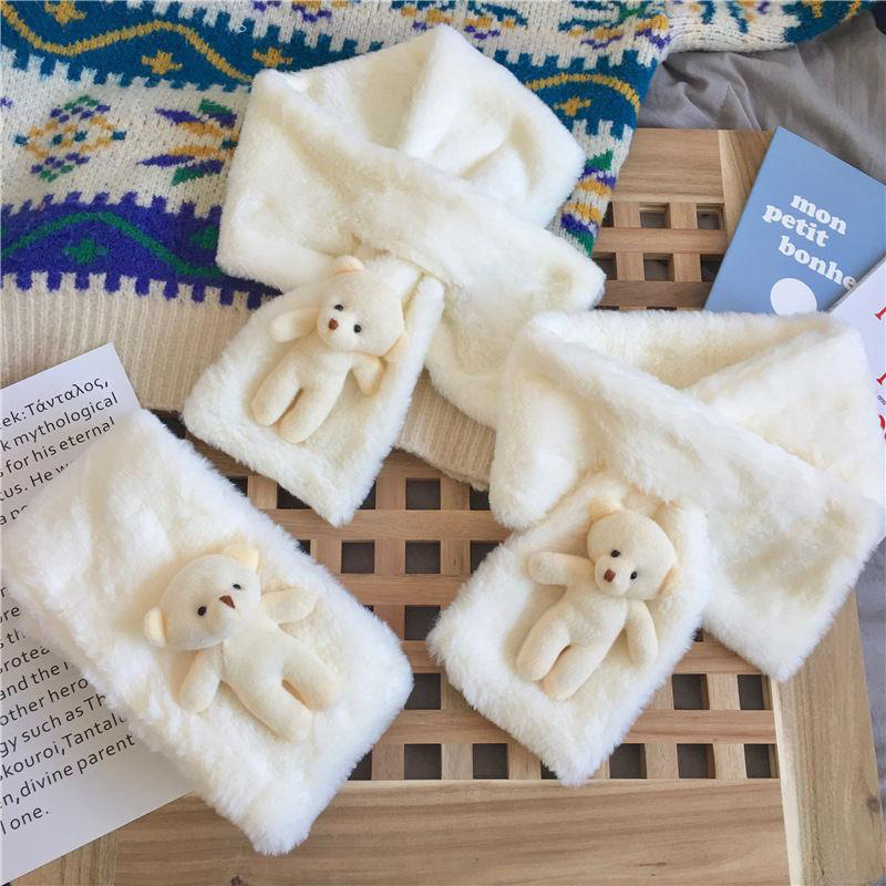 「9.9元到手!赠送小熊配饰」小熊围脖冬季纯色可爱毛绒脖套防寒保暖护颈户外挡风套头围巾