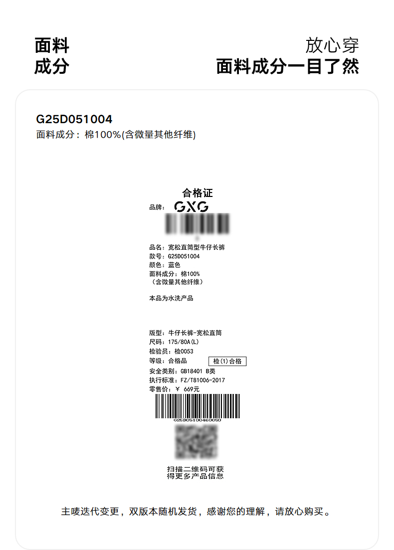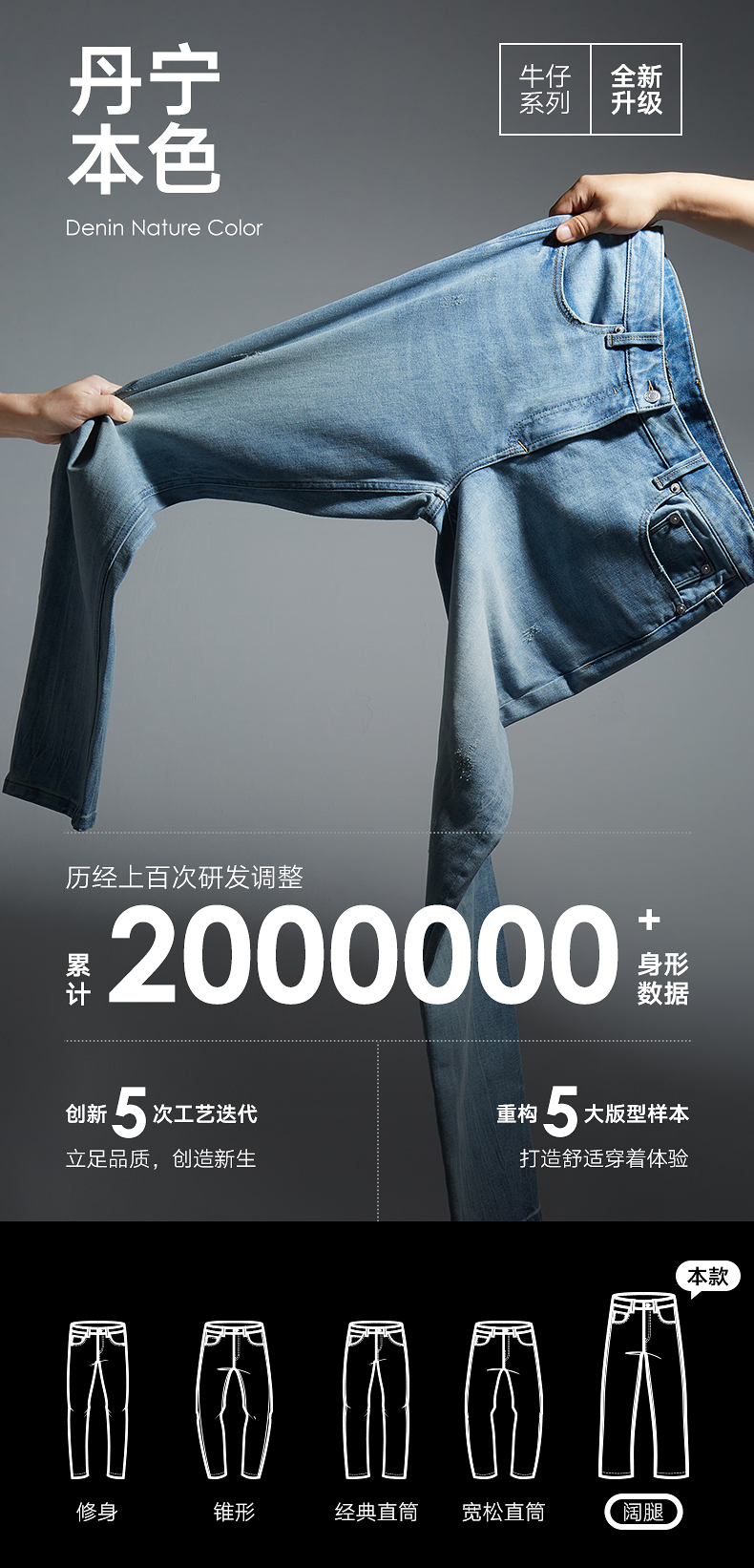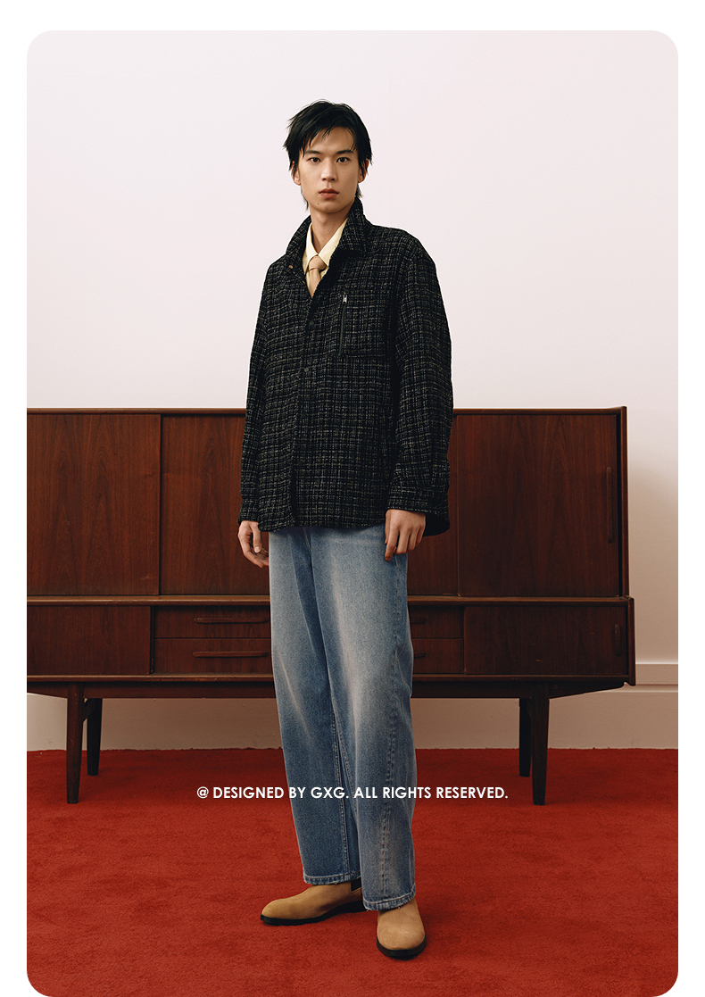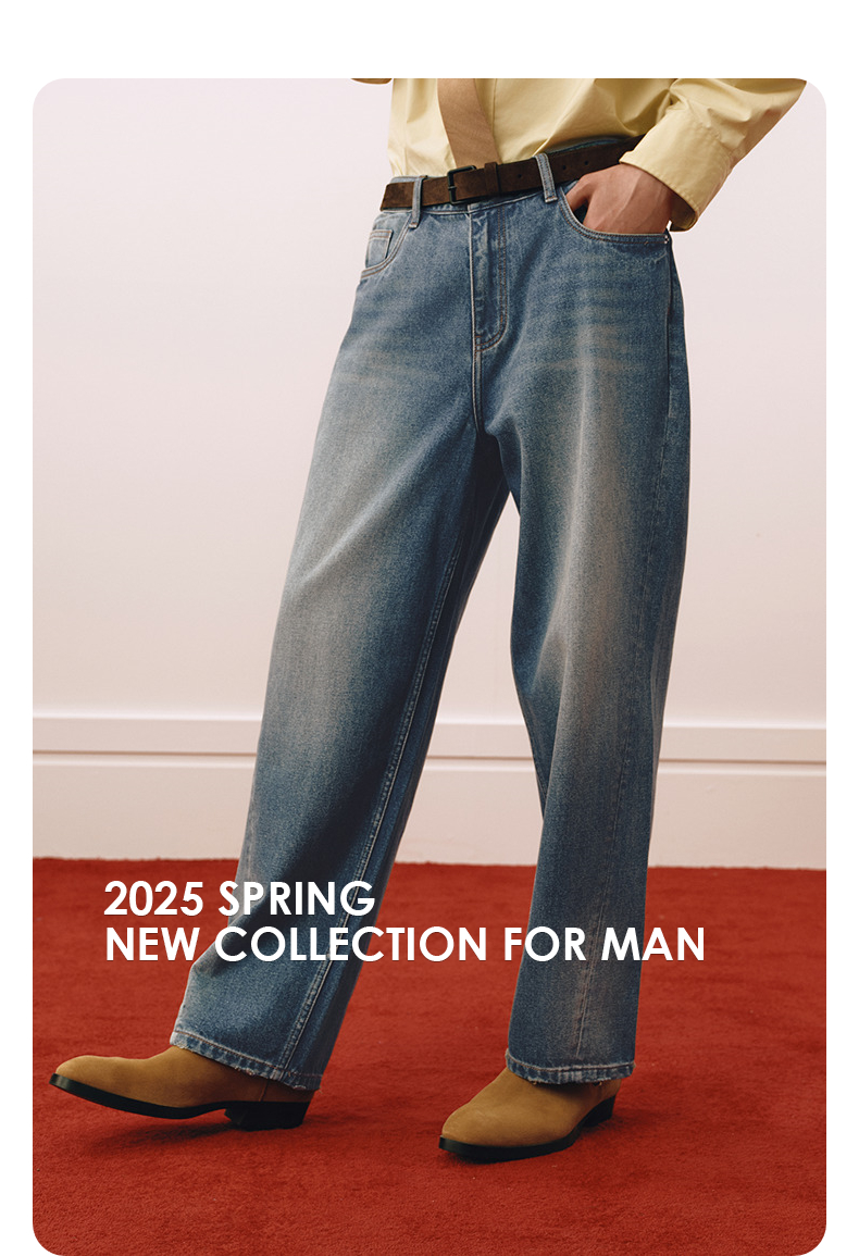 GXG男装 复古蓝直筒牛仔裤分割设计长裤宽松通勤裤 2025春季热卖
