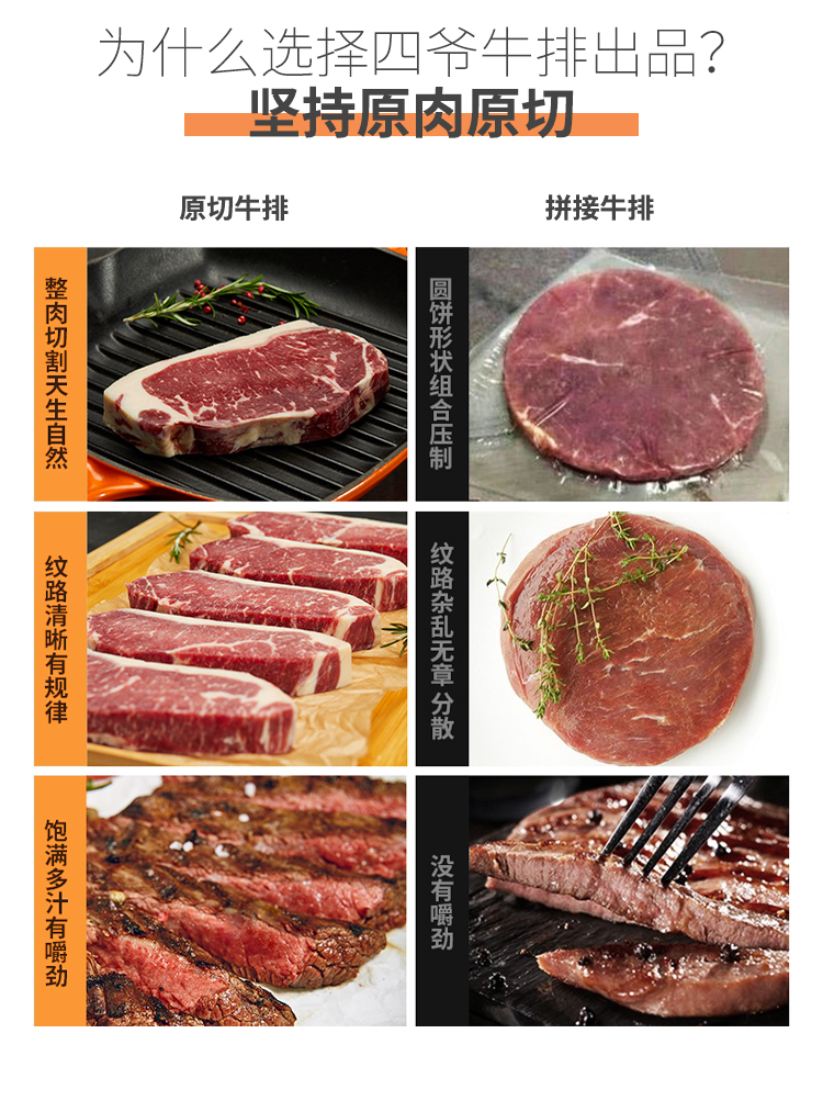 - 四爷牛排专注于原肉原切的健康美味,优化中国人膳食结构,提高生活品质,让千家万户吃上健康美味好牛肉。