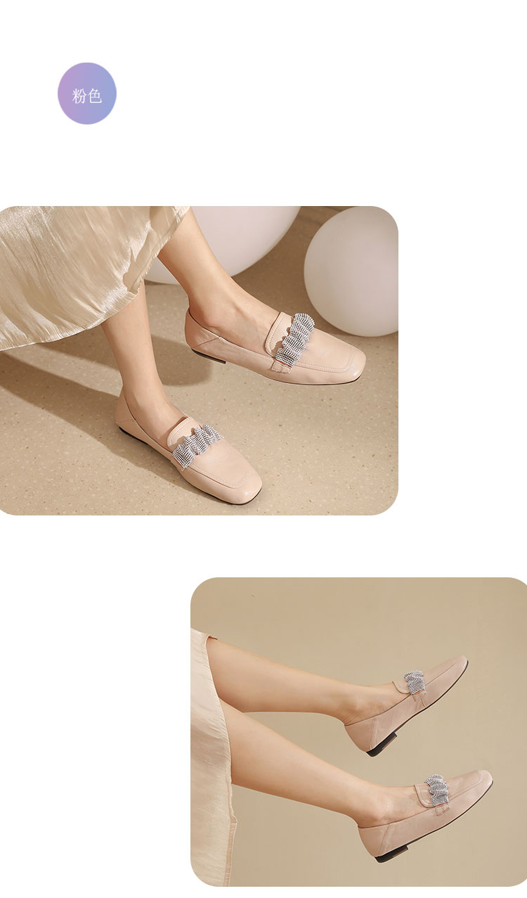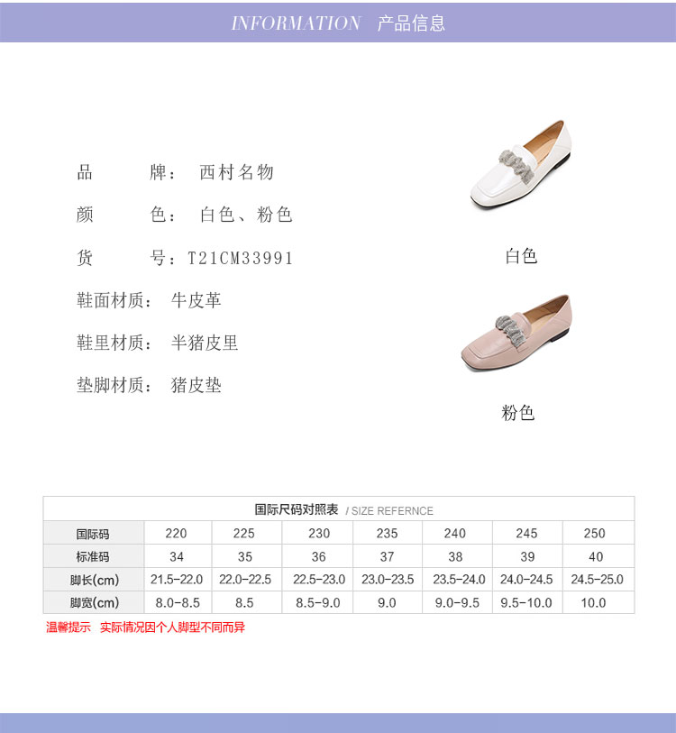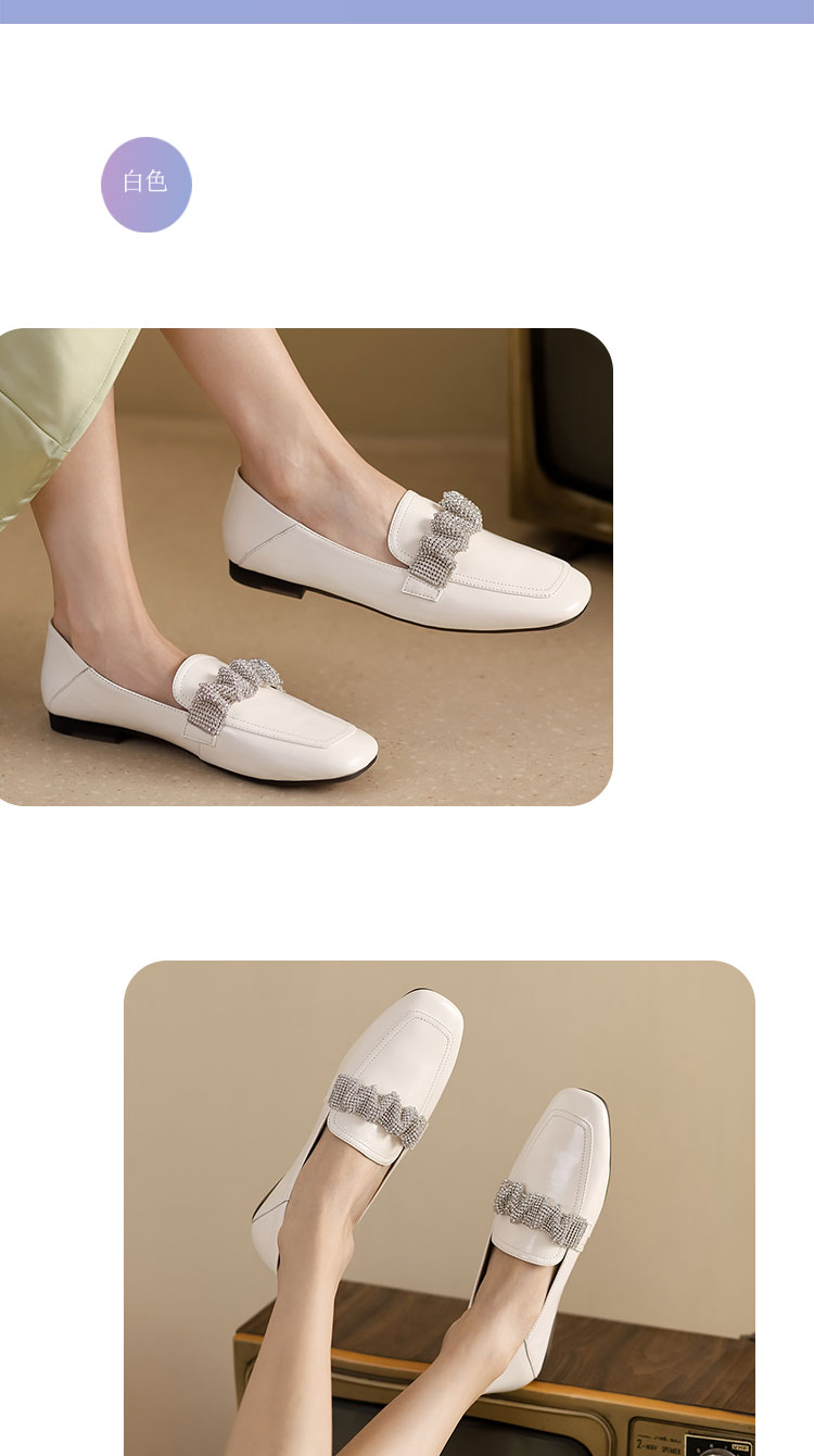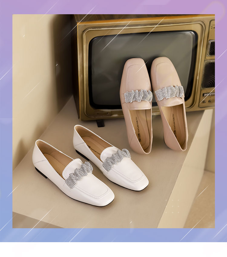 西村名物2021秋季新款质感钻条乐福鞋仙女鞋牛皮平跟女单鞋T21CM33991