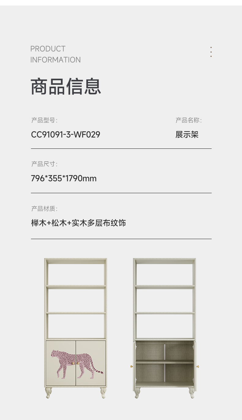 喜梦宝展示架松木实木多层免漆饰面粉红豹系列家居收纳