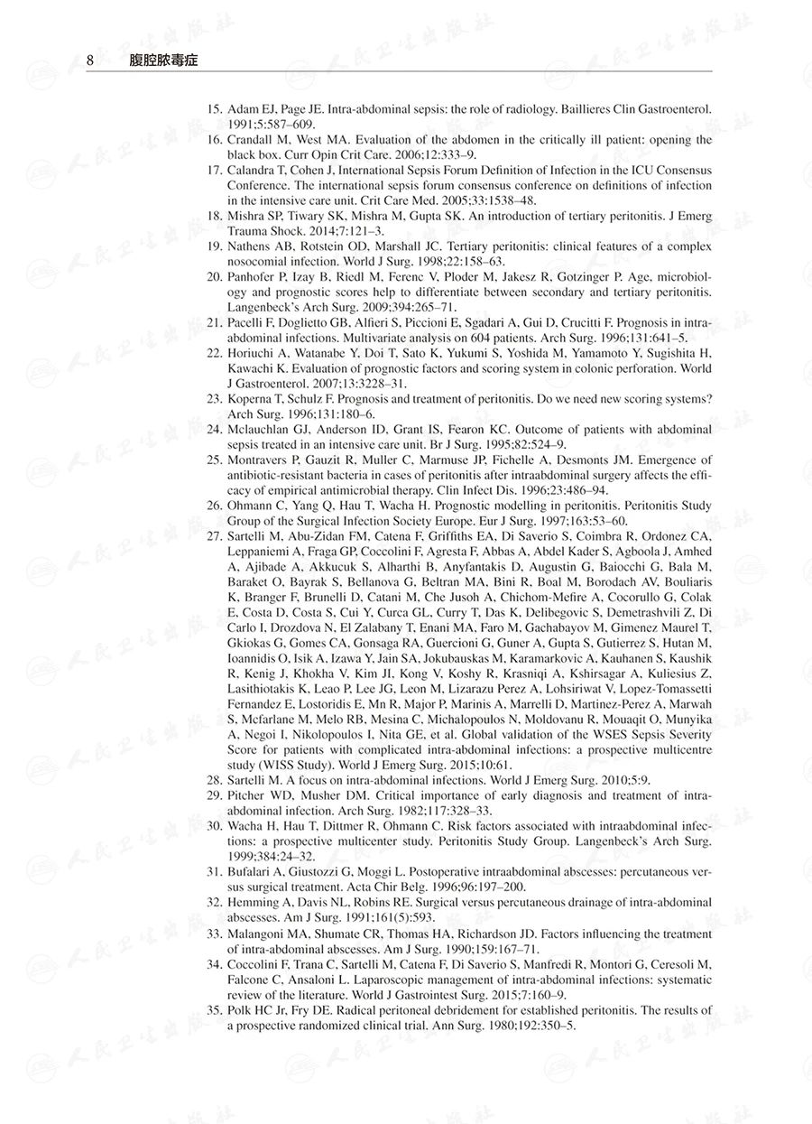 腔脓毒症的专著,主要内容包括腹腔脓毒症的分类、