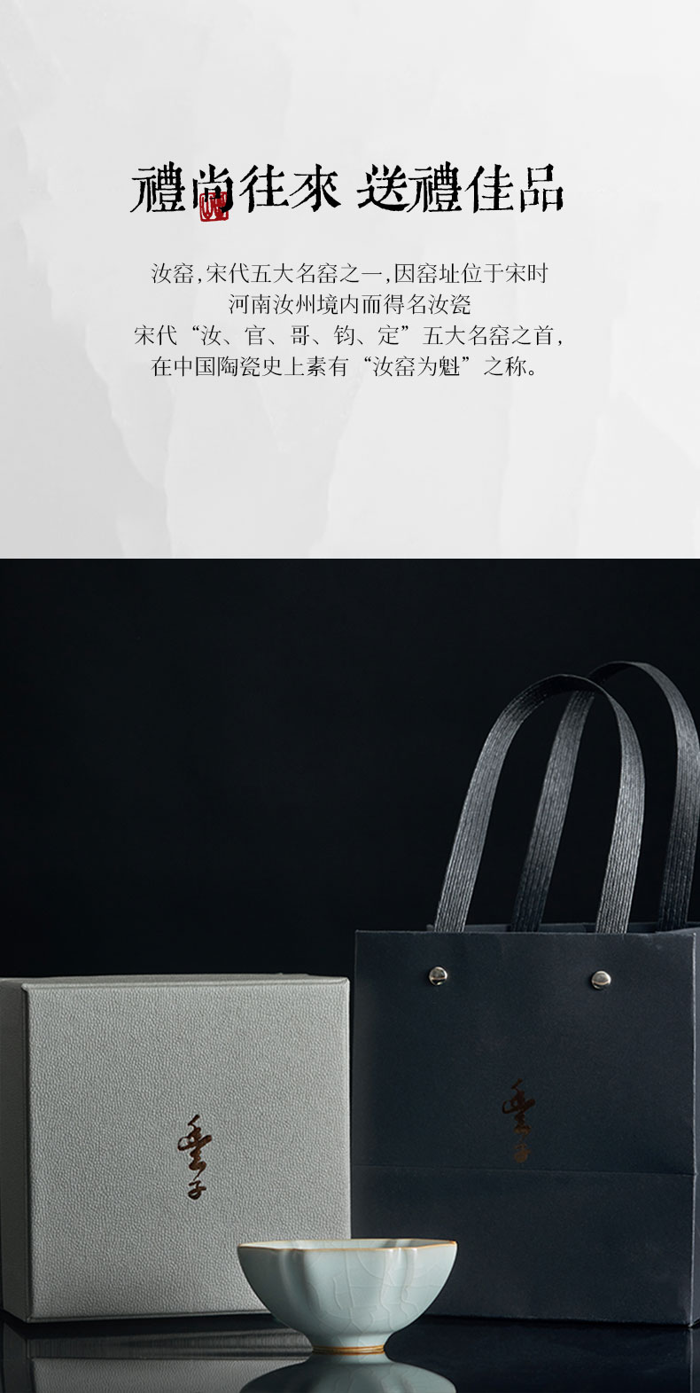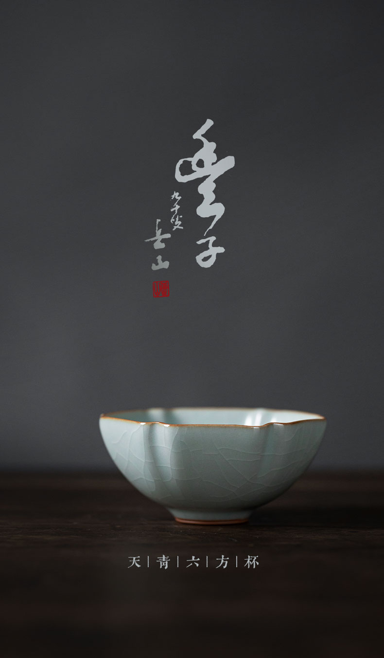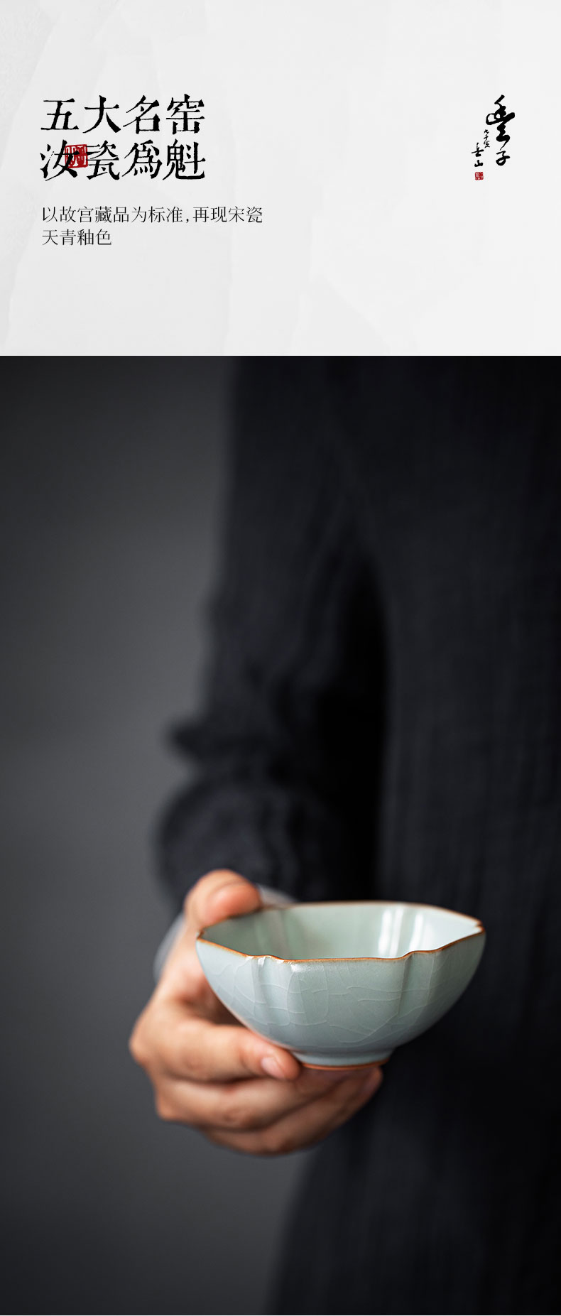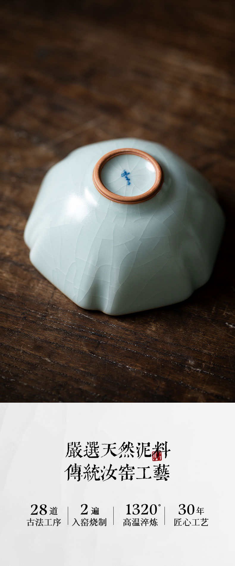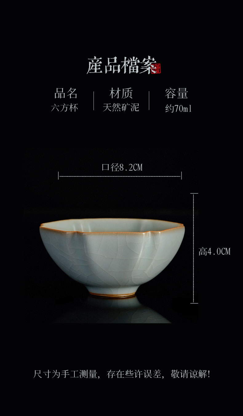 【丰子汝窑】【天青六方杯】8.2x4.3cm 100ml 茶杯纯手工开片主人杯陶瓷汝瓷单杯子个人品茗杯功夫茶具