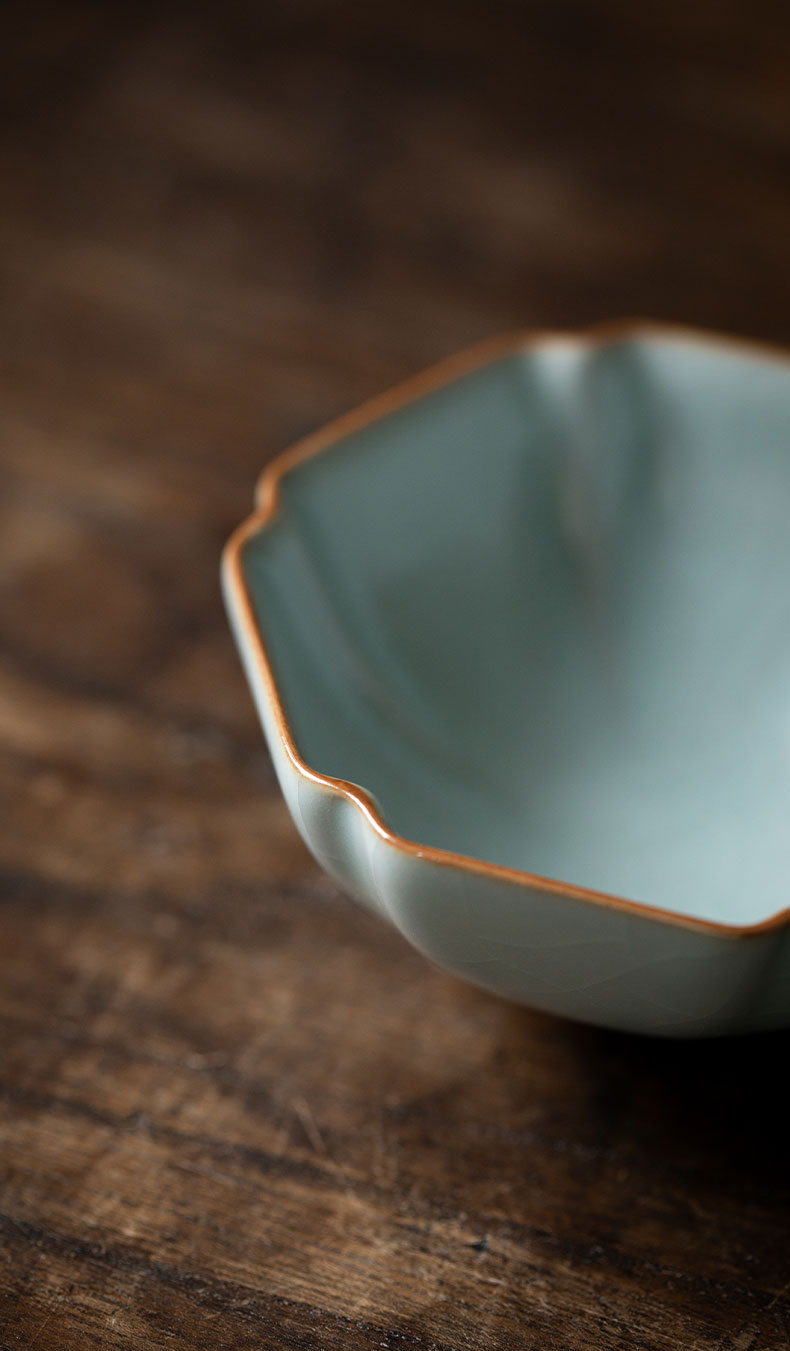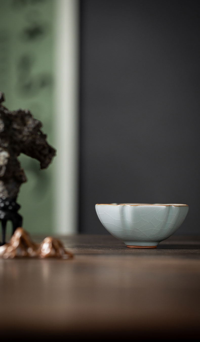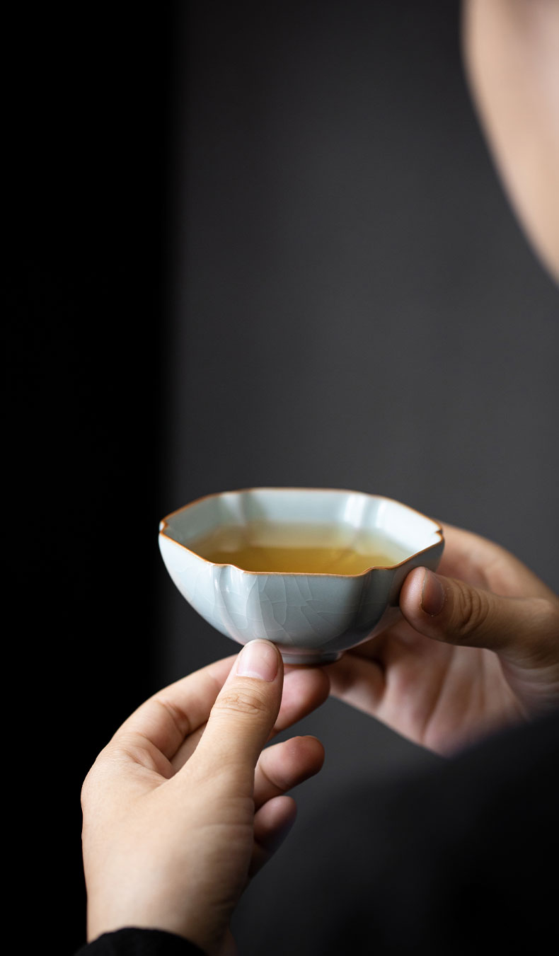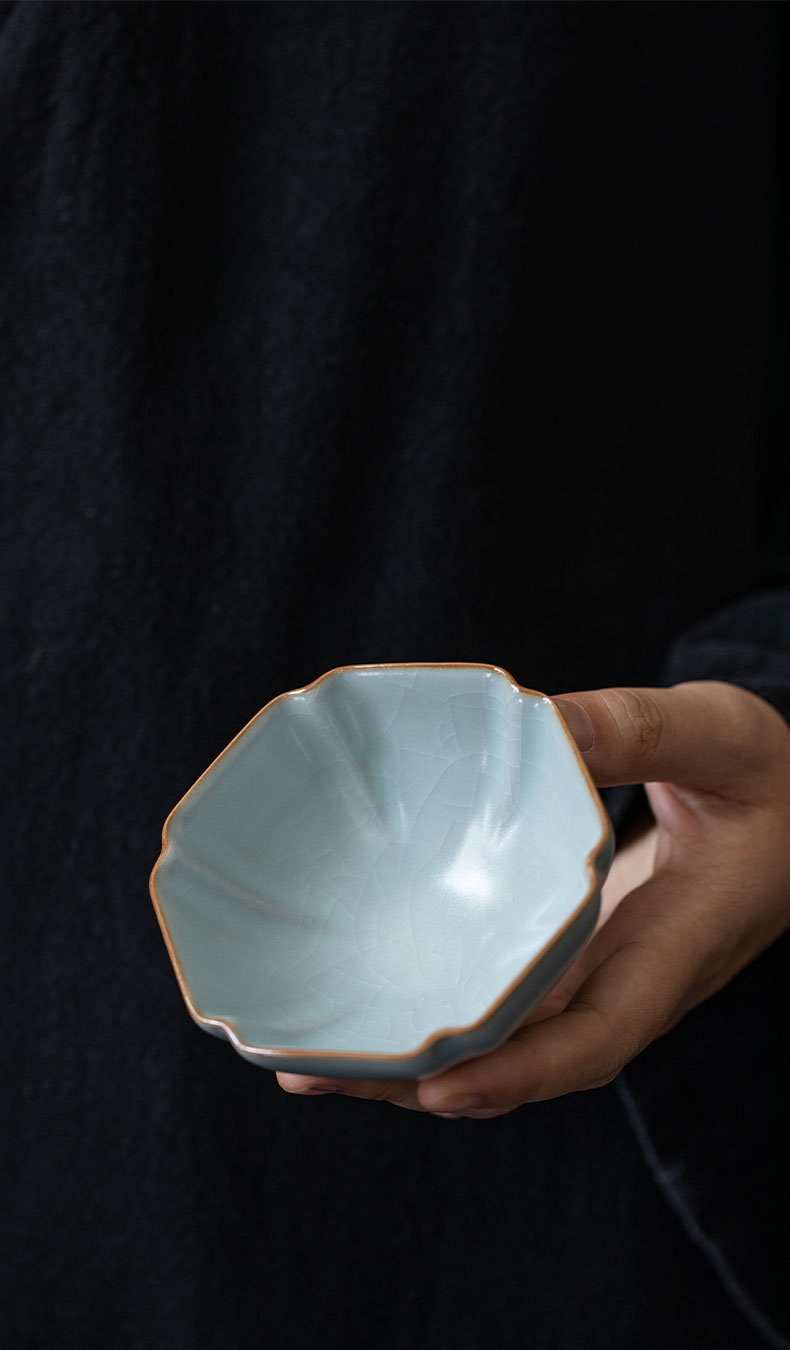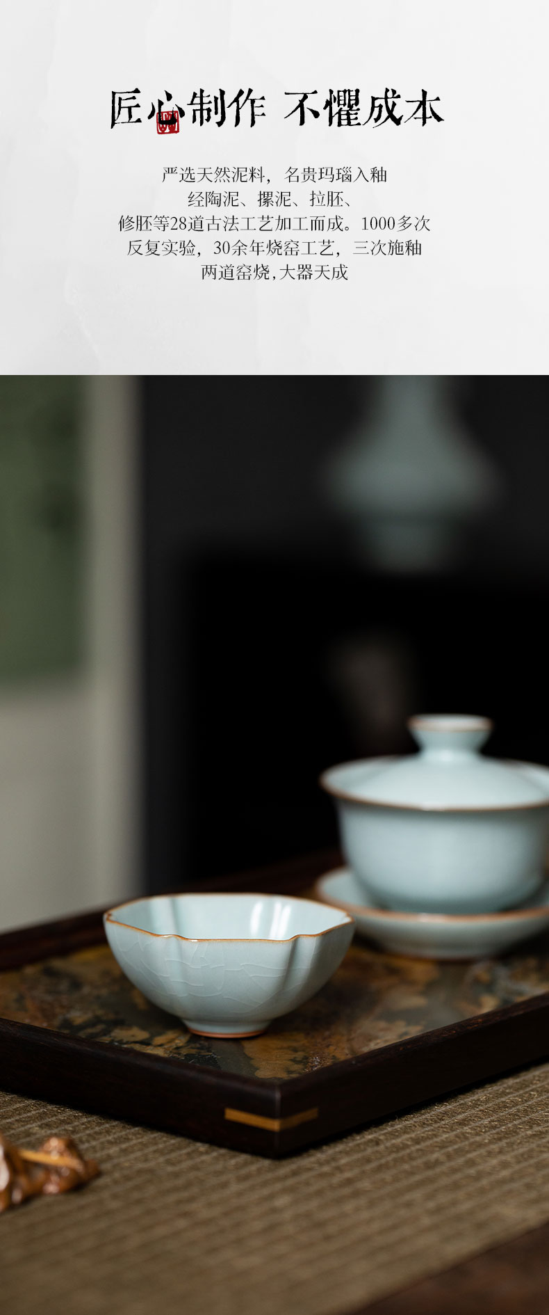 【丰子汝窑】【天青六方杯】8.2x4.3cm 100ml 茶杯纯手工开片主人杯陶瓷汝瓷单杯子个人品茗杯功夫茶具