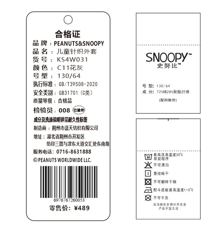 【清仓捡漏】【130-160】【史努比】男童春秋连帽外套运动开衫