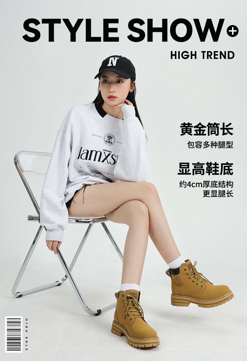 回力马丁靴女2025新款复古英伦风轻便旅行短靴厚底防滑增高大黄靴