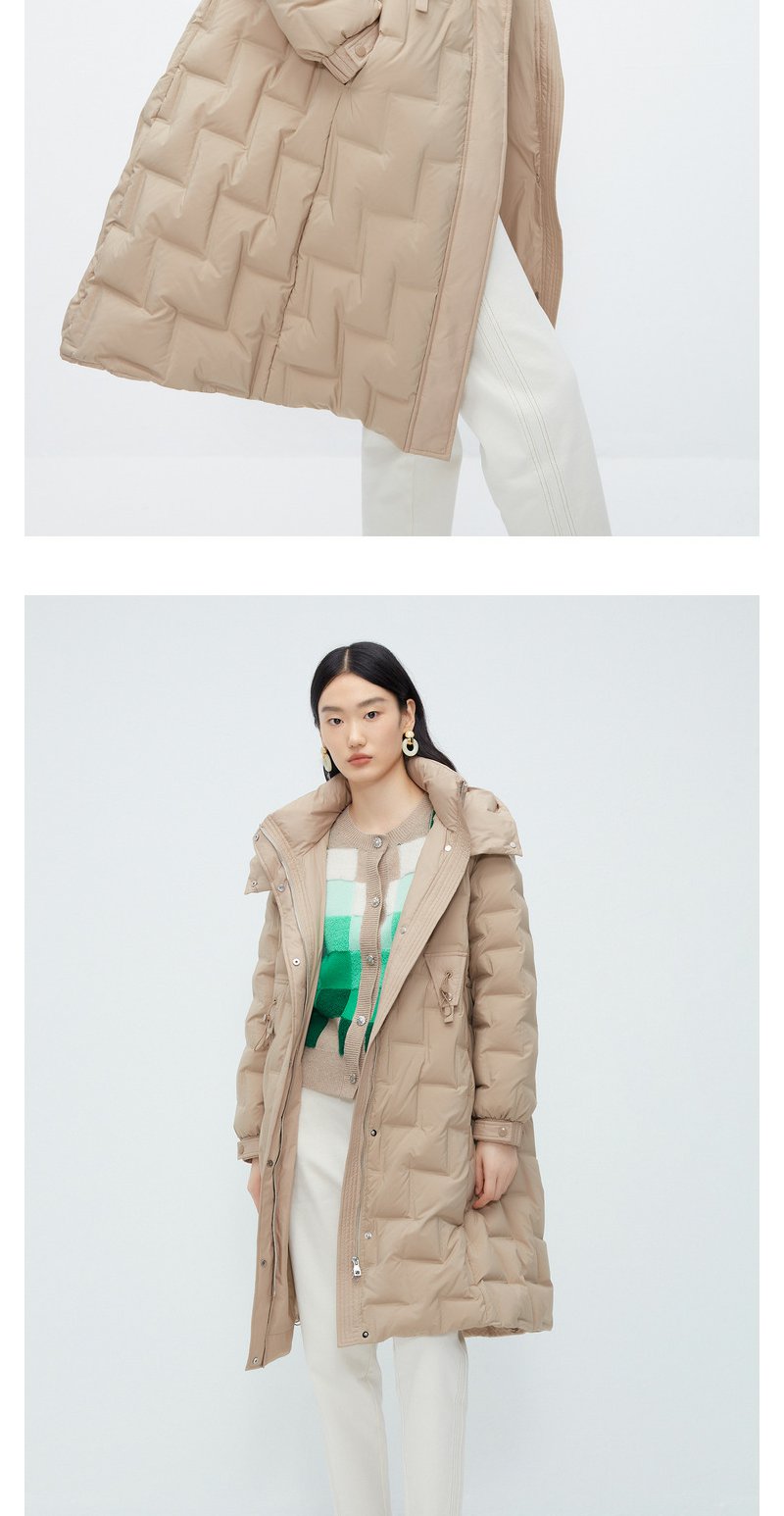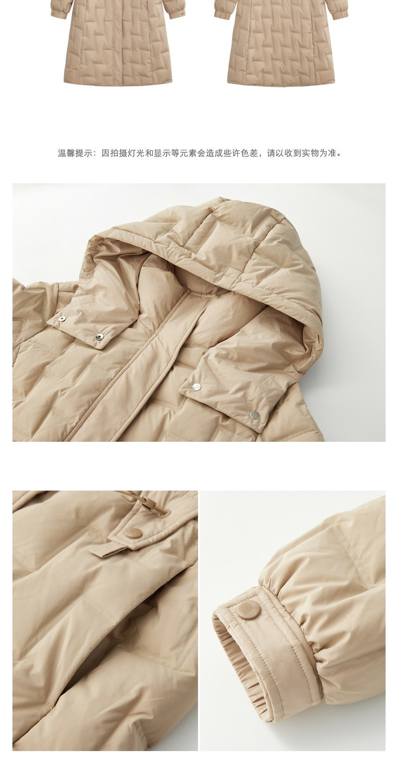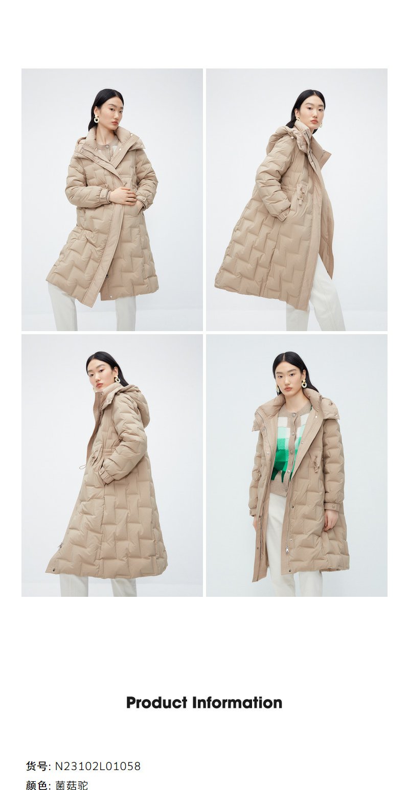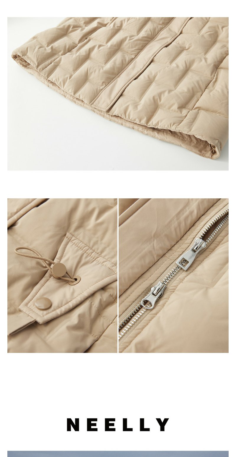 驼色零压感轻薄羽绒服女NEELLY纳俪商场同款连帽风衣式中长款外套N23102L01058