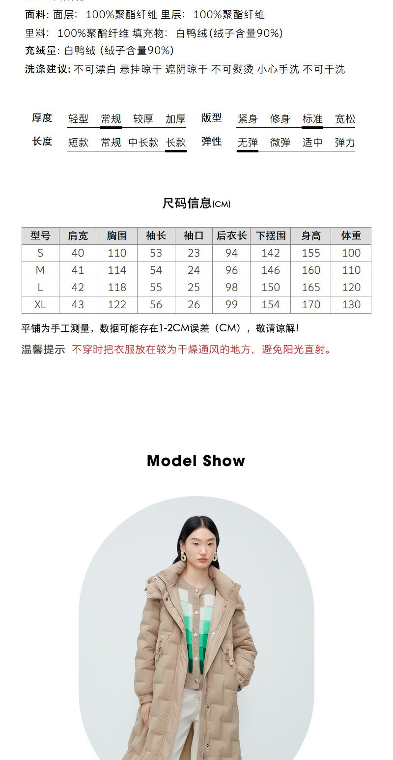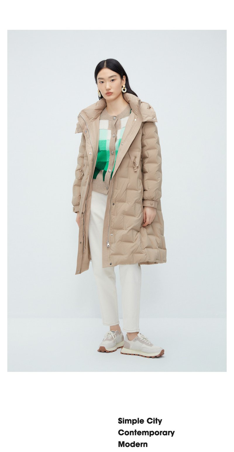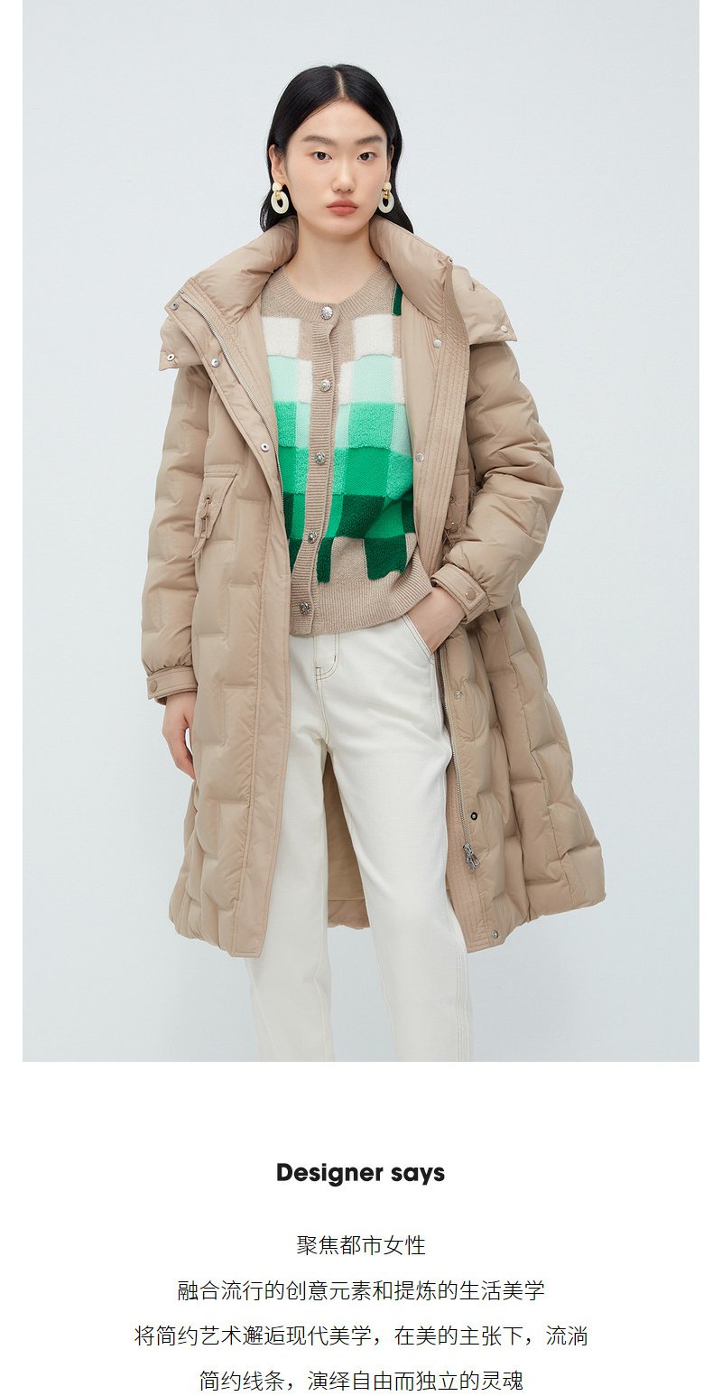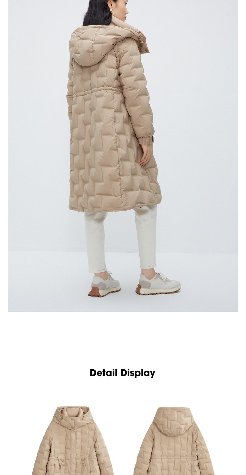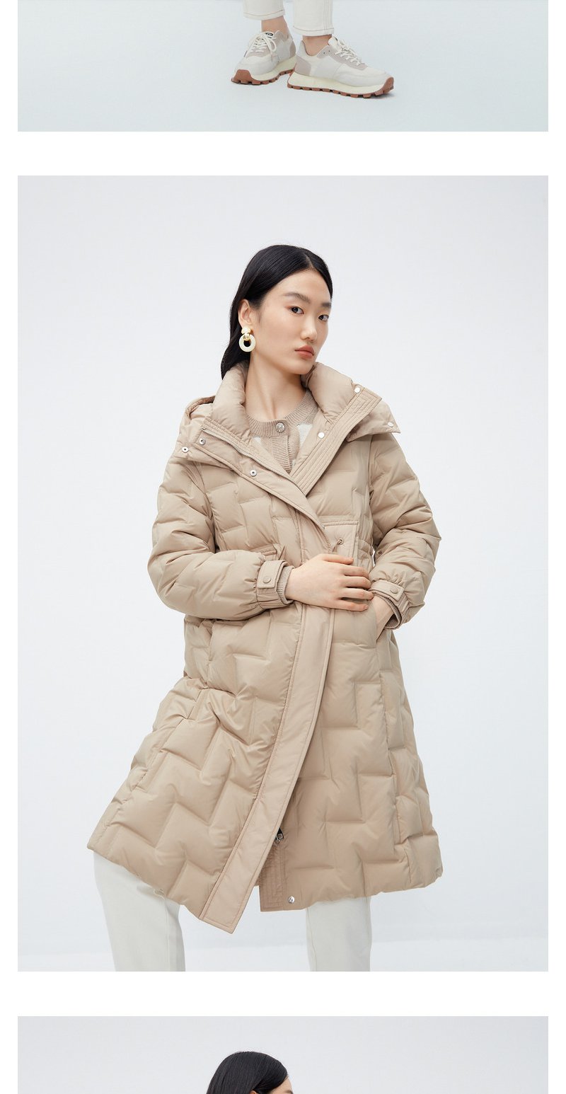 驼色零压感轻薄羽绒服女NEELLY纳俪商场同款连帽风衣式中长款外套N23102L01058