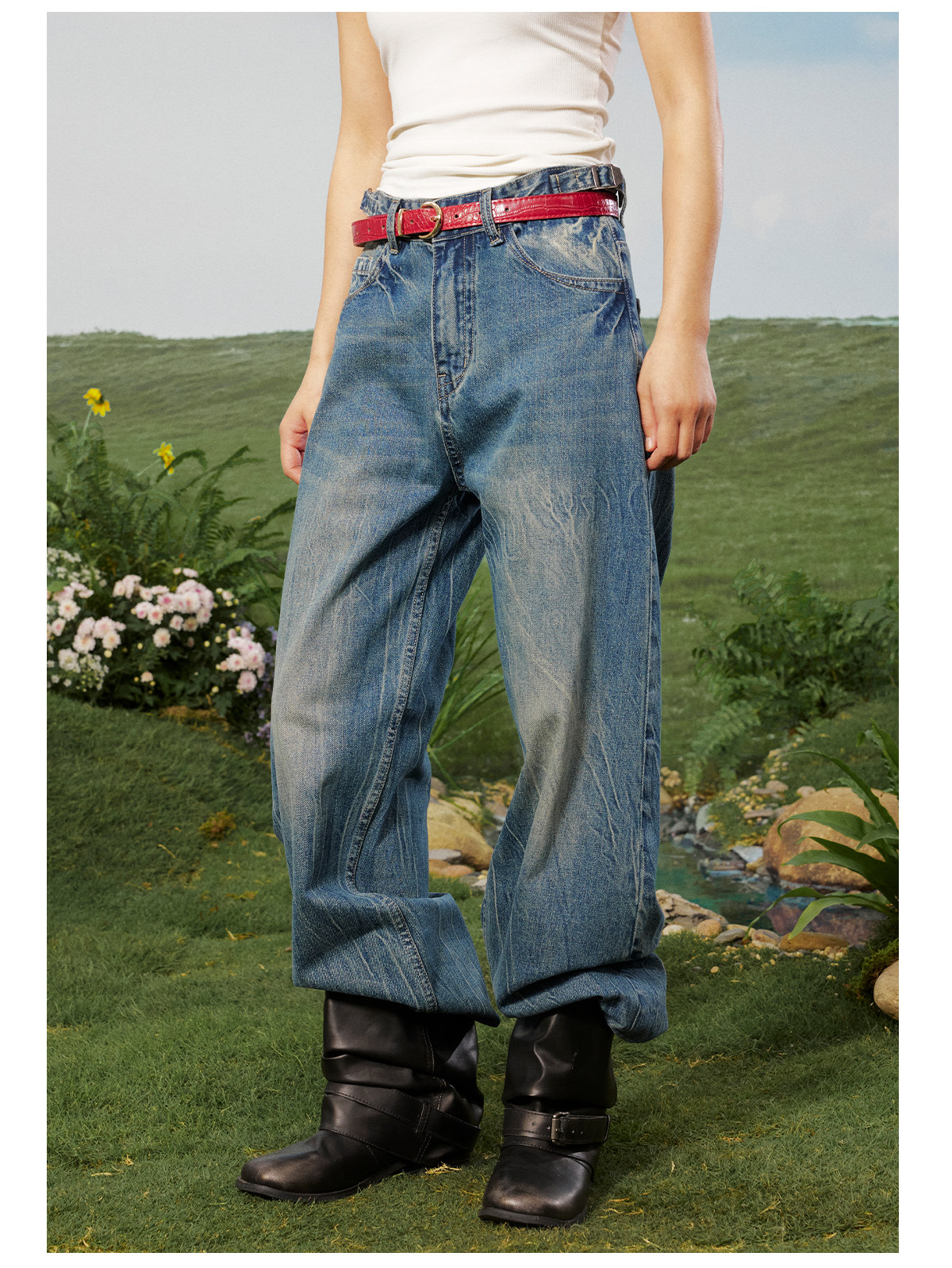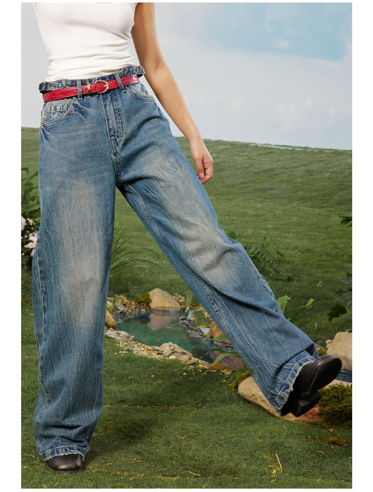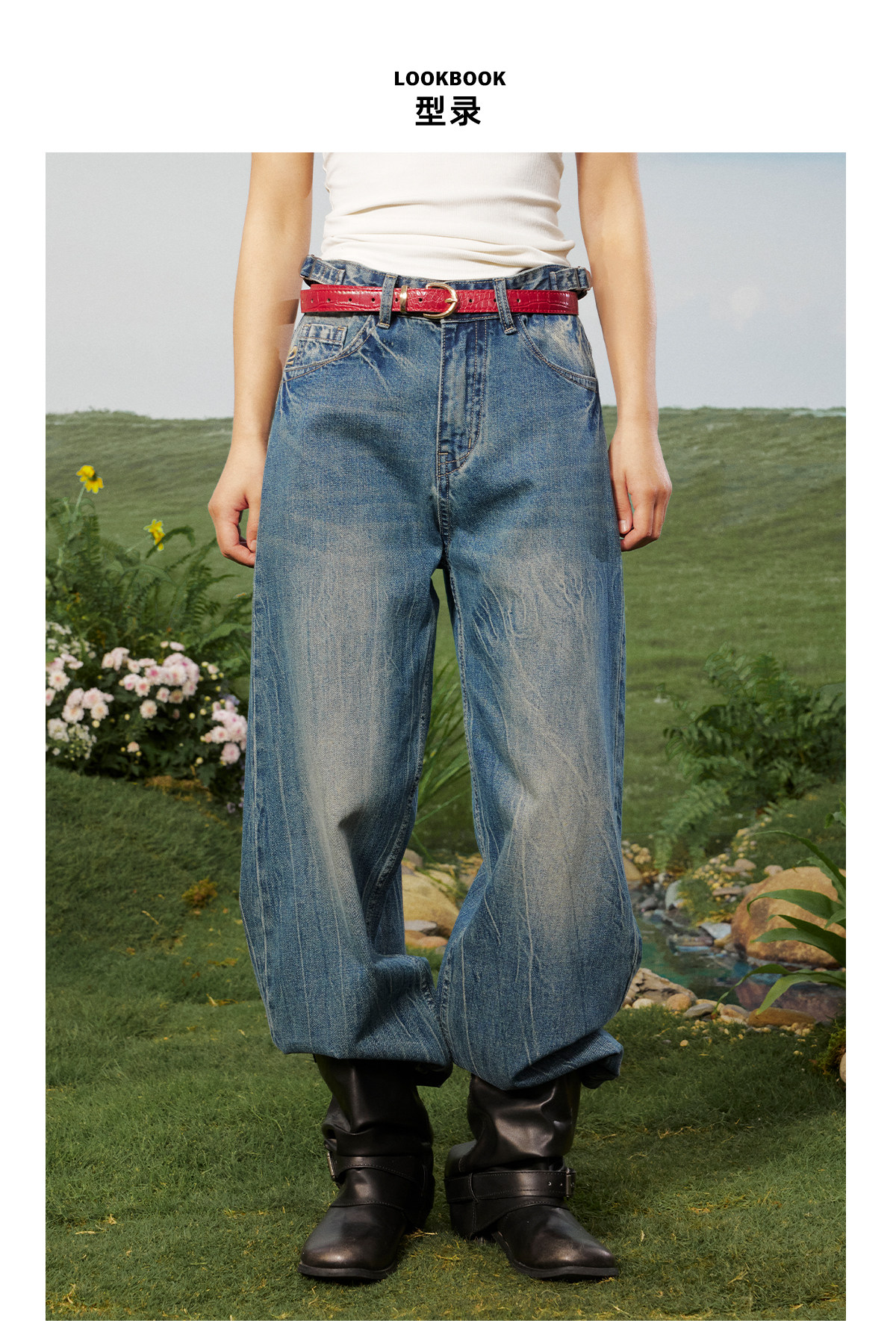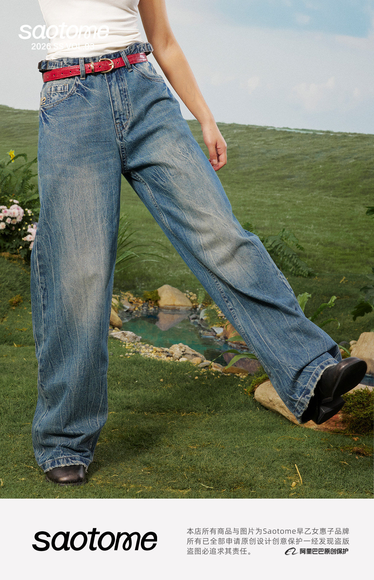 早乙女惠子saotome/STMKZ211674/复杂工艺直筒牛仔裤