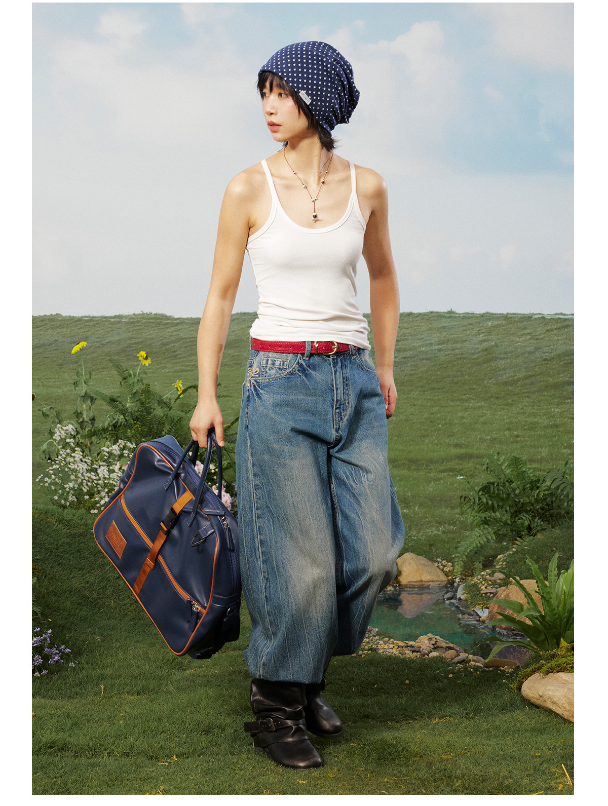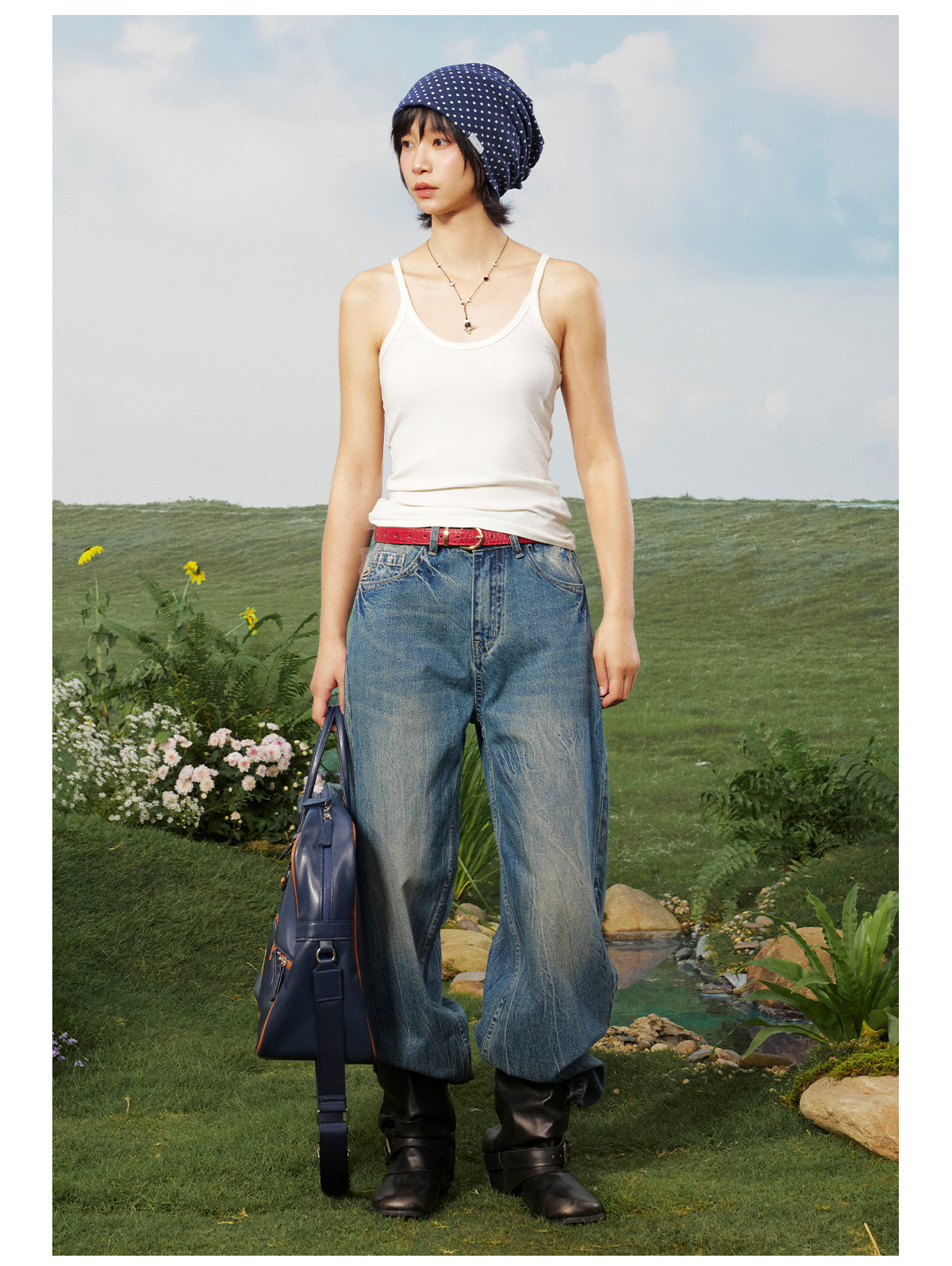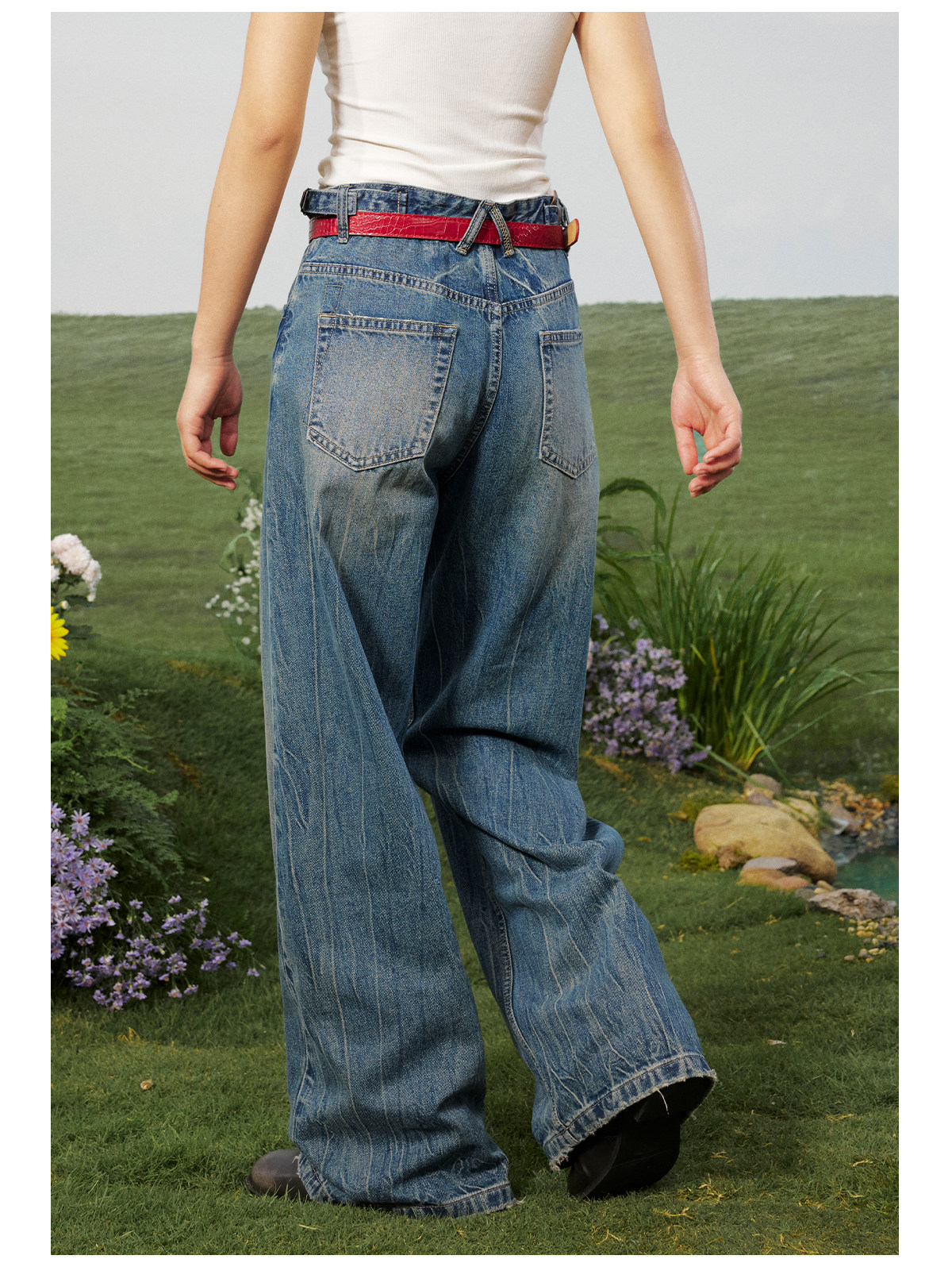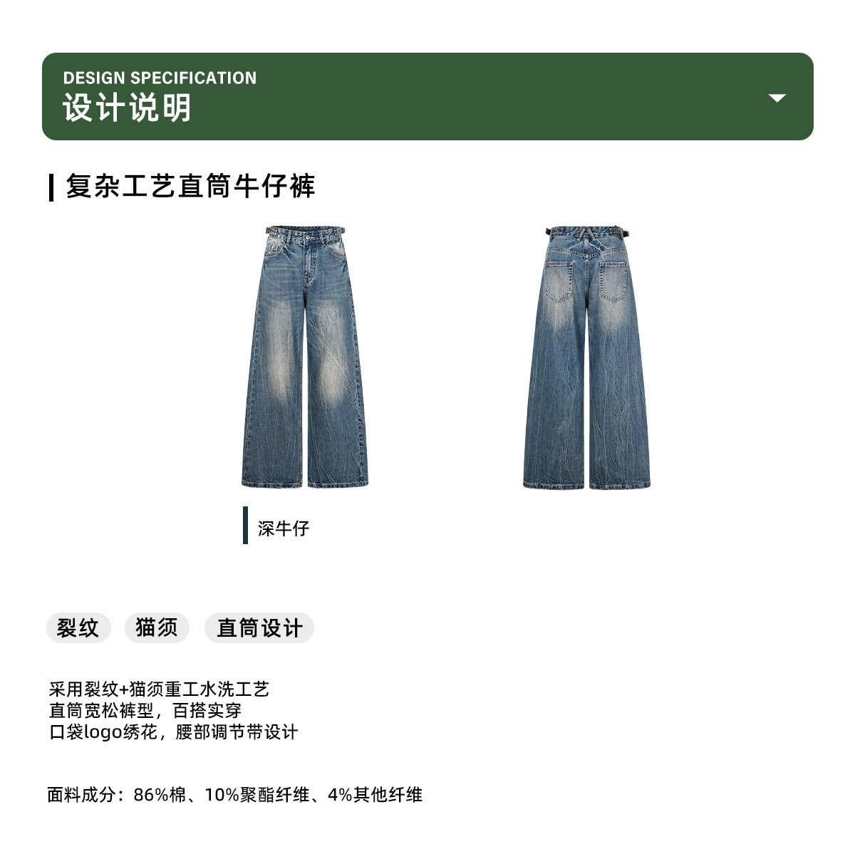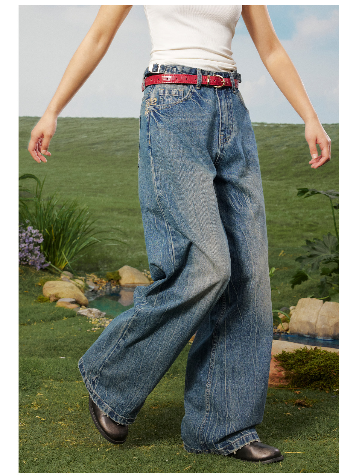 早乙女惠子saotome/STMKZ211674/复杂工艺直筒牛仔裤