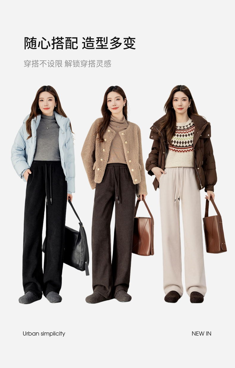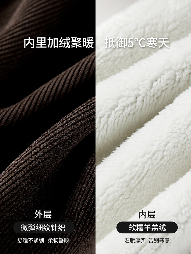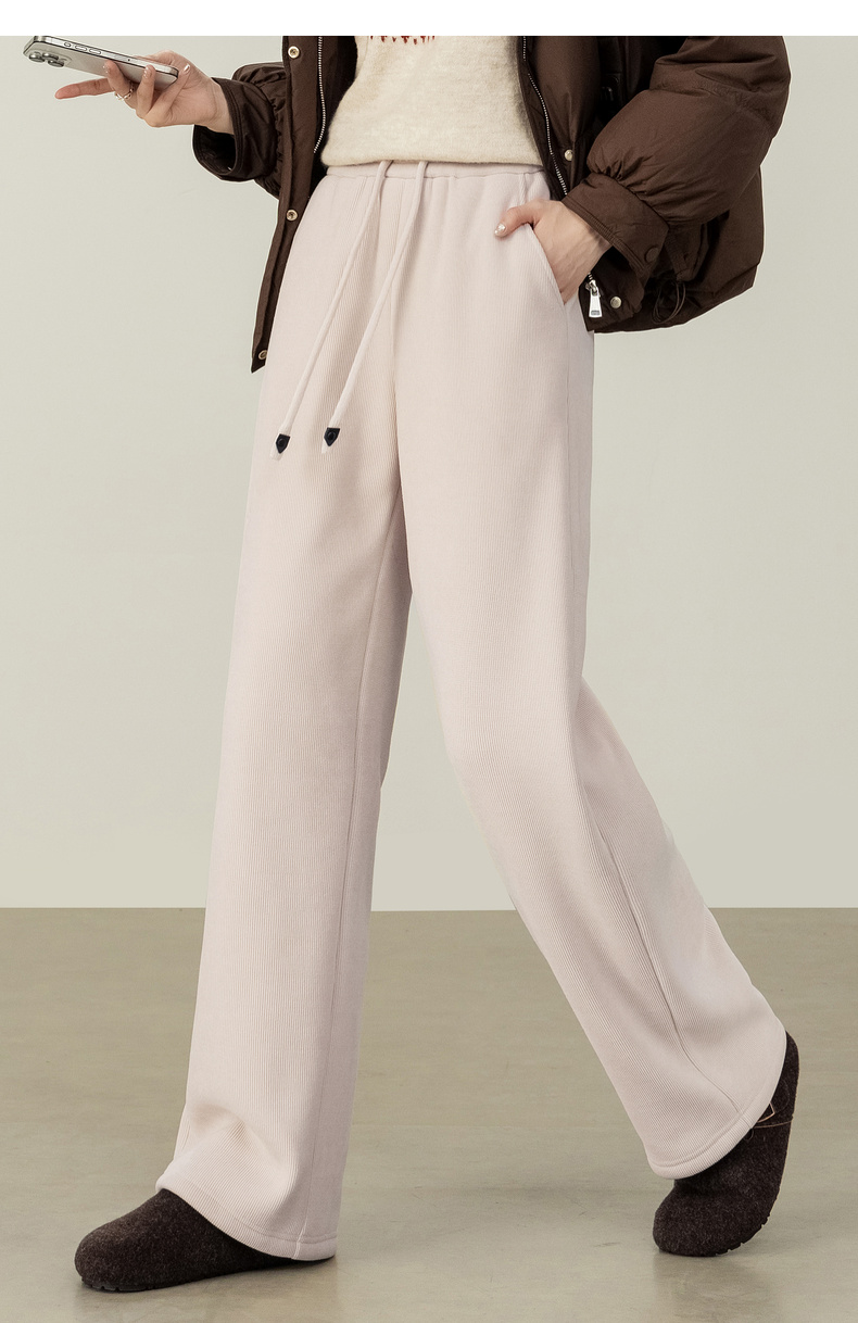 【内购】【聚暖裤】休闲简约抽绳松紧腰内里羊羔绒保暖不臃肿针织直筒长裤-154K80278
