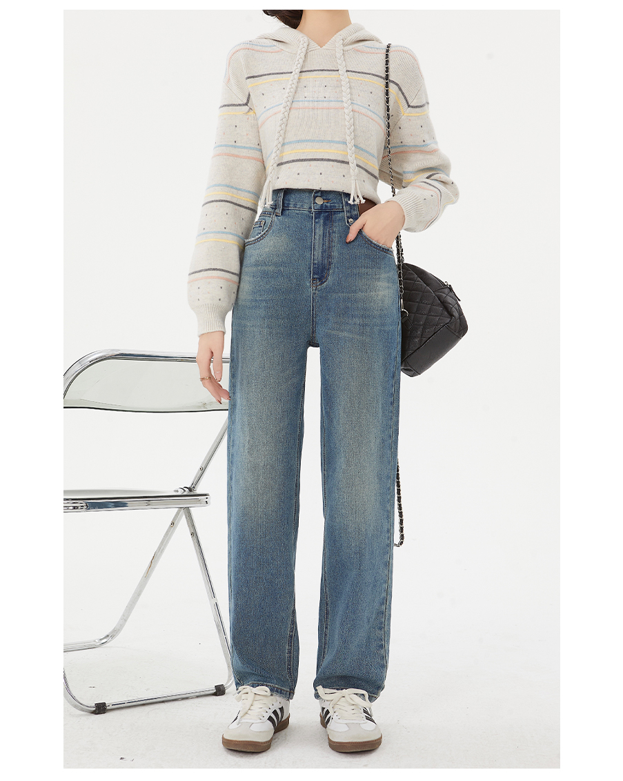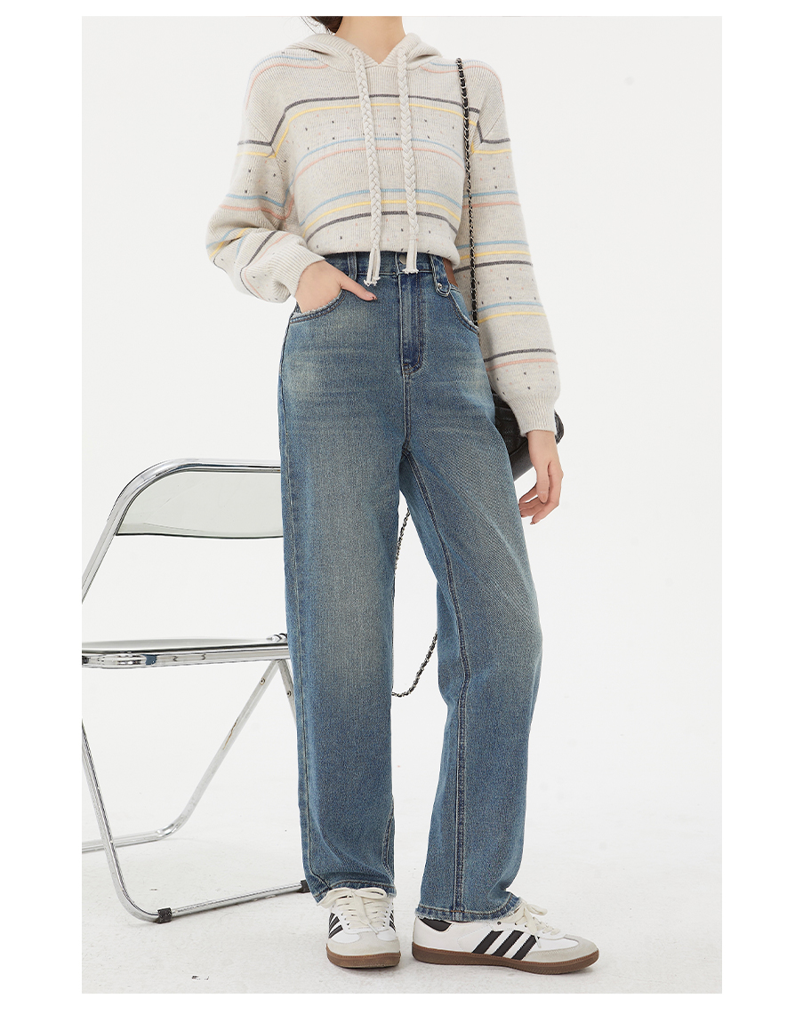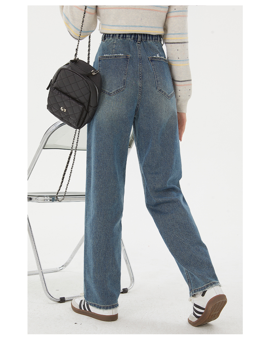 P&X设计师女装新款水洗牛仔长裤直筒825110071 蓝色