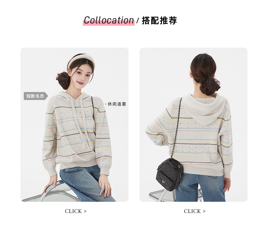P&X设计师女装 针织短款外套 824113736 粉白条