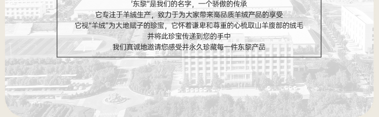 东黎羊绒是赤峰东荣集团自主品牌,自有牧场/羊绒制品全产业链优势,实现了羊绒从“牧场”到“商场”的华丽转变。