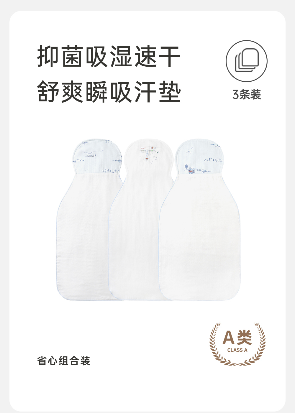 英氏婴儿吸汗巾宝宝垫背巾赛柔丝抑菌3条装2025新款YMGDJ0Q091A