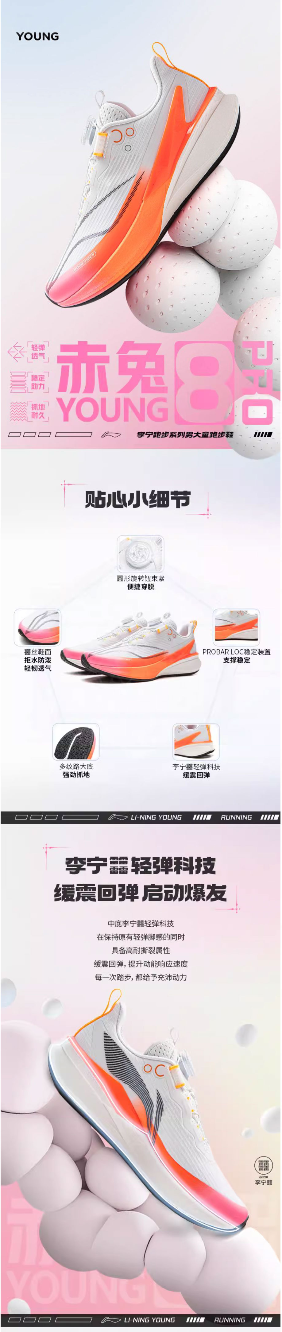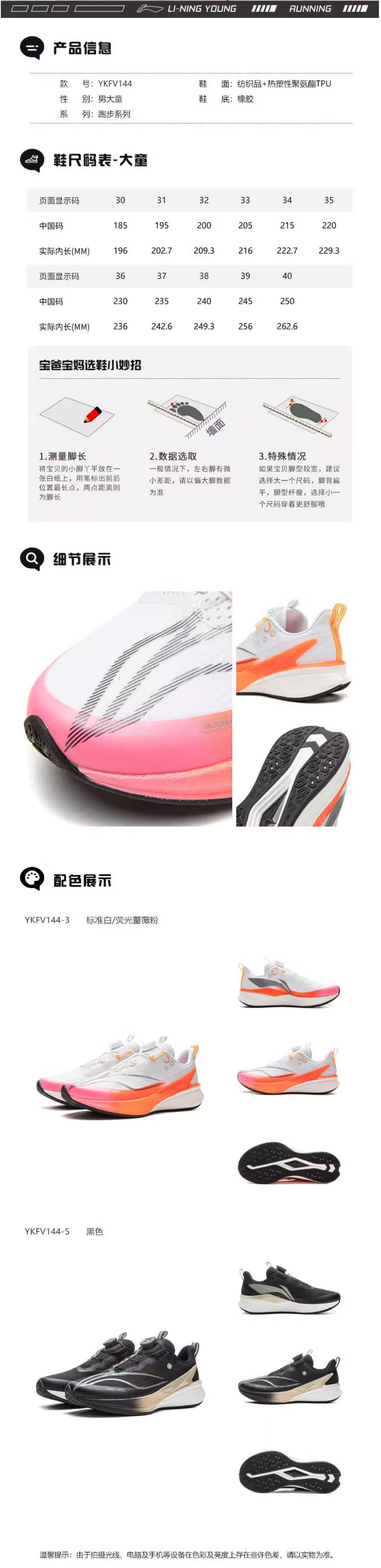 李宁赤兔8 PRO YOUNG 男大童䨻丝耐磨透气运动跑步鞋YKFV144-5