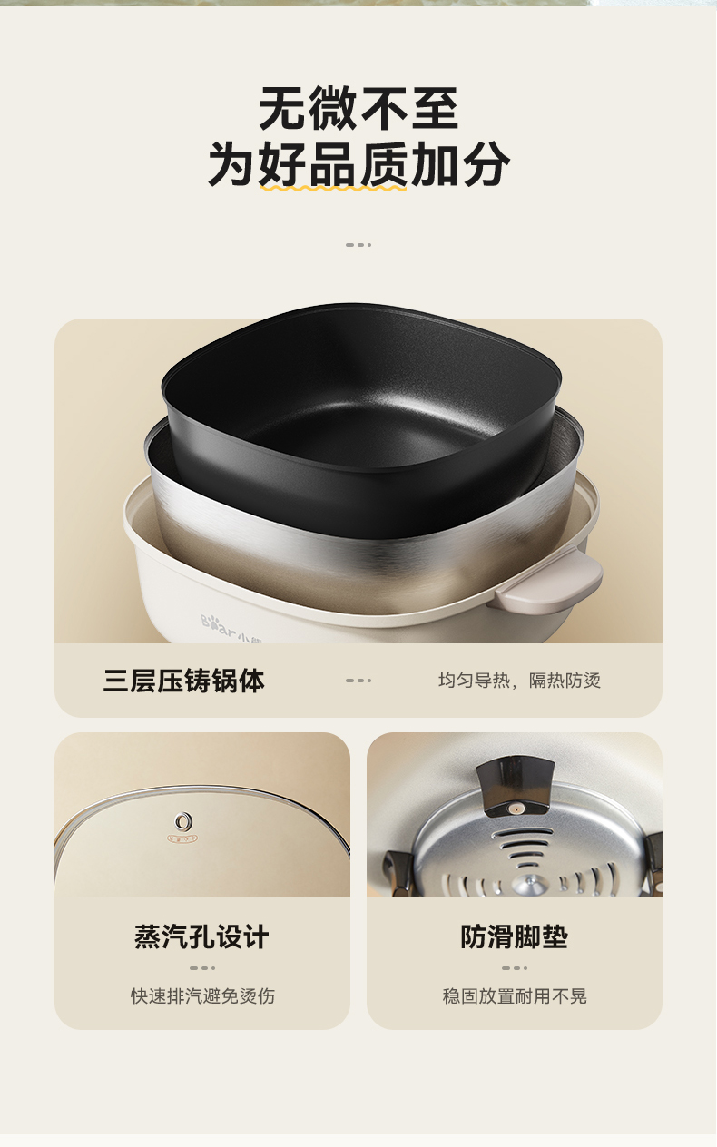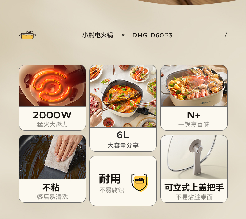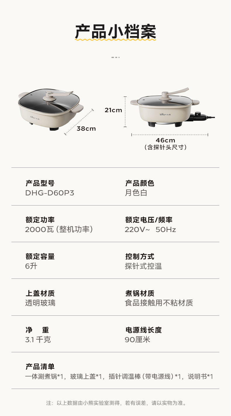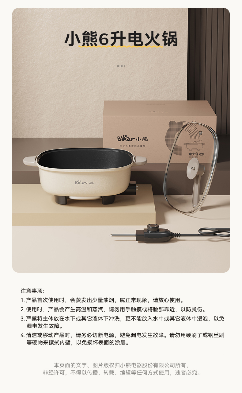 【小程序】小熊电热火锅 DHG-D60P3 米黄色 机械式 单锅