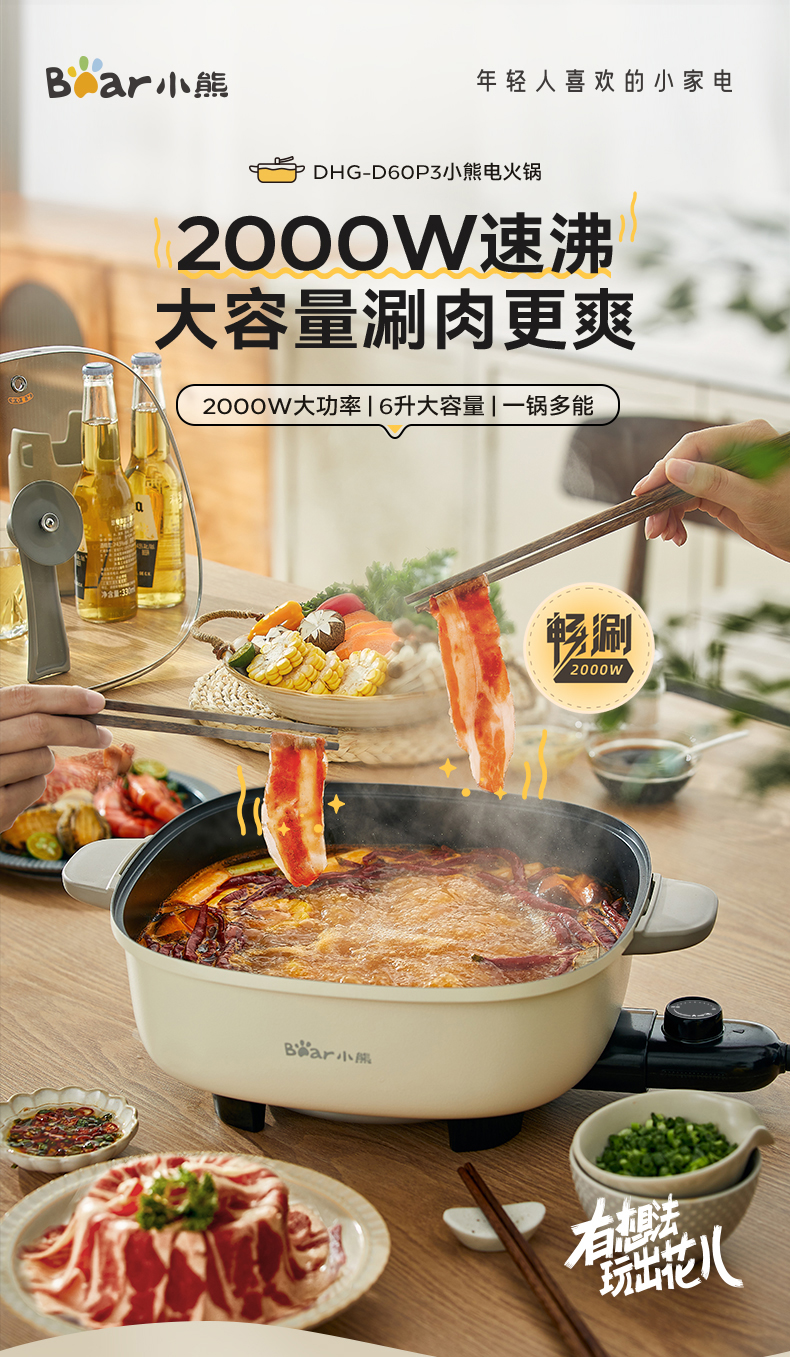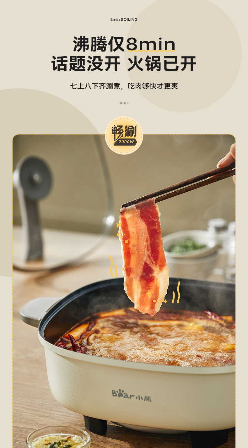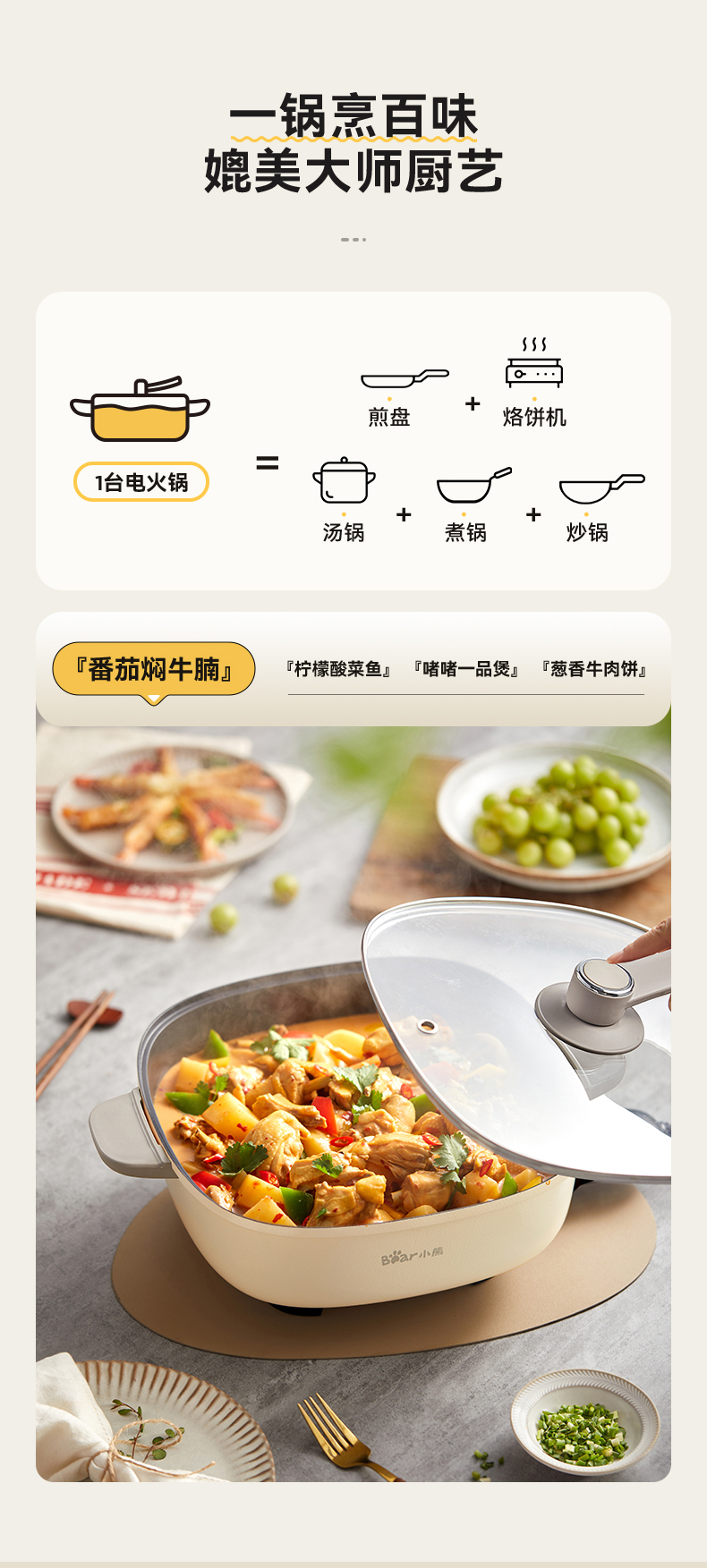 【小程序】小熊电热火锅 DHG-D60P3 米黄色 机械式 单锅