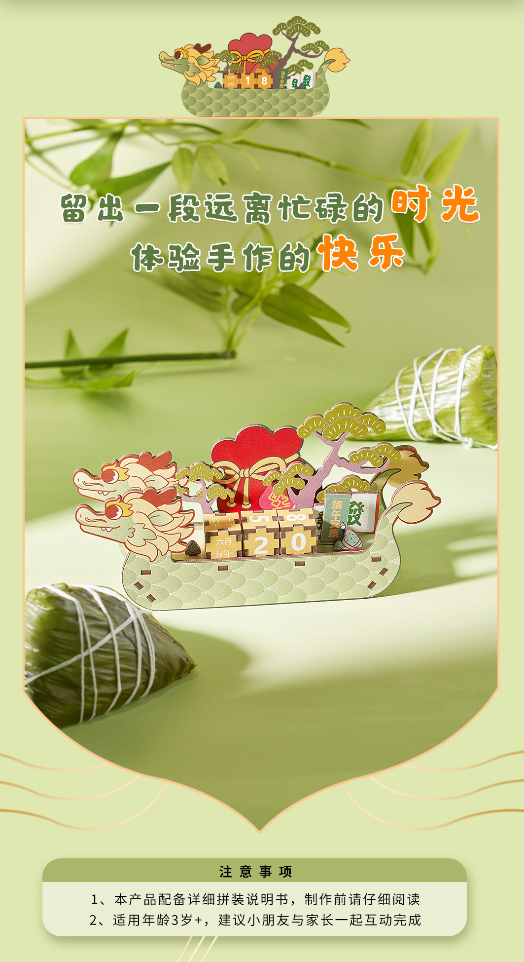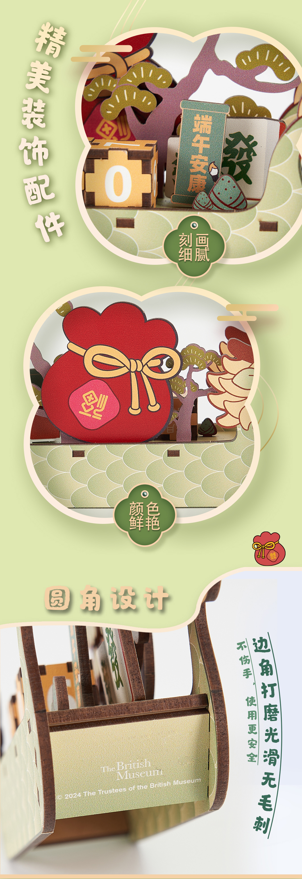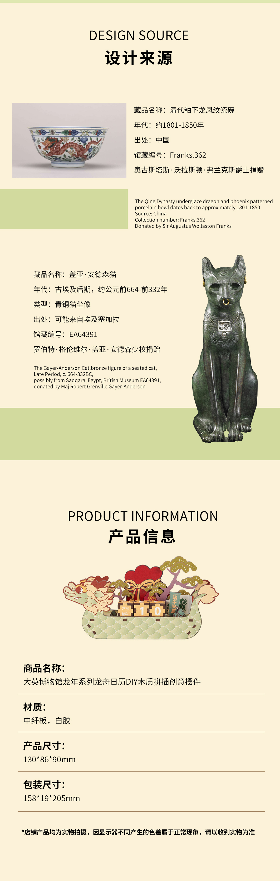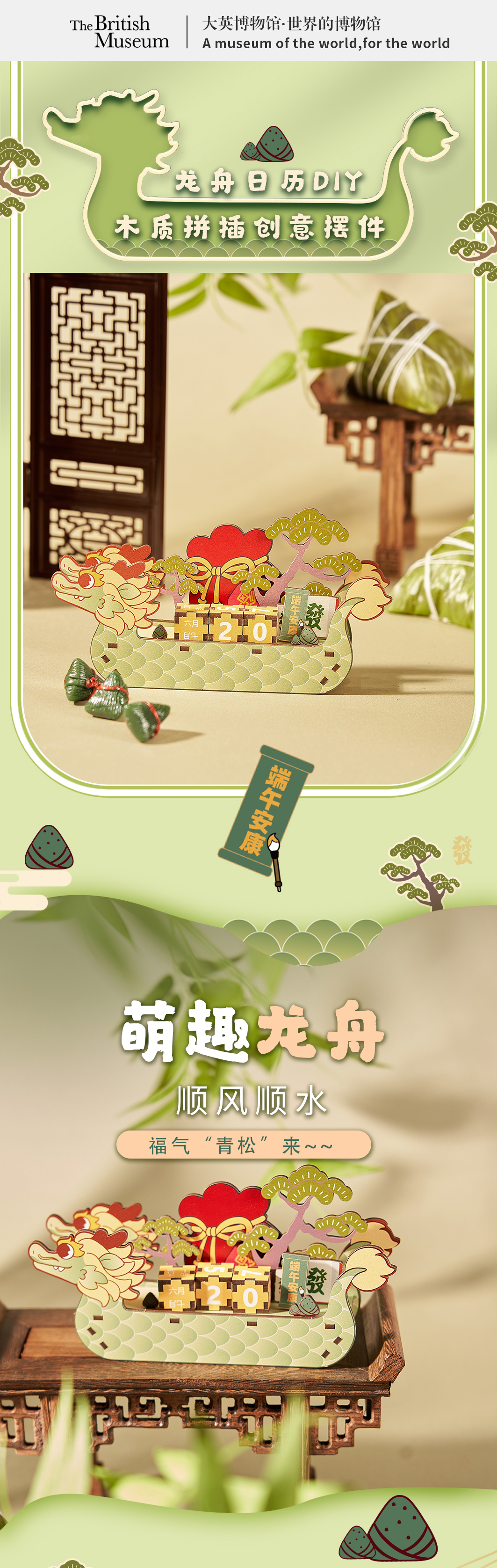 大英博物馆 龙年系列 龙舟日历 DIY木质拼插创意 摆件
