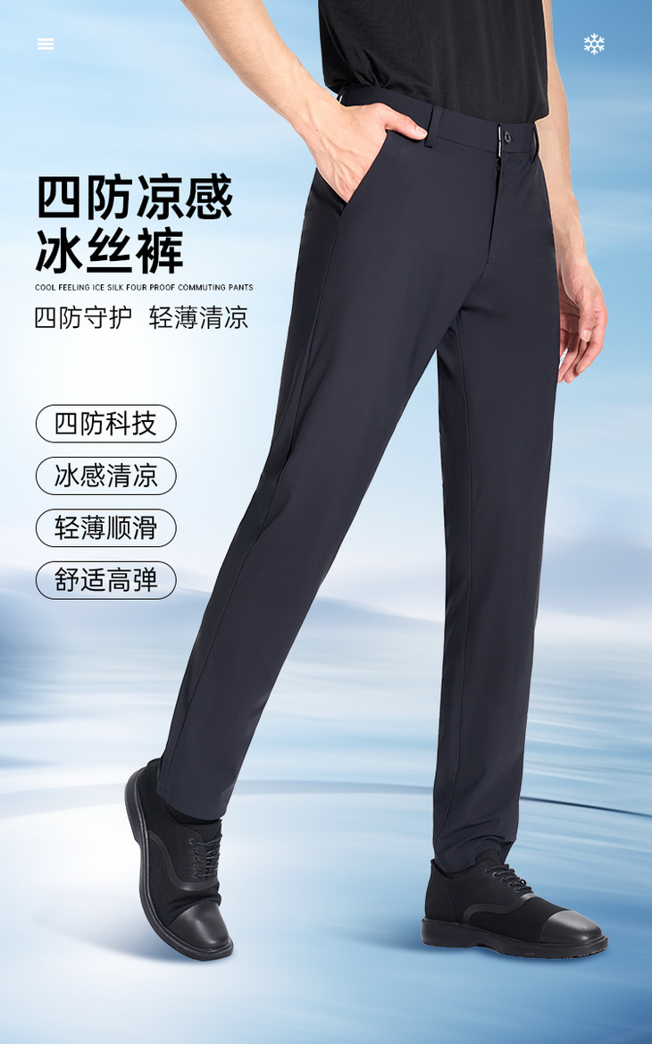 【凉感冰丝四防裤/清仓】防泼水高弹休闲西裤 修身直筒长裤K401